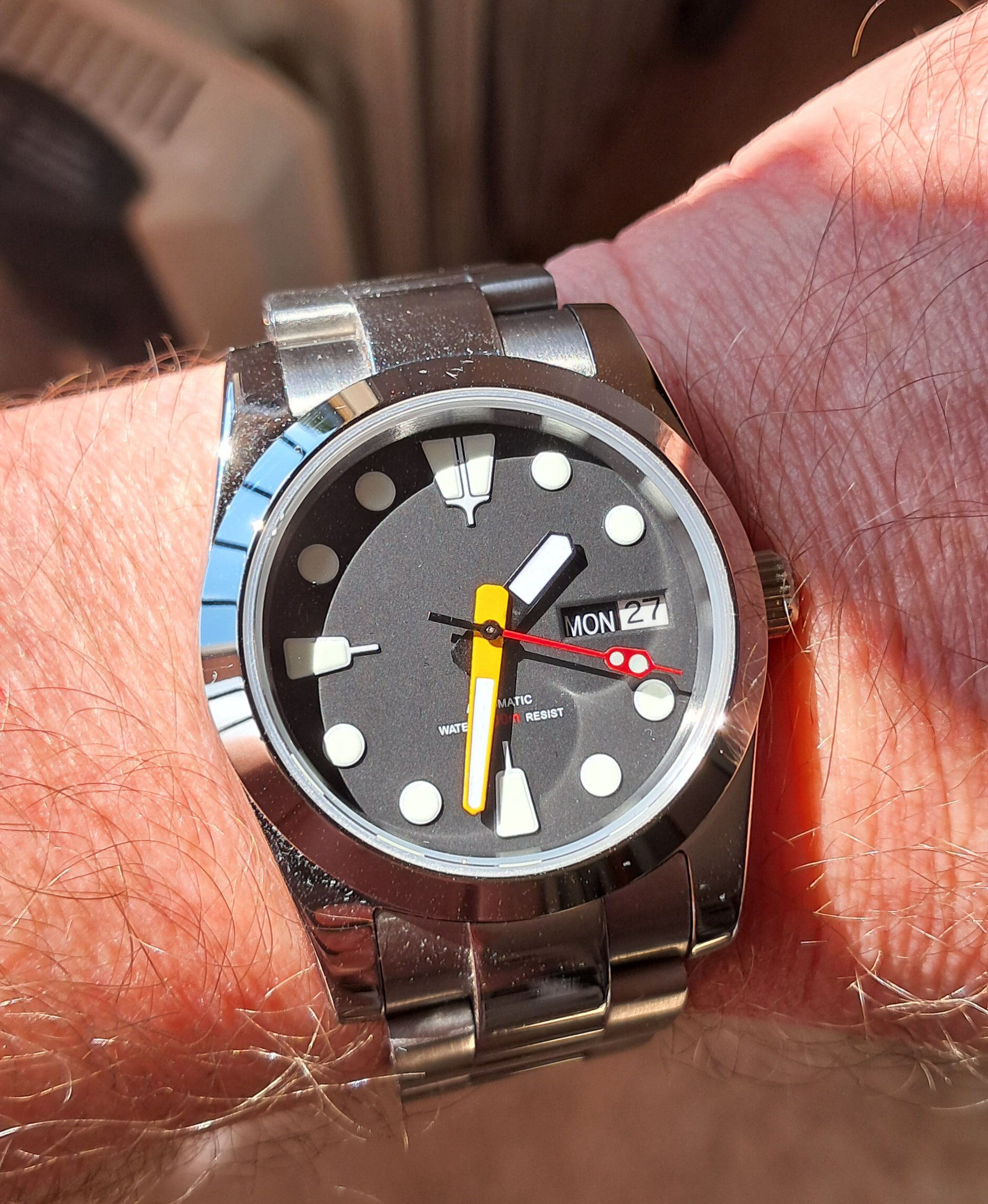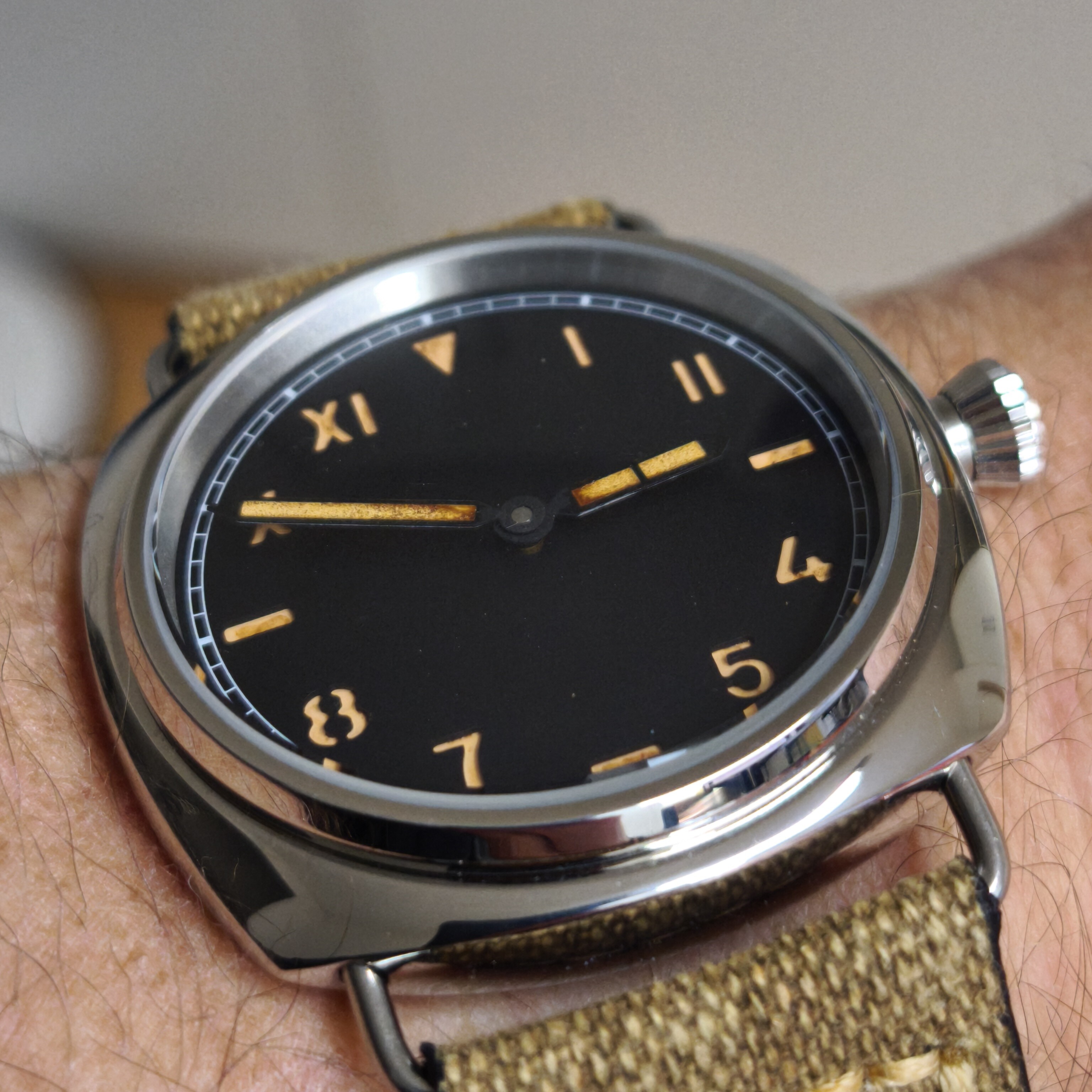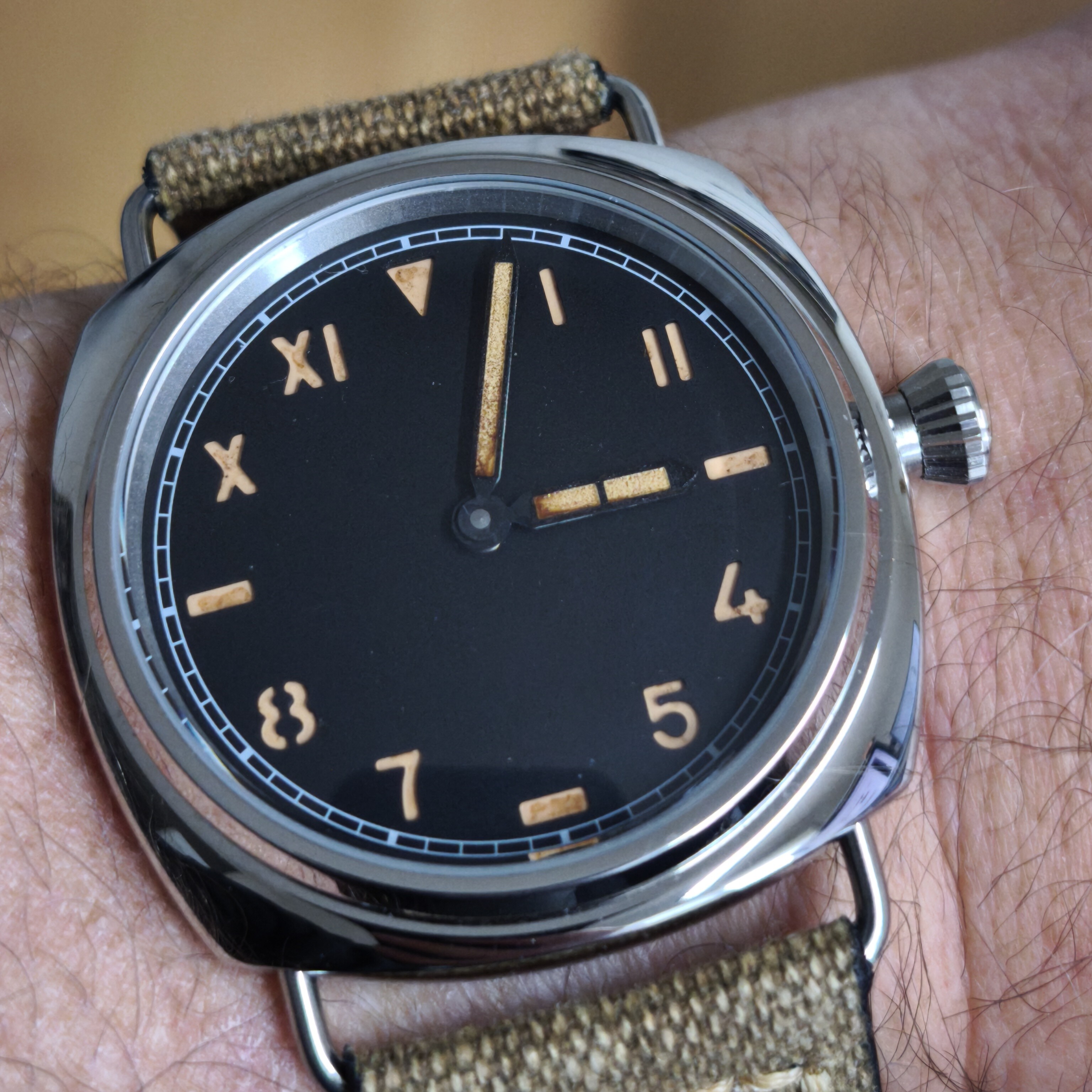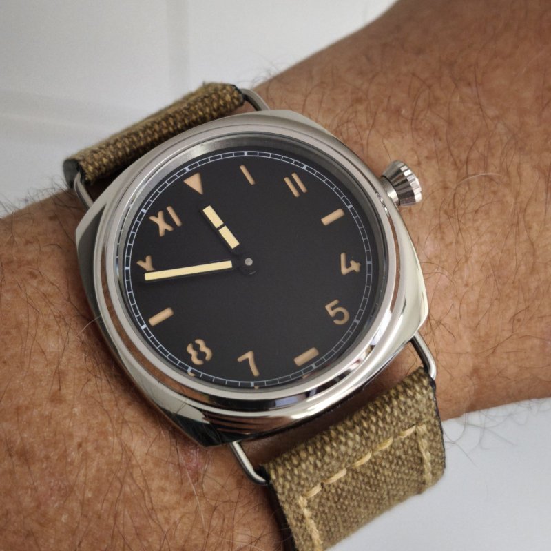 I treated the hands with a bit of Espresso to match the numbers on the dial (and then also aged these a bit).