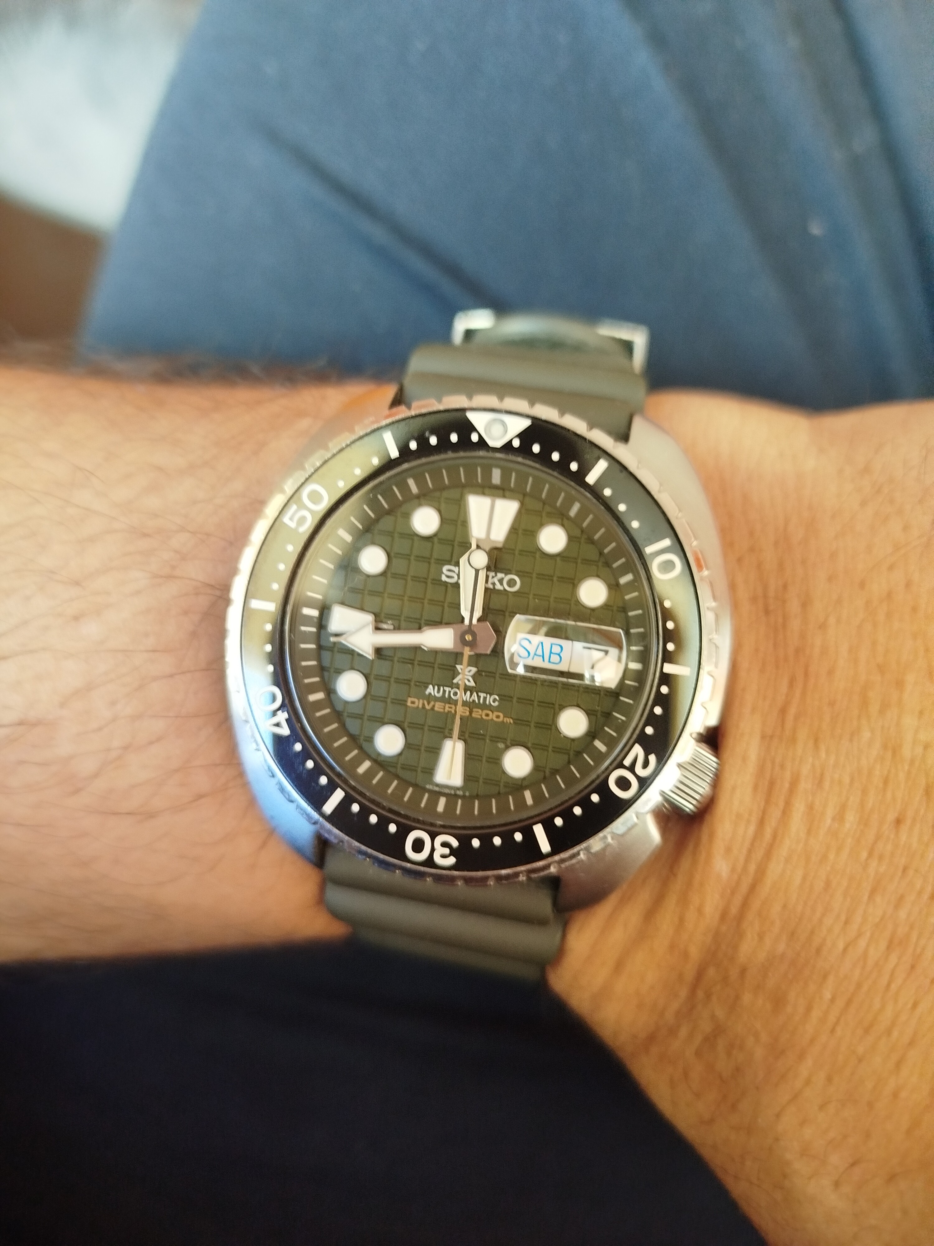 Aquí un Rey Tortuga con esfera texturizada, zafiro y bisel cerámico, por lo demás es igual a los modelos normales. El PVP es de 650 pero se puede conseguir por poco más de 500.