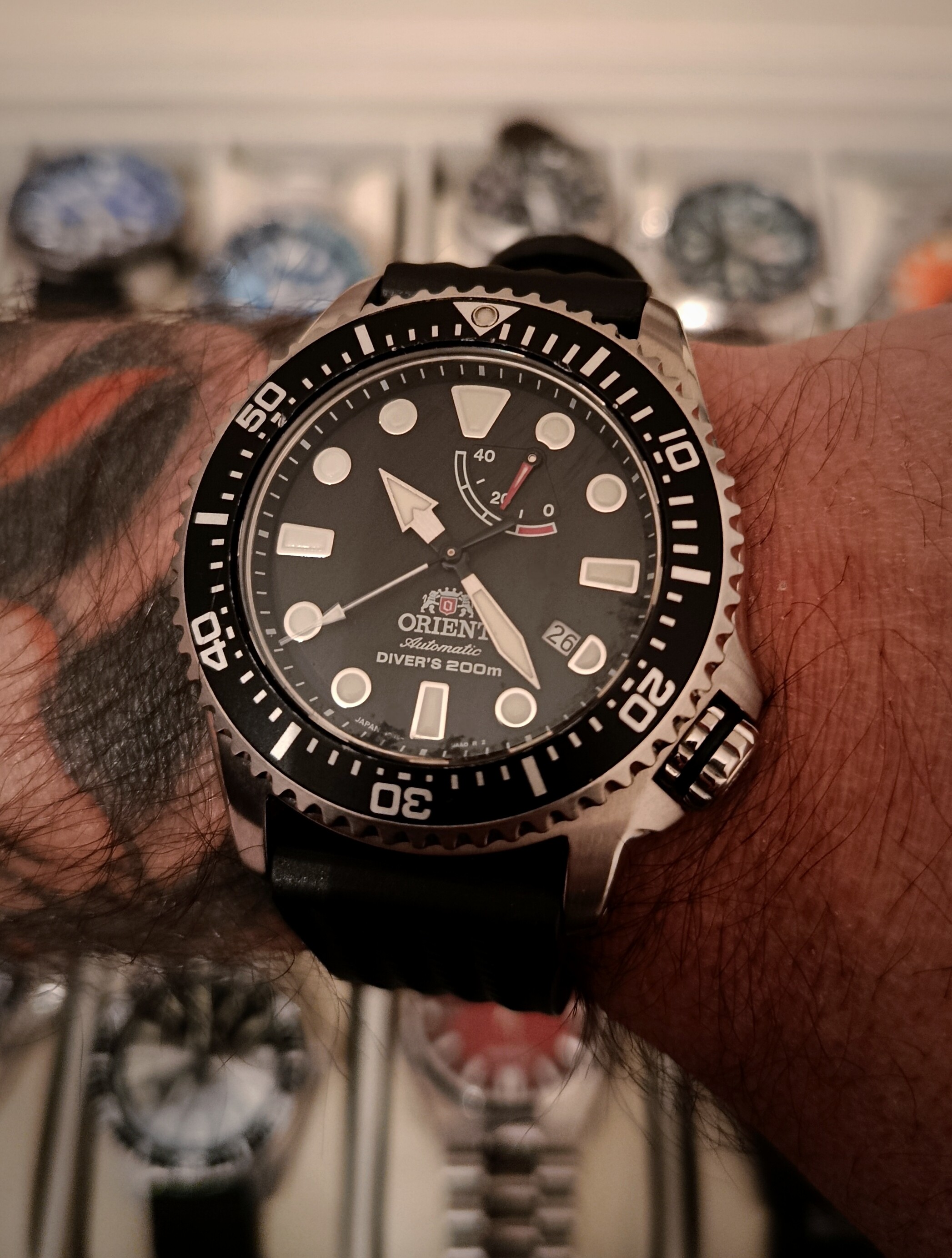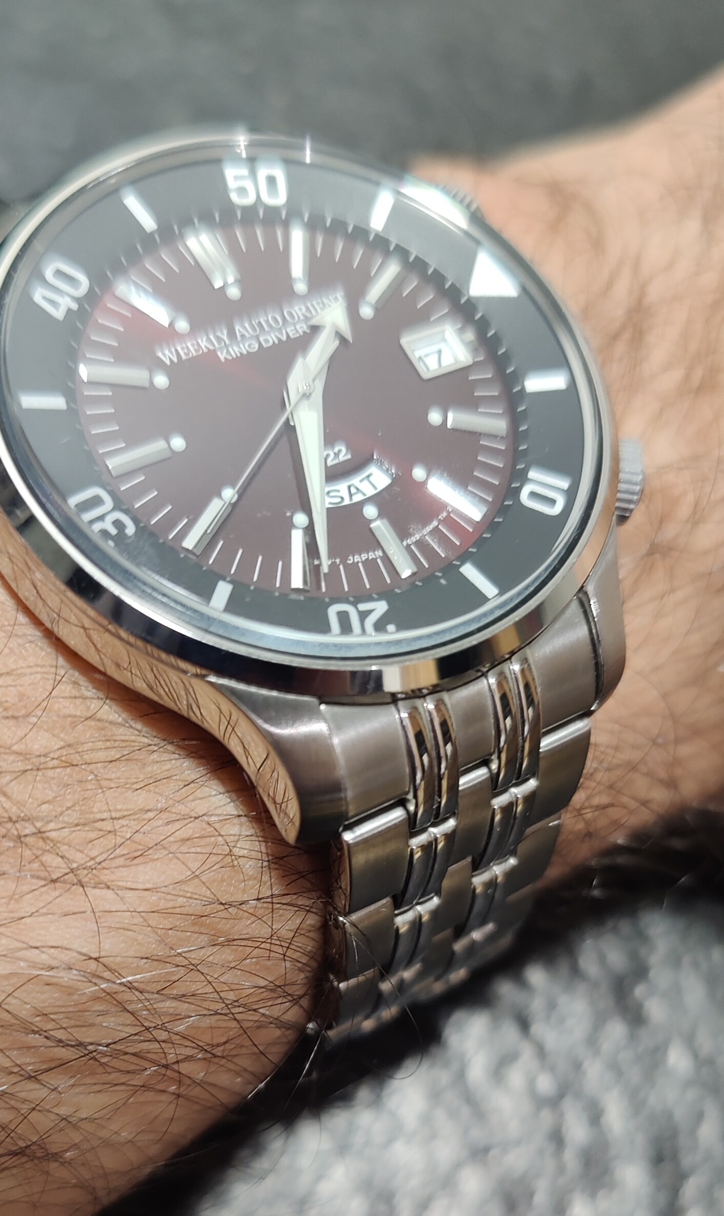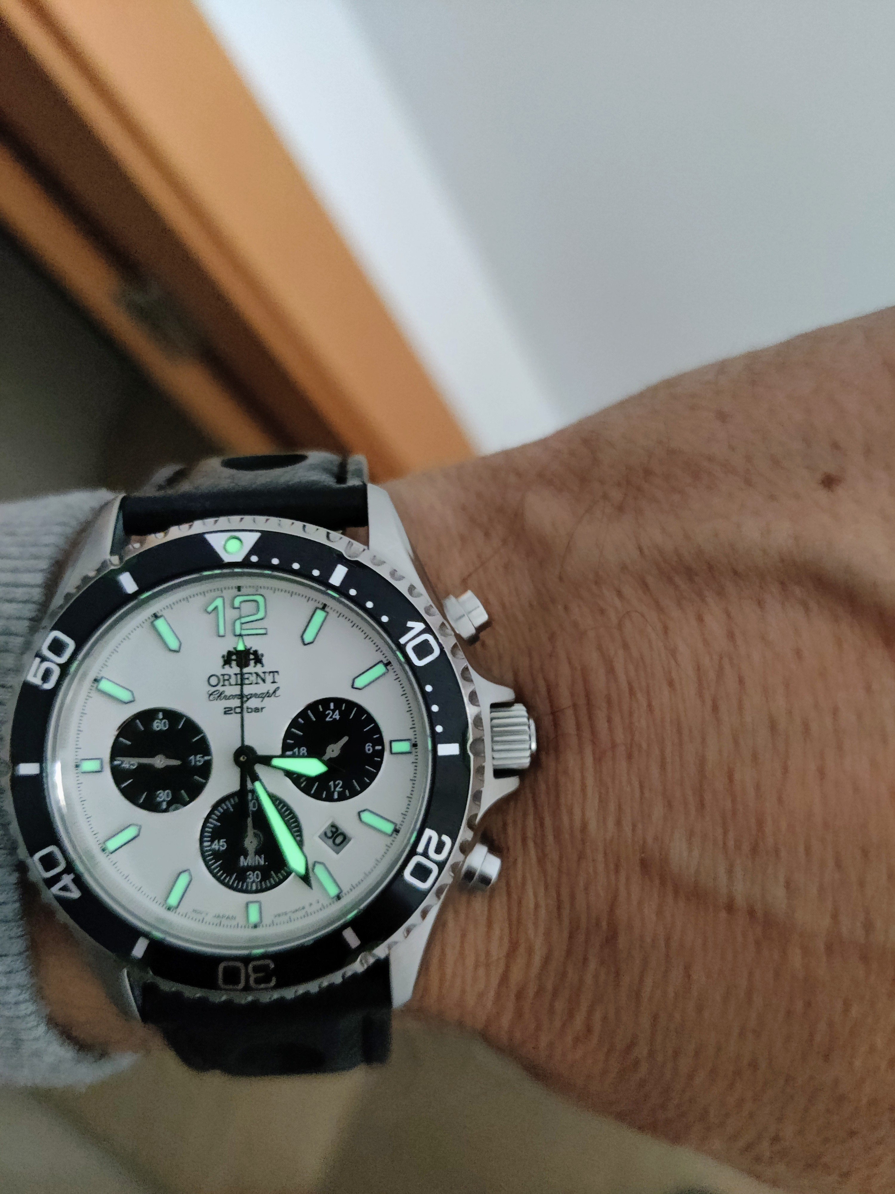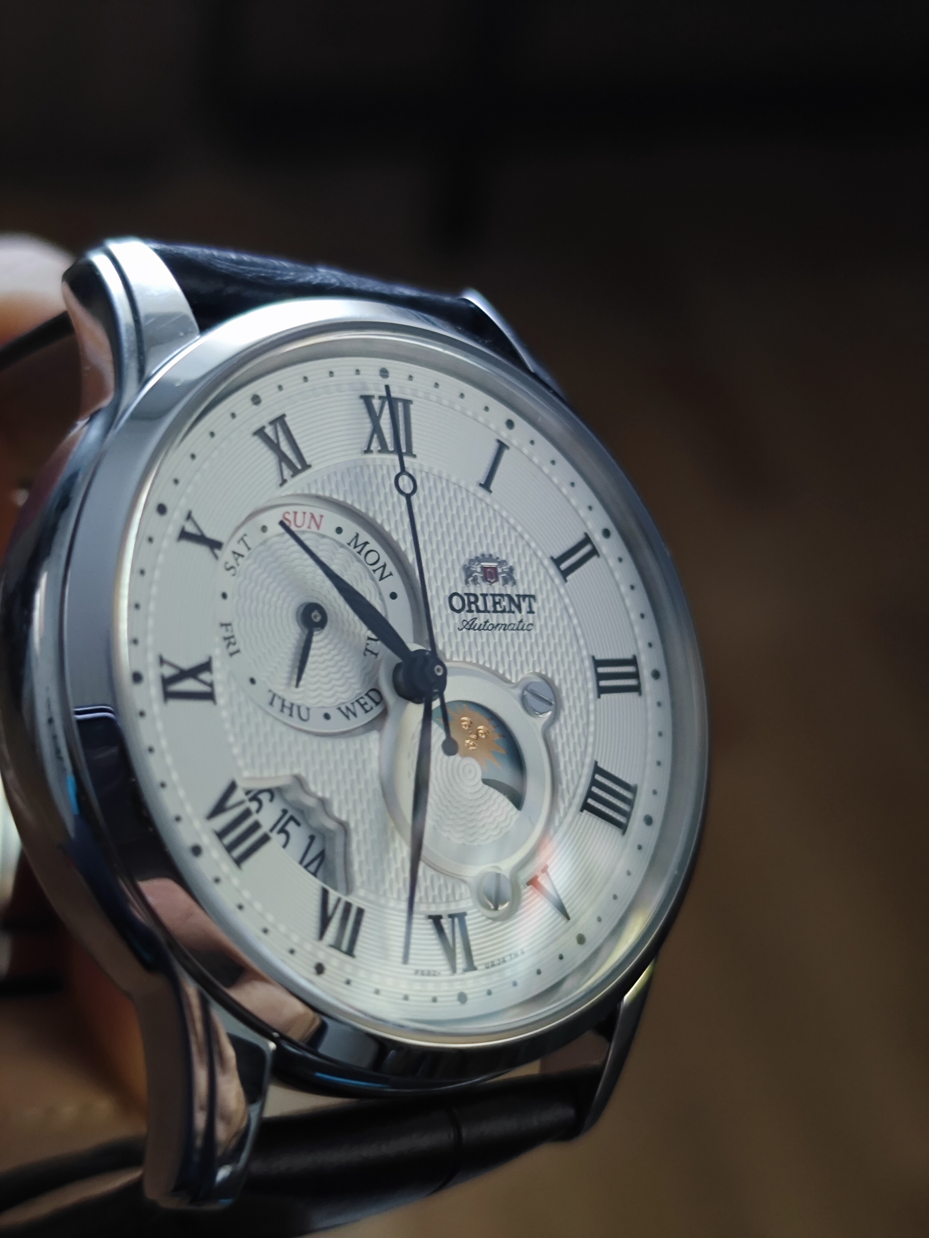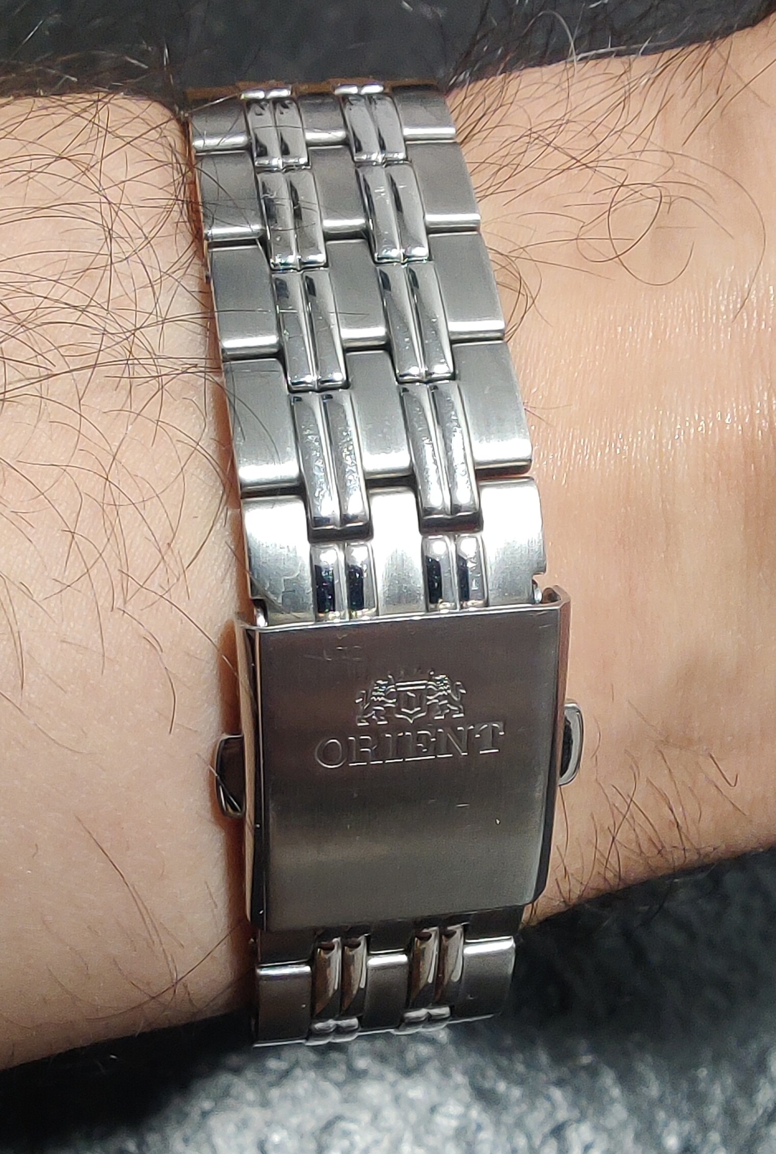 Tenía este orient con la correa [parece polipiel] tipo cocodrilo que traía de serie. Nunca me llegó a convencer. Así que pedí a ali esta. No es de mucha calidad, aunque para lo que costó, 2 euros no se puede pedir más. Para mi gusto queda mucho mejor así que ahora a buscar una milanesa negra pero de buena calidad.