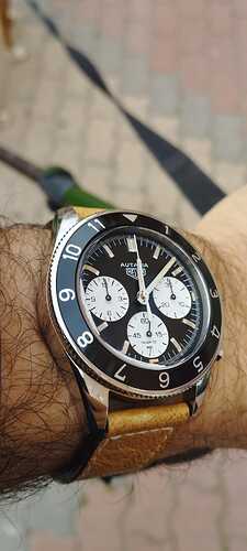 Buscaba un crono automático, que complementara mi mejor reloj solo hora, el Tutima Seven Seas (https://www.hablemosderelojes.com/t/os-debo-una-presentacion/240622), pero no quería un crono que fuera ni muy grande, ni muy grueso, algo que resultara cómodo en muñeca, y que tuviera varias cualidades: