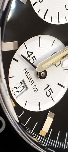Si pasamos a la esfera…pues valorar vosotros mismos, sus índices en tres dimensiones, pulido, cepillado y con su lumen vintage, en tono marrón (luego resulta ser verde) y unas agujas, con un pulido magnífico, que hace que sea muy fácil de ver, en cualquier posición (¿recordáis?, una de las condiciones, para ser un crono Autavia, además de su sencillo desempeño, es su buena legibilidad).