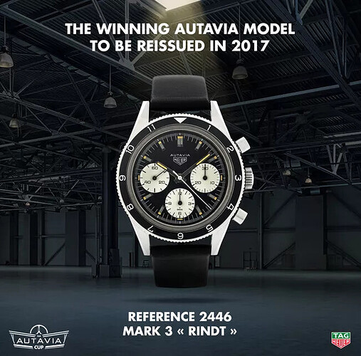El ganador, presentado en la Baselworld de 2017, fué la reedición del conocido como Autavia Rindt» – Ref 2446 Mark 3 de 1966.