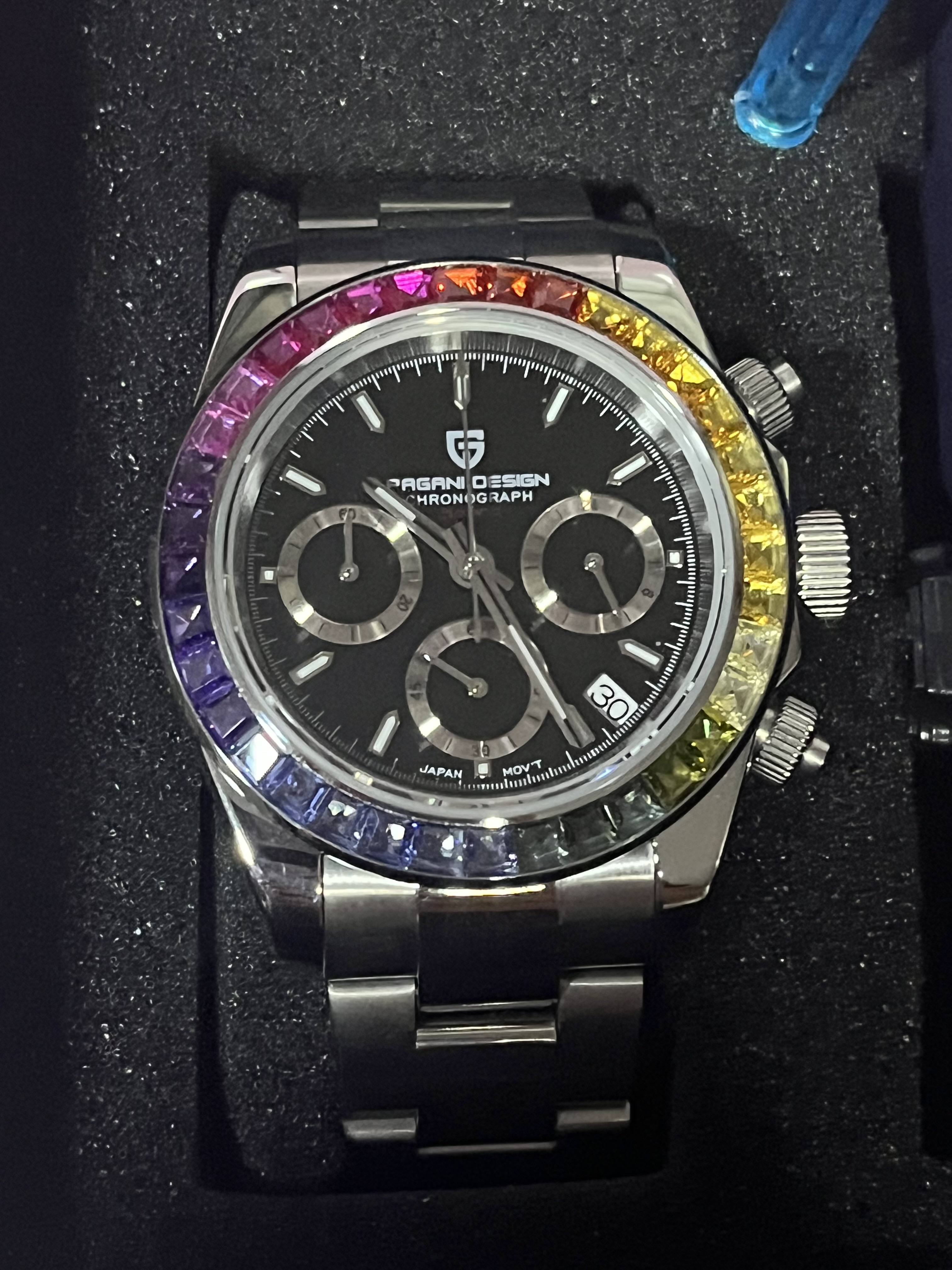 Yo lo he tenido hace poco en color azul y lo devolví porque no me convenció. El bisel se mueve algo, el lumen… de Pagani y bueno si te gusta te recomiendo que vayas a por otro superior, que por cierto, no tengo y no puedo comparar.