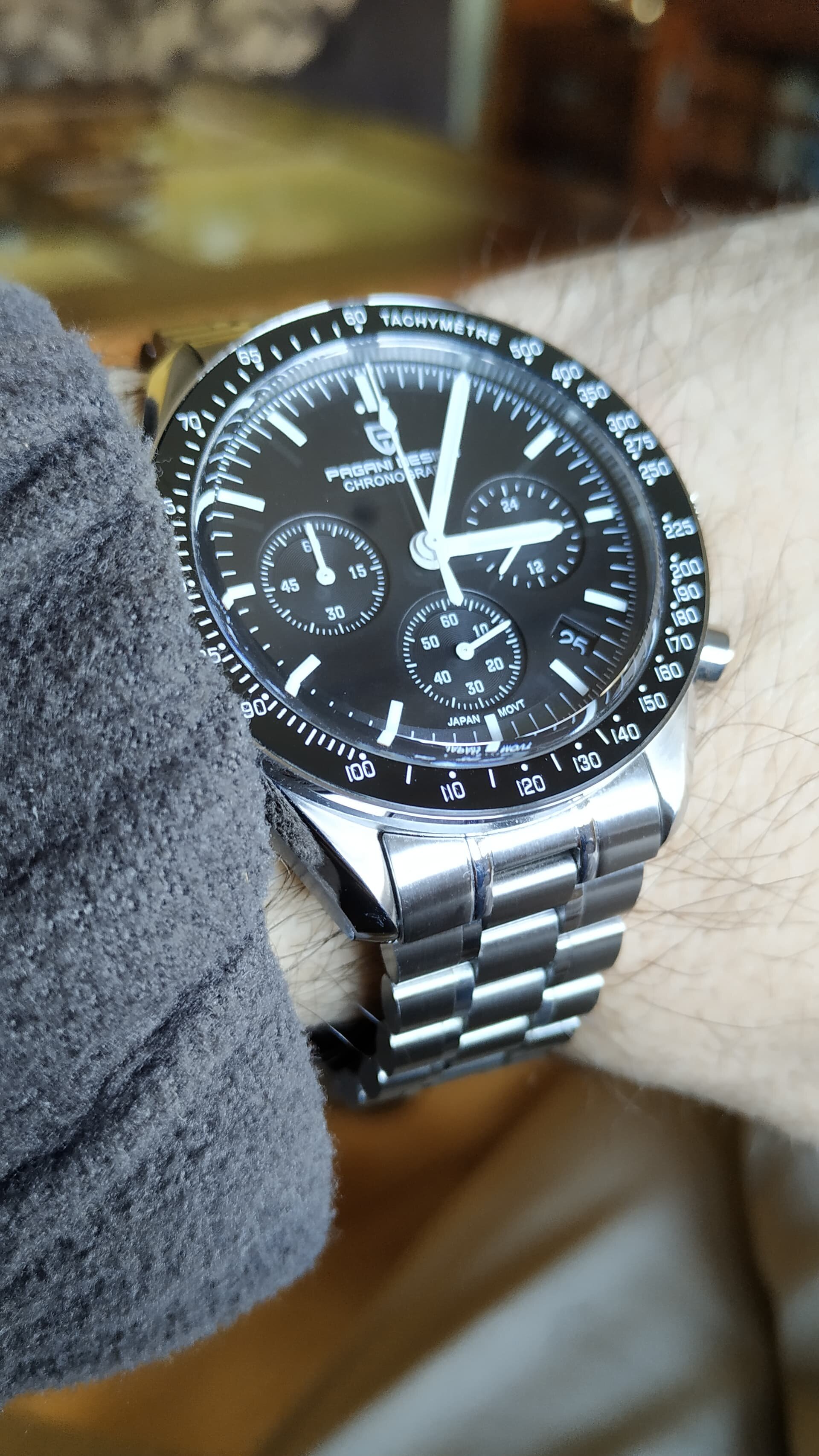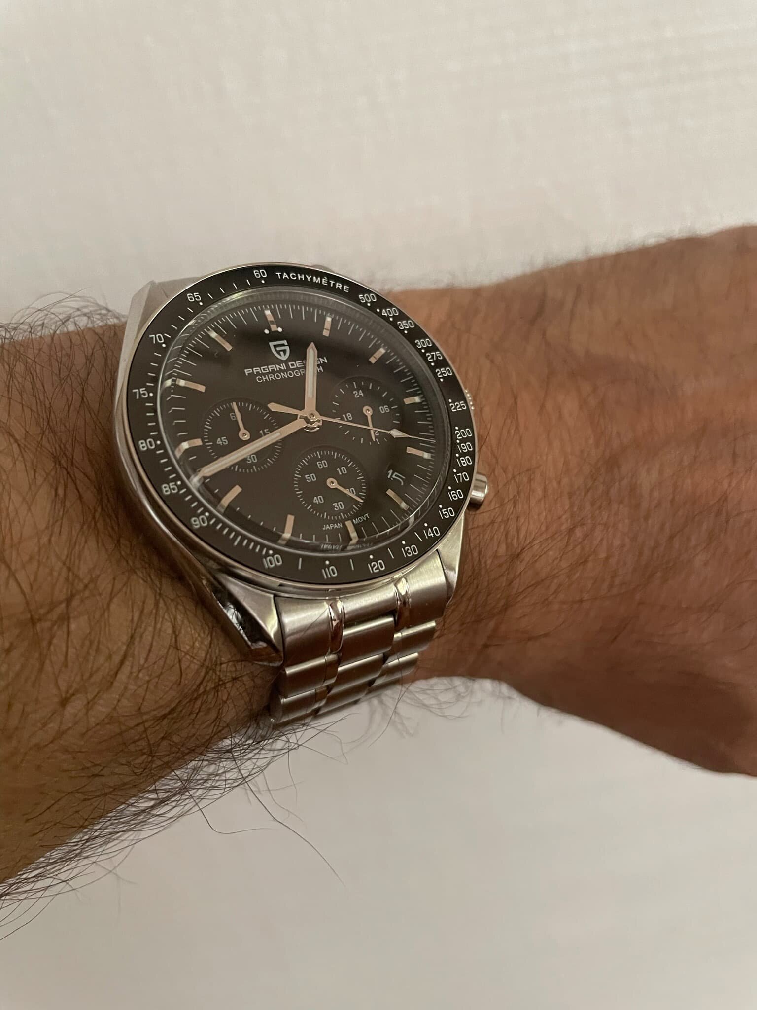 Compré hace unos meses un pagani moonwatch, y me duró menos de 3 horas antes de devolverlo. El movimiento se paraba a las 15 minutos de marcha, el acabado de la parte posterior de la caja era penoso y la visibilidad pésima. Todo eran reflejos en el cristal. Un pagani y no más, santo Tomás.