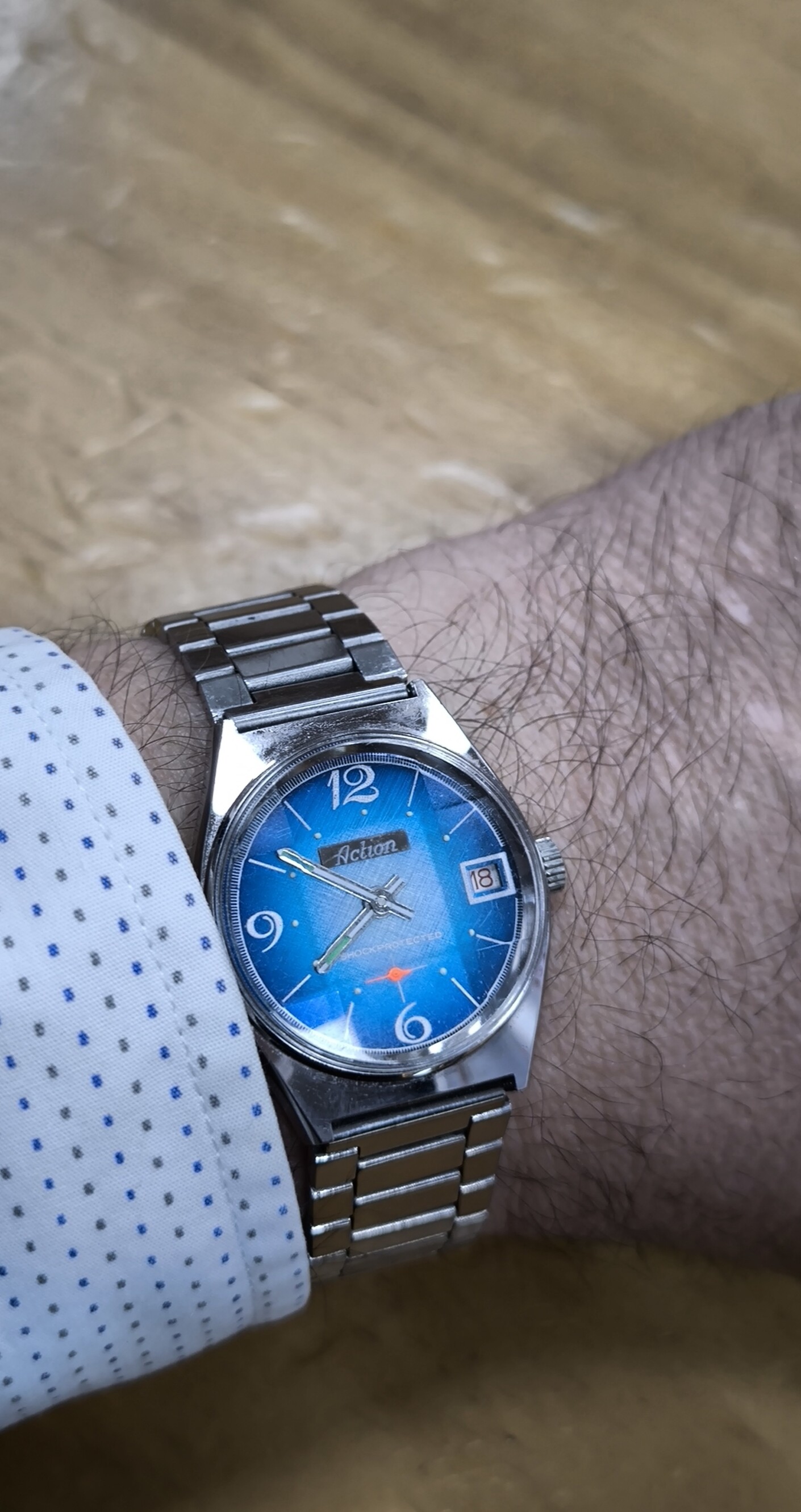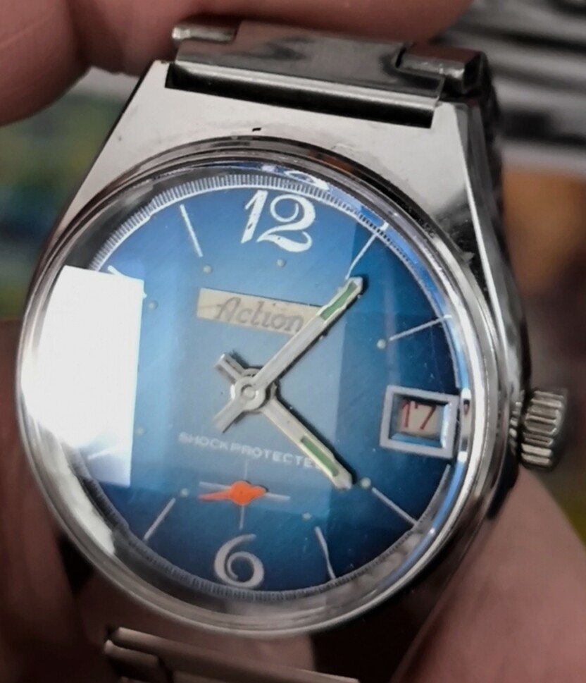 Es un reloj Action de mujer o cadete del que no se de dónde sale, aunque rastreando por inet sale que puede venir de roscopf pero puede que se trate de otro Action, a ver si alguien me alumbra.