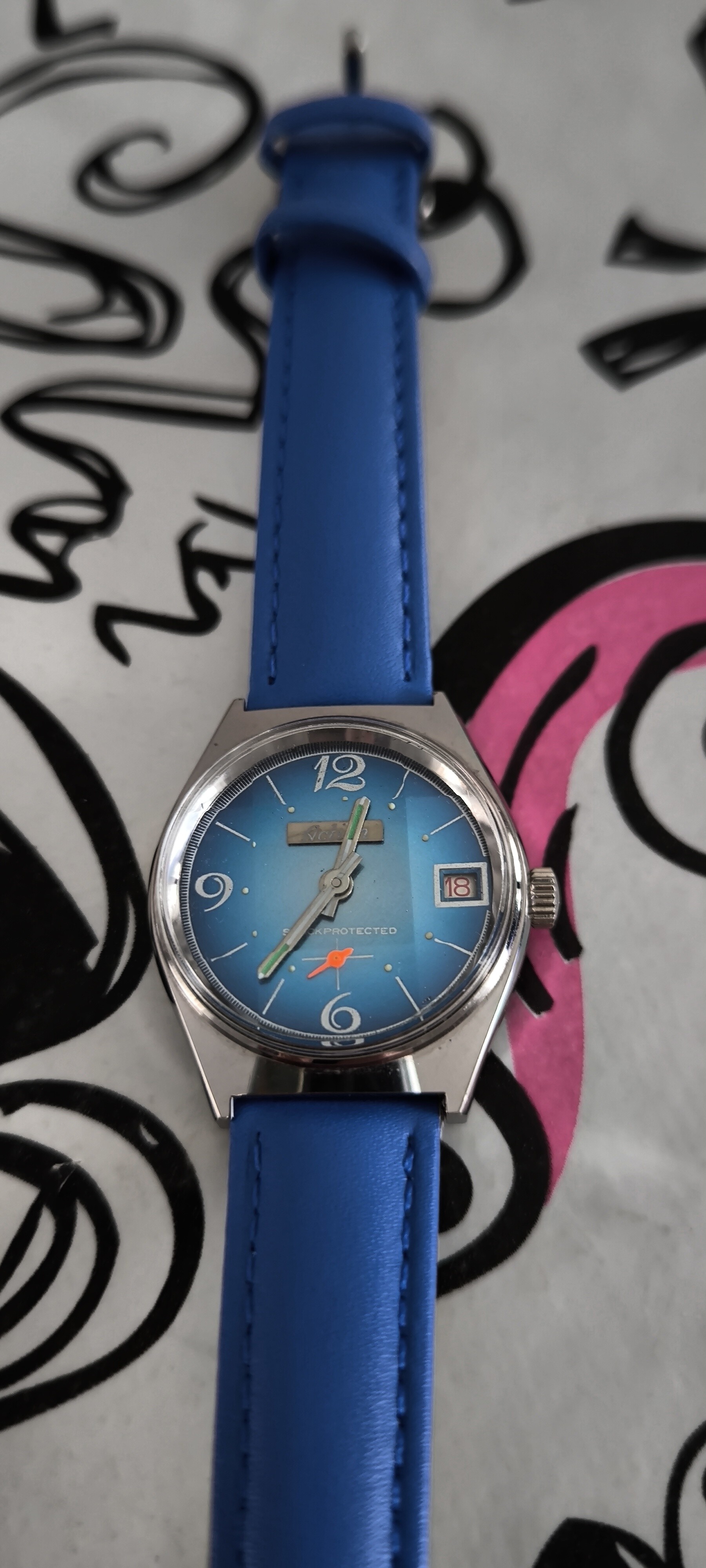 Buenos días, pues si ojeando en wallipp vi este relojito a precio casi de basurilla, reconozco que lo que más me llamó la atención, a parte del colorido, es que lleva cristal facetado, y esperando que estoy con los roquinas pues que se vino para casa.