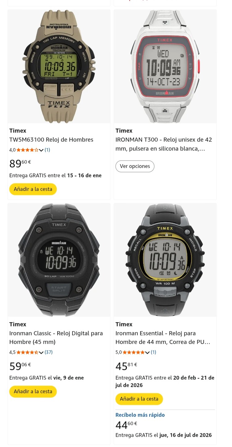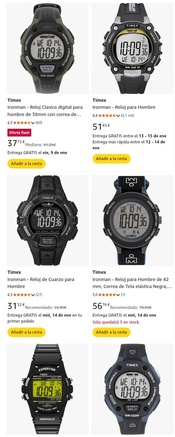 Yo recuerdo haber pagado 40€ cuando lo compré (desconozco si estaba en rebaja en ese momento). En Amazon lo venden por 60€ ahora mismo Timex Orologio Ironman Rugged 30 da uomo con cinturino in resina nera T5K793 : Timex: Amazon.es: Moda