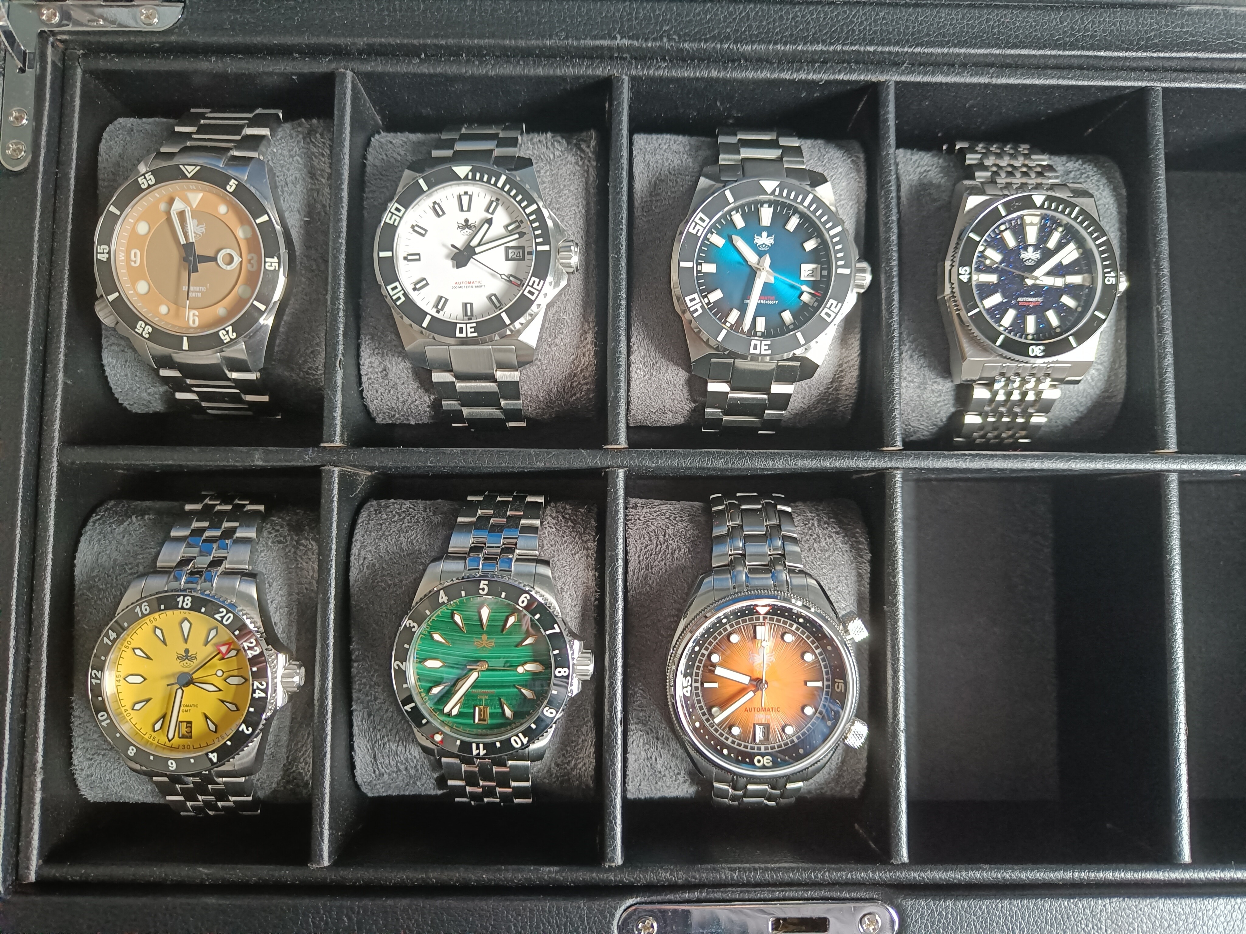 La inquietud me empezó cuando pensé (después de comprar como buena compra en caliente jeje) si realmente phoibos te da mucho mas que un steeldive o berny o este tipo de marcas, ya que el precio aunque refiriendonos a Seiko es barato, comparado con los demás chinos es bastante mas caro. Lo que si creo que es de valorar es que sus diseños son propios o al menos no son todo fusiladas como si lo son la mayoría de chinos.