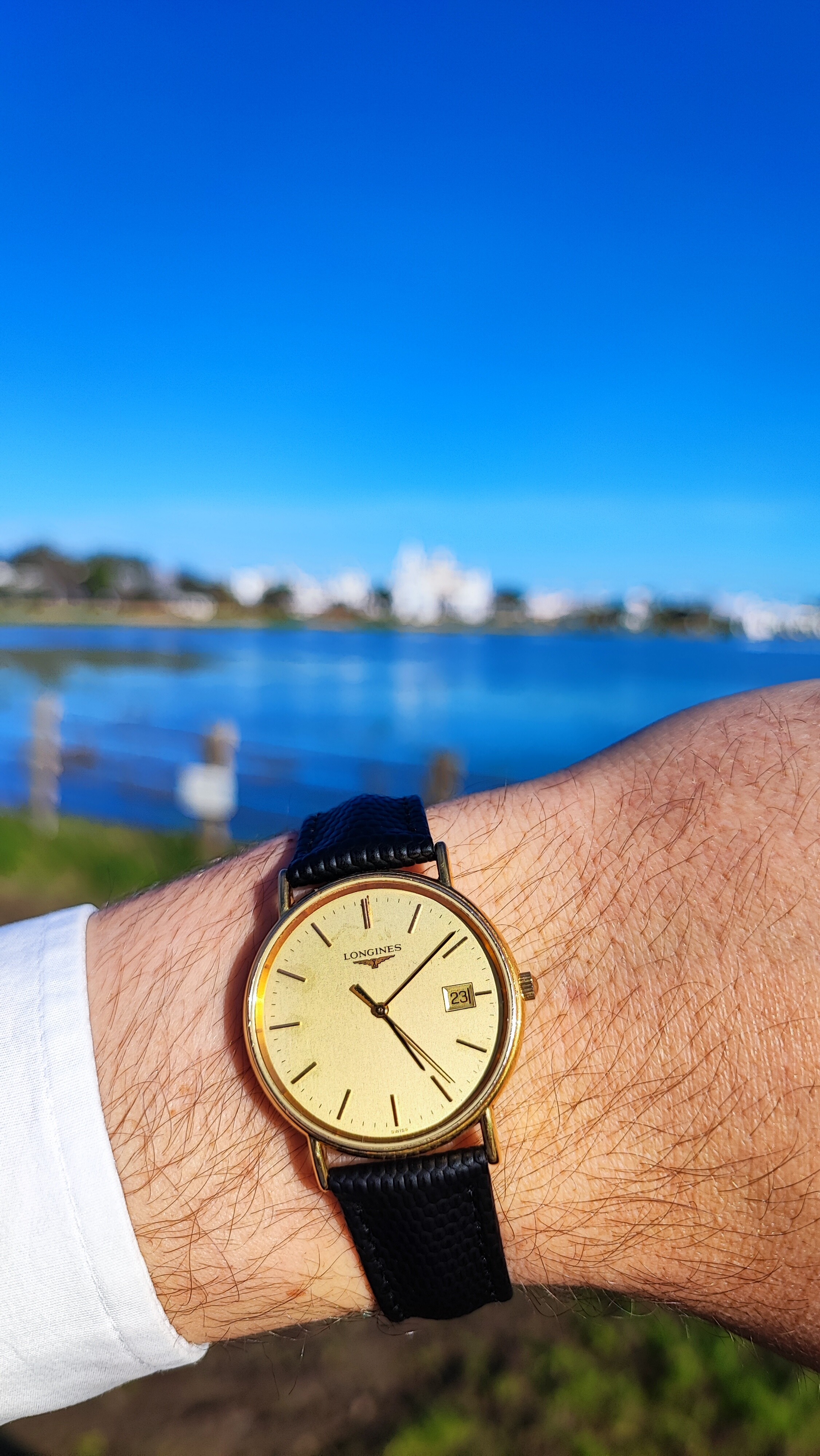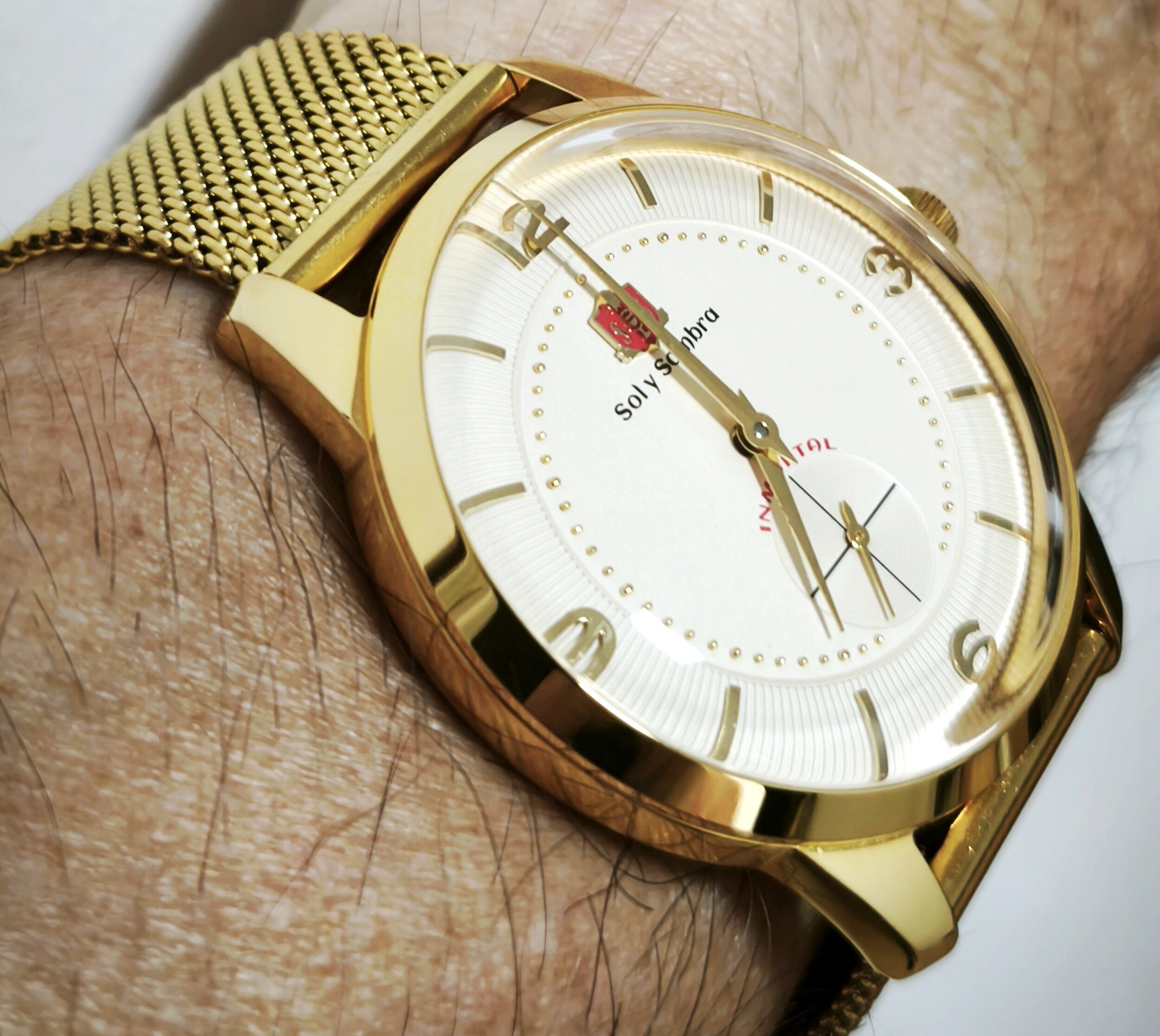 Pues esta herencia inesperada de mi abuelo es la joya de la corona de mi caja, y encima es doradito, así que me tiene hablando solo. Despues de muchos años parado porque mi abuelo no lo usaba, se lo regaló a mi hermano por su comunión, este tampoco lo usó, mi padre se lo adjudicó, lo usó hasta que su muñeca ensanchó demasiado y volvió a quedar parado. Cuando yo he rescatado la afición en la familia nos pusimos a restaurarlo y luego mi padre me lo dió a mí, que me queda diria que bien, pues la muñeca aun es normalita