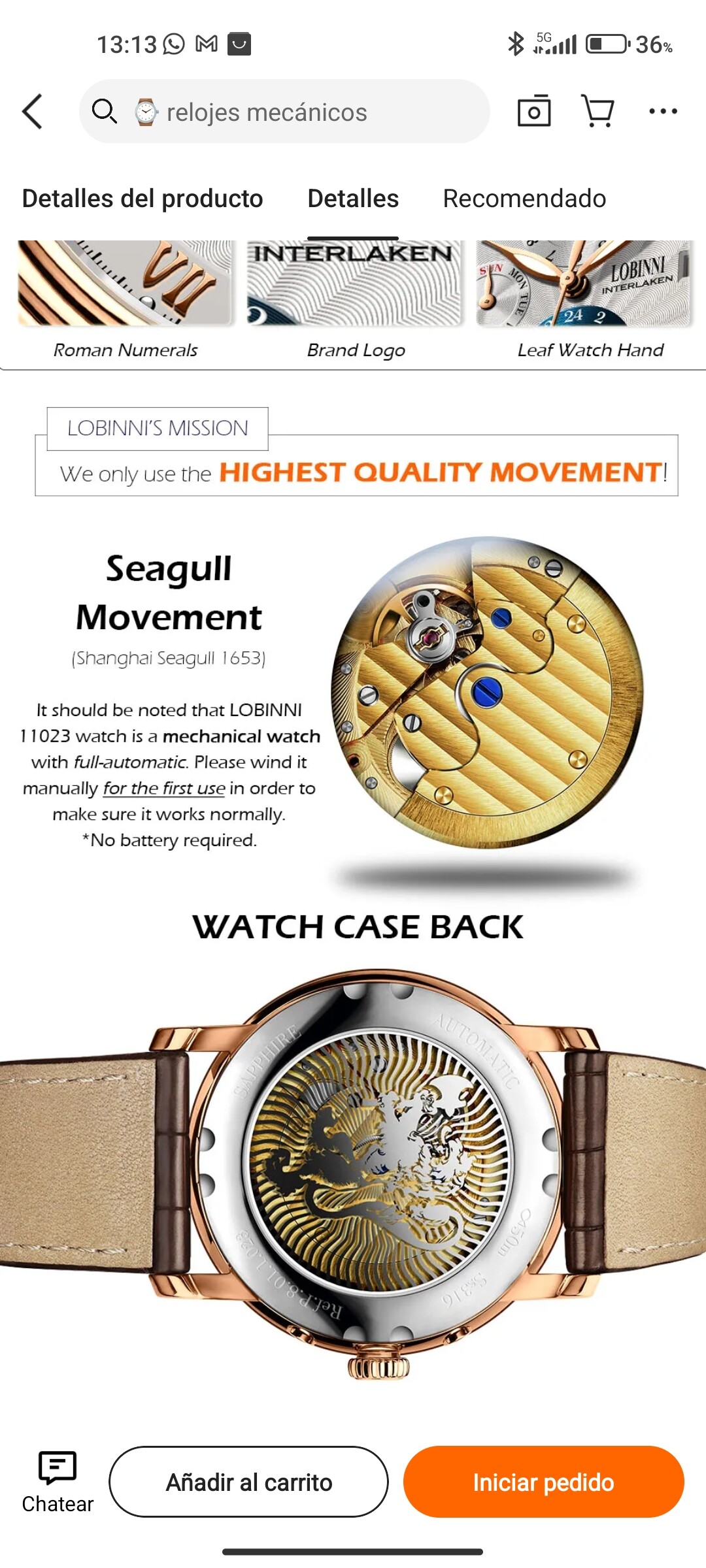 Lo he sacado de Ali Express, porque en su página, como decías, no dan detalles de nada, lo cual es una auténtica falta de respeto y una ausencia de información comercial increíble. Hemos de fiarnos de su vendedor principal, que te dice el movimiento de algunos modelos nada más. Del mío en concreto no he sido capaz de averiguarlo, porque tiene una bonita trasera con cristal, pero con un león entre mallas que no deja ver mucho…
