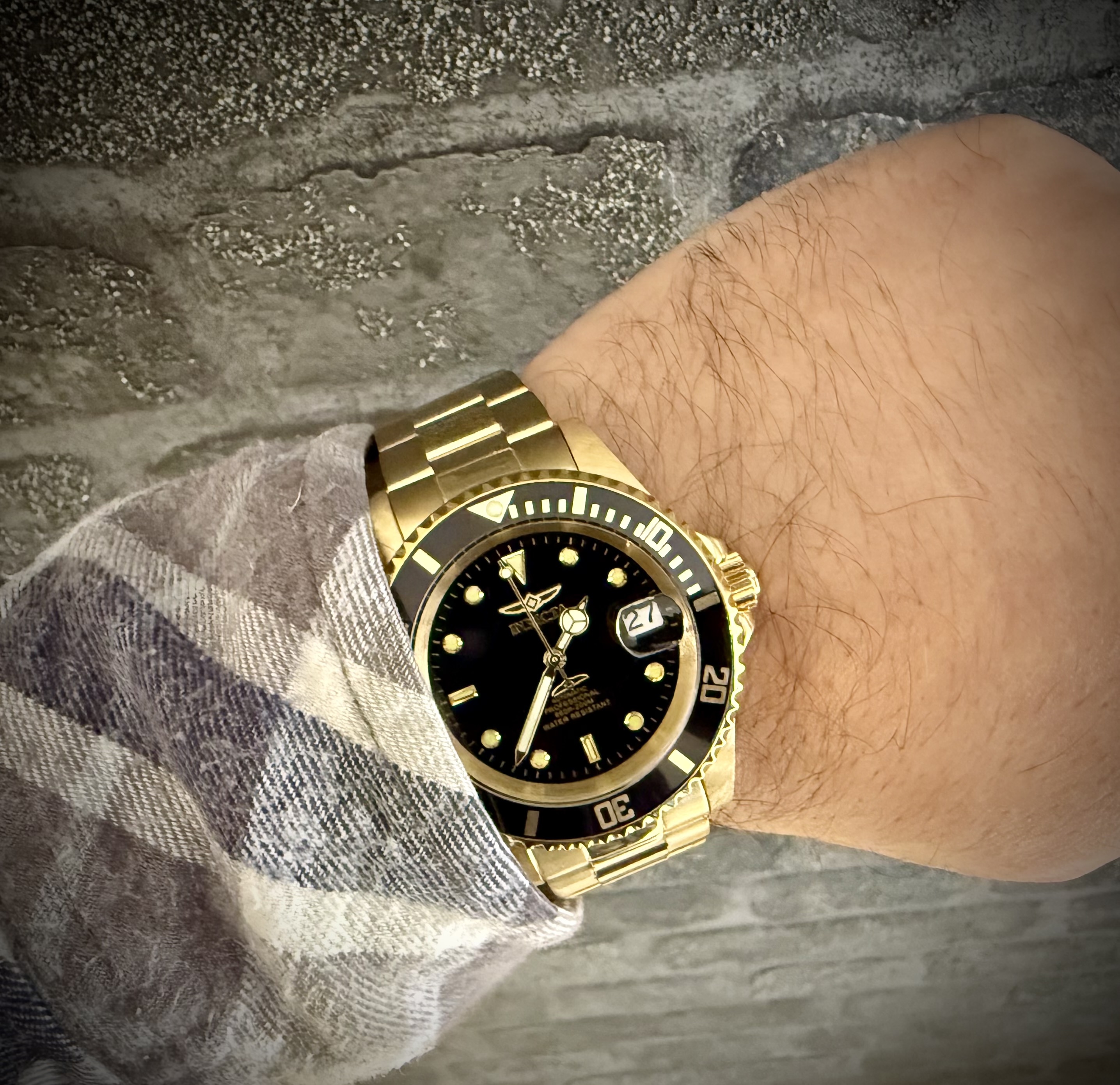 Aquí, en la foto “de estudio“ en muñeca, que le estoy haciendo a todos mis relojes; poco a poco, según me los voy poniendo.