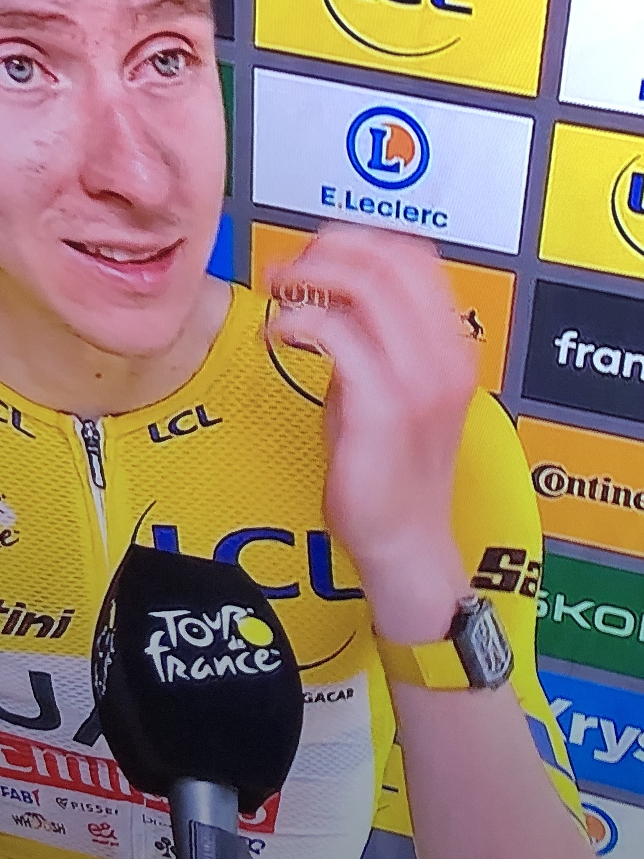 Doy fe que lo ha llevado puesto toda la etapa de hoy en el Tour. He seguido casi toda la retransmisión y asi lo he visto.