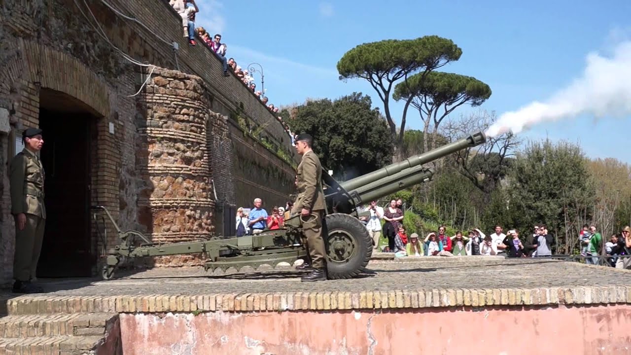 En Roma, la tradición de disparar un cañón al mediodía se mantiene desde 1904 en la colina del Janículo, al oeste del Tíber. Esta práctica fue introducida por el Papa Pío IX en 1847 para sincronizar las campanas de las iglesias de Roma. Originalmente, el cañón estaba ubicado en Castel Sant’Angelo, pero en 1903 fue trasladado temporalmente a Monte Mario, hasta ser finalmente colocado en su ubicación actual. La tradición se interrumpió durante la Segunda Guerra Mundial y se reanudó el 21 de abril de 1959, en el 2712 aniversario de la fundación de Roma.