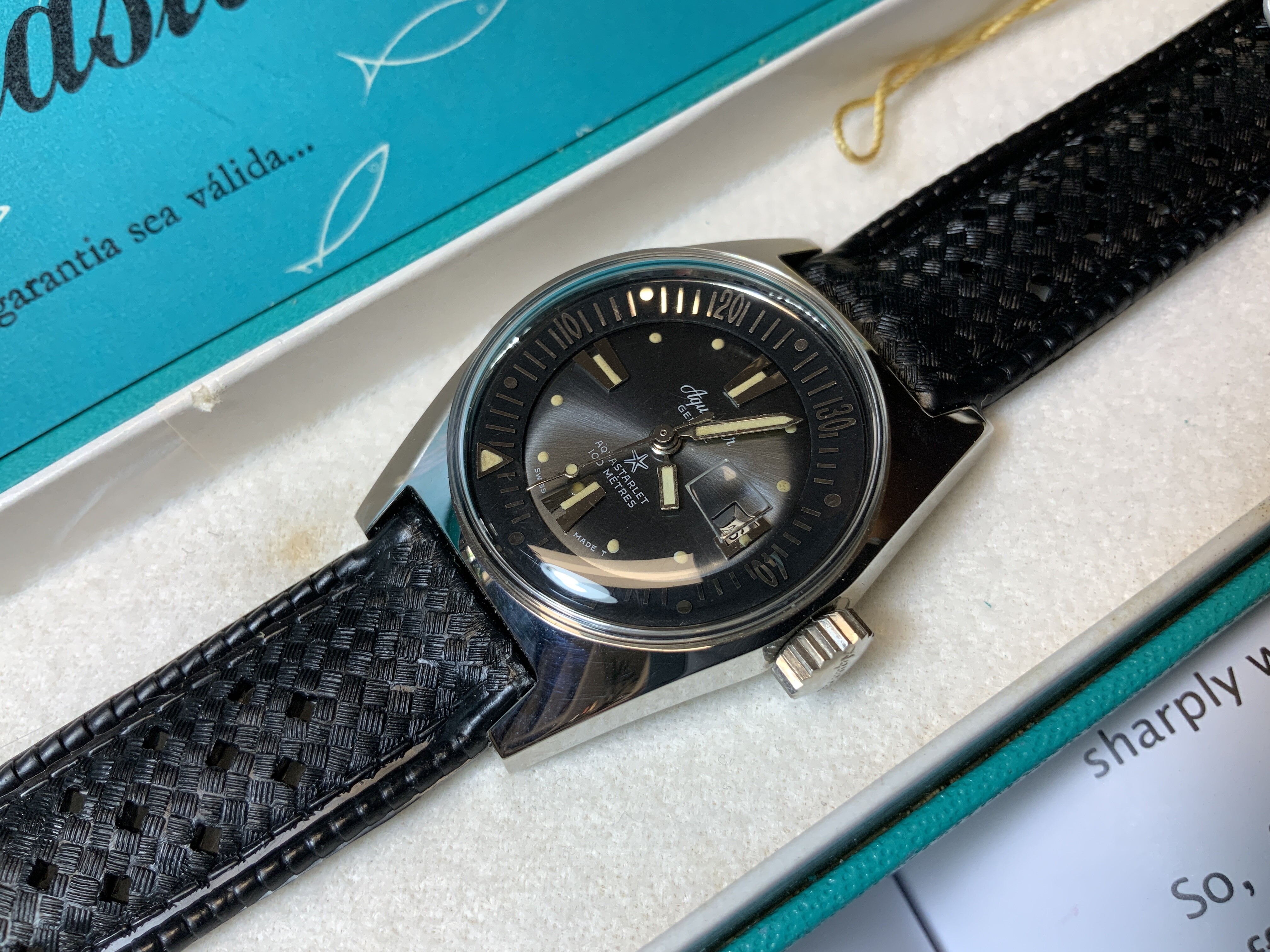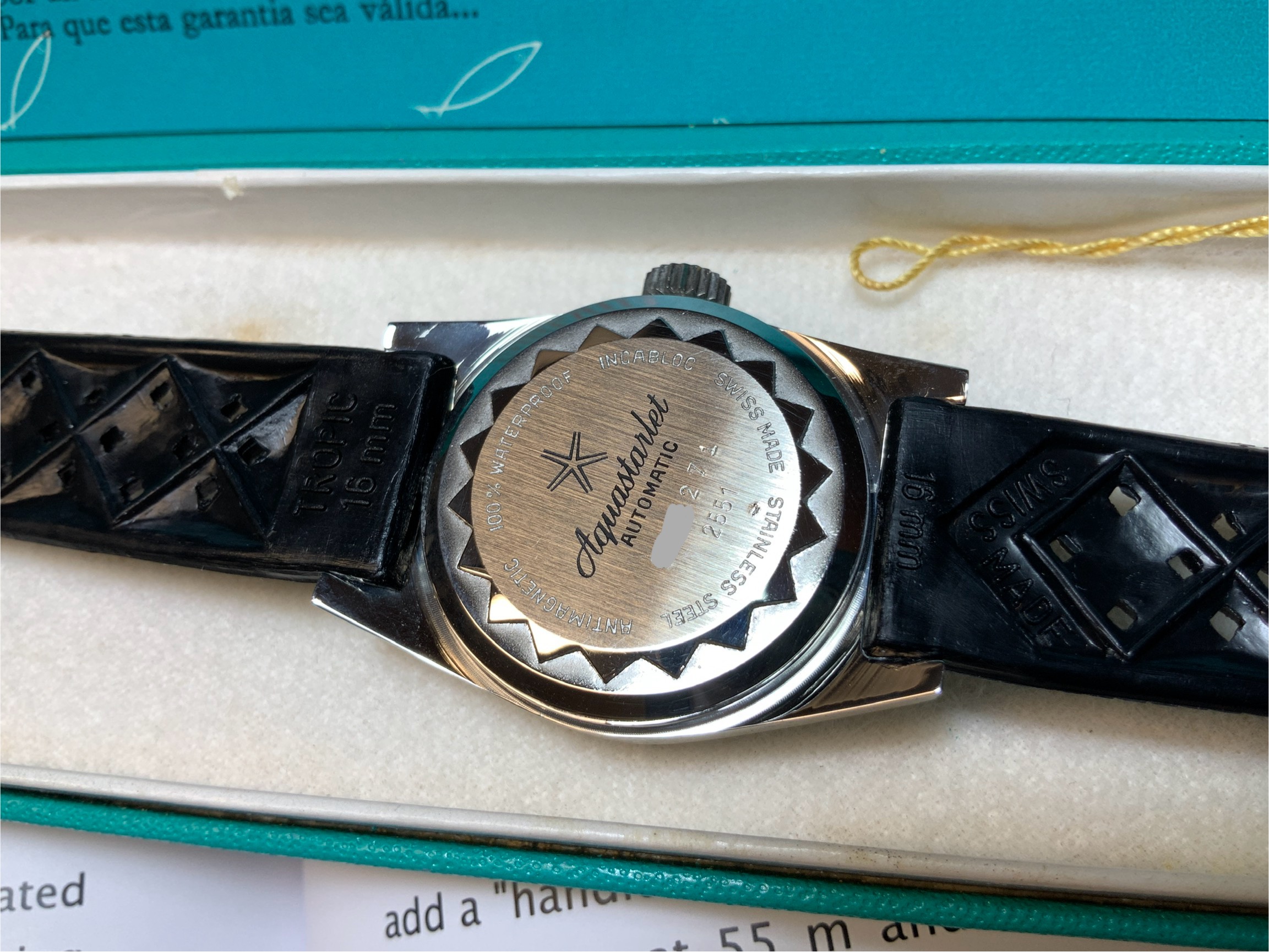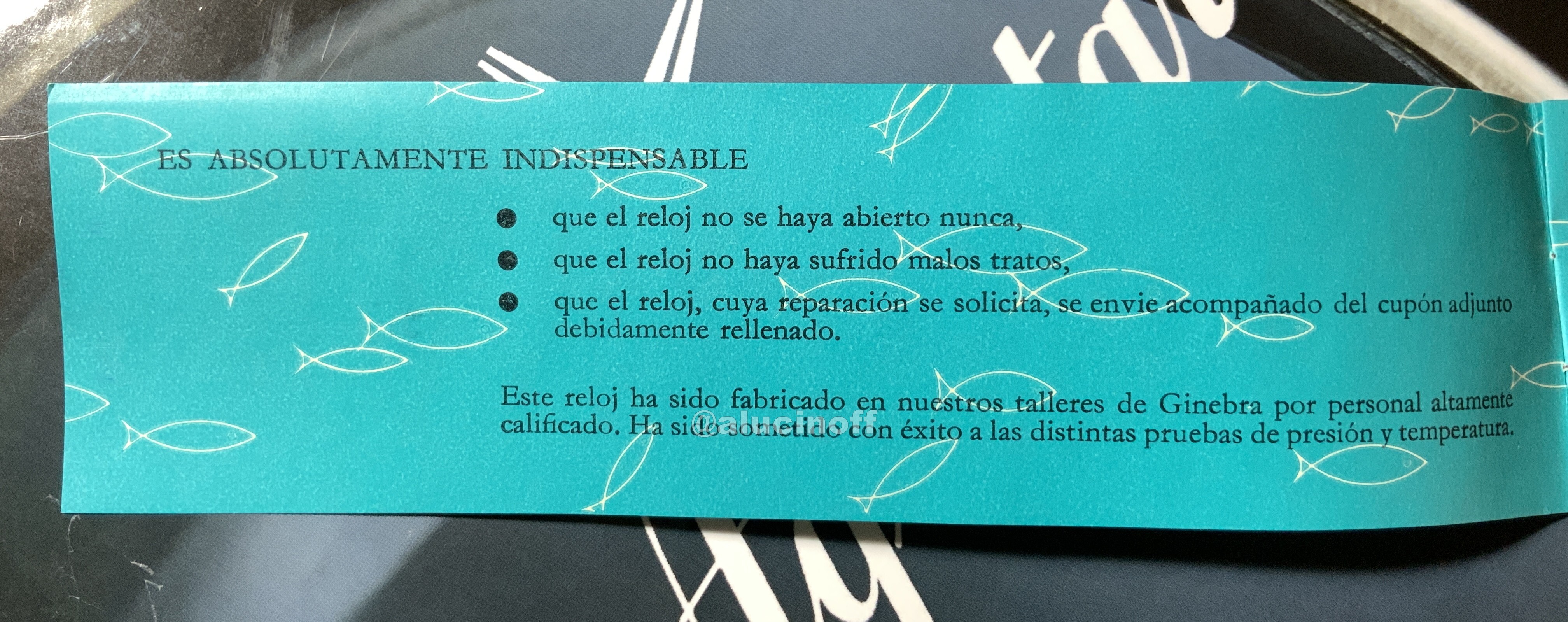 Finalmente, como buenos “New Old Stock”, por supuesto llevan toda su dotación, incluyendo caja y documentación. Así que aprovechando que tampoco es fácil de ver, he fotografiado todo el “manual”, para que lo disfrutéis, que siempre es curioso leer documentos del pasado relojero…