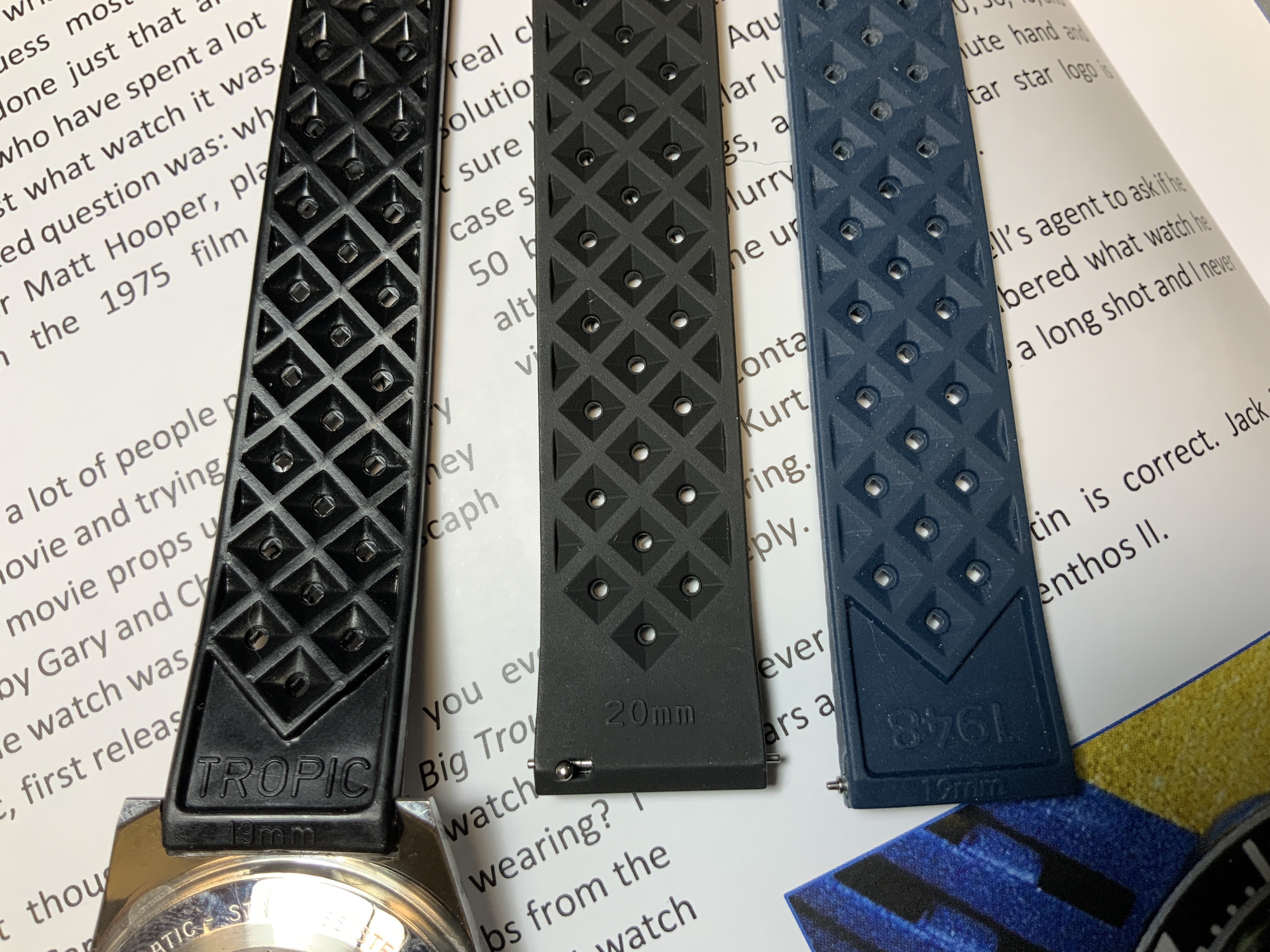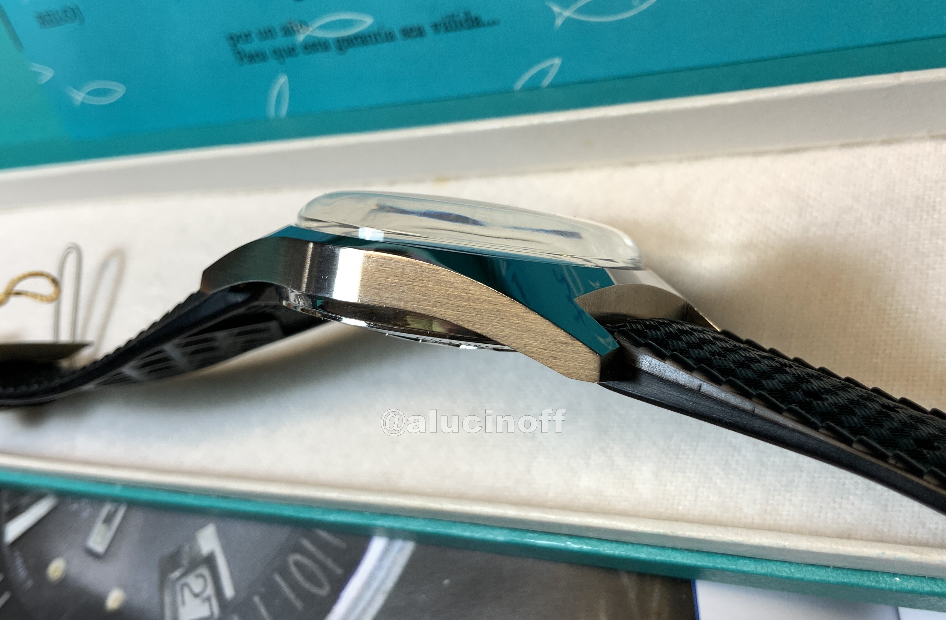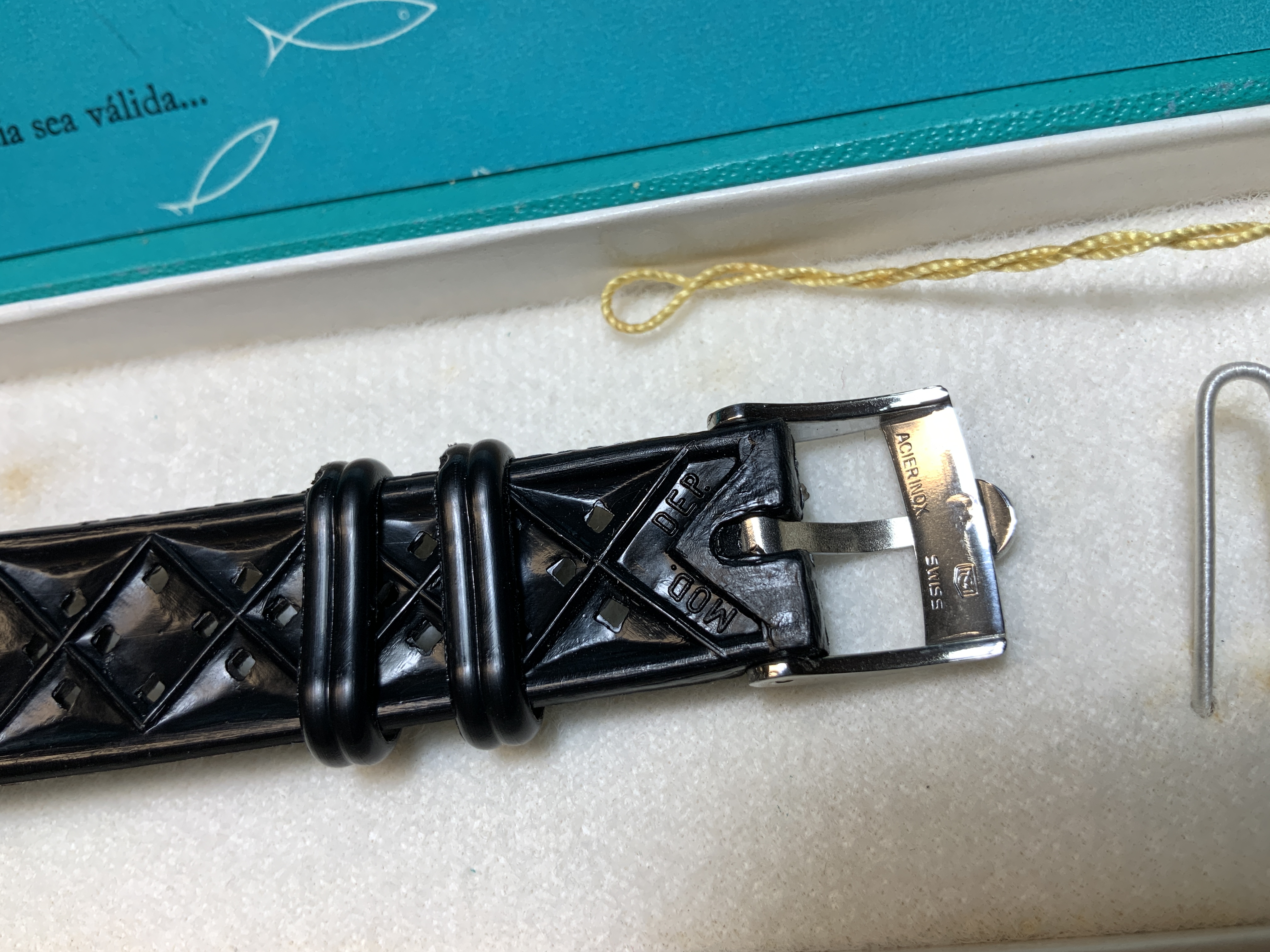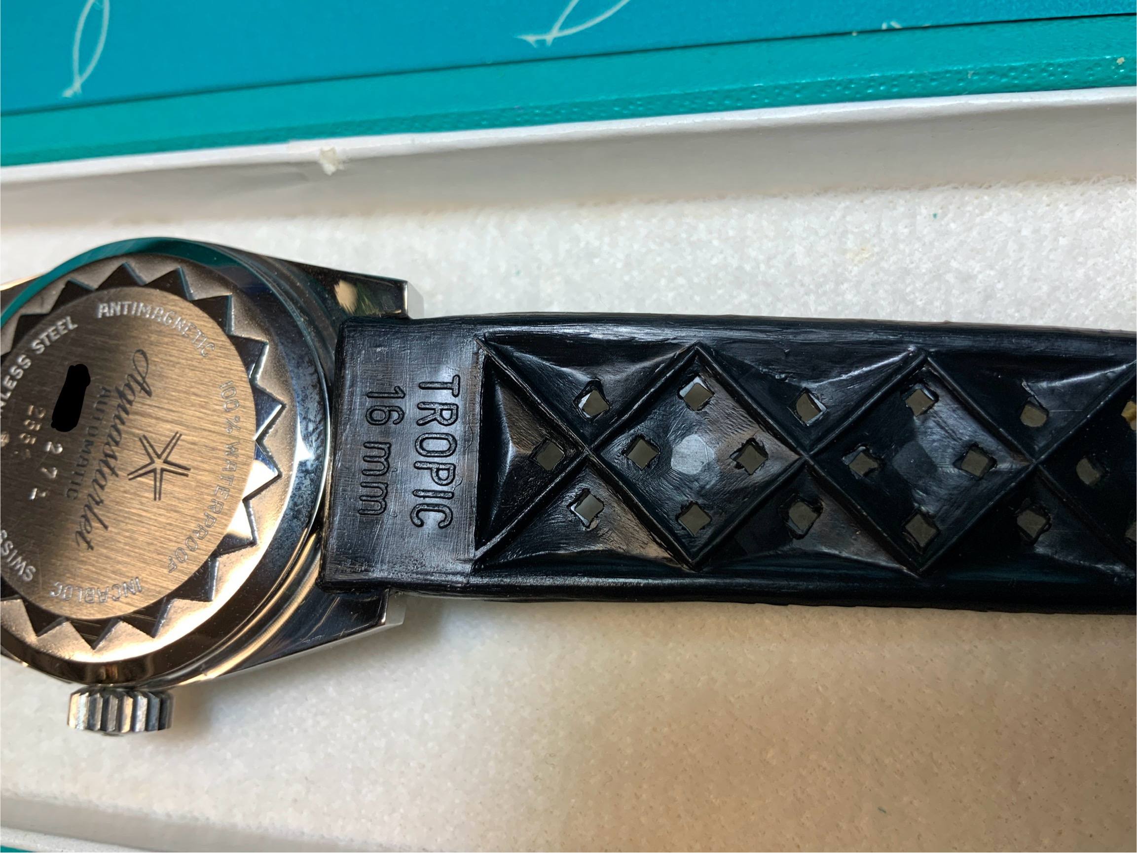 Pero realmente no se suelen ver correas Tropic originales. Y si aparecen, llevan ya un trote importante. Siempre se habla de lo buenas que eran, que su compuesto era muy resistente para el uso principal de buceo, etc, etc… Pero claro, para comprobarlo había que tener en la mano una en un estado nuevo… recién salido de la caja…