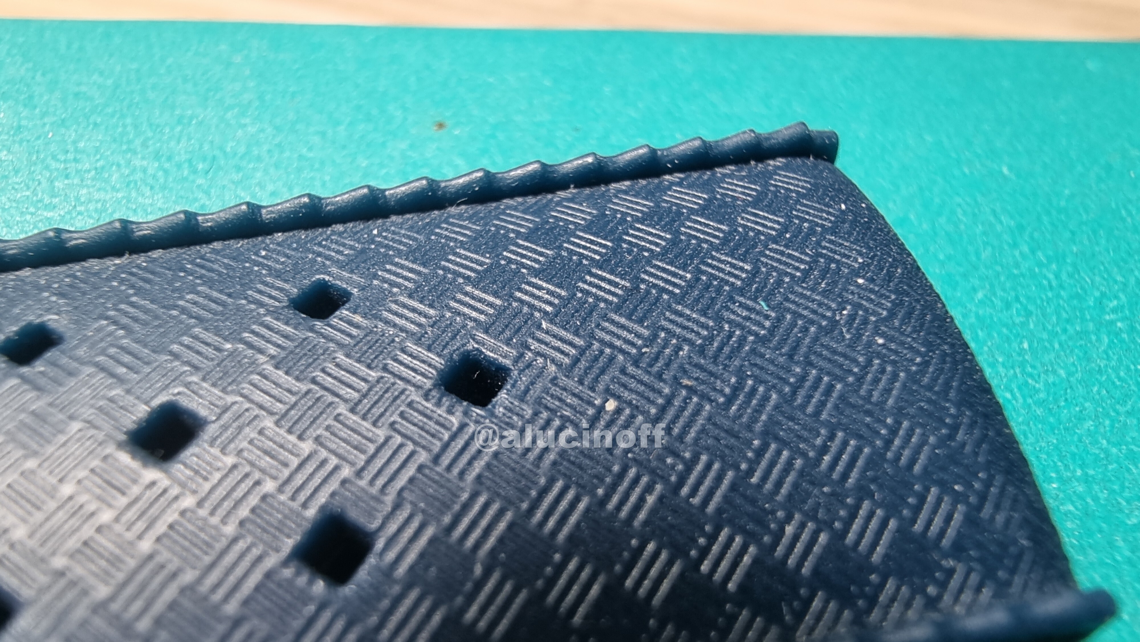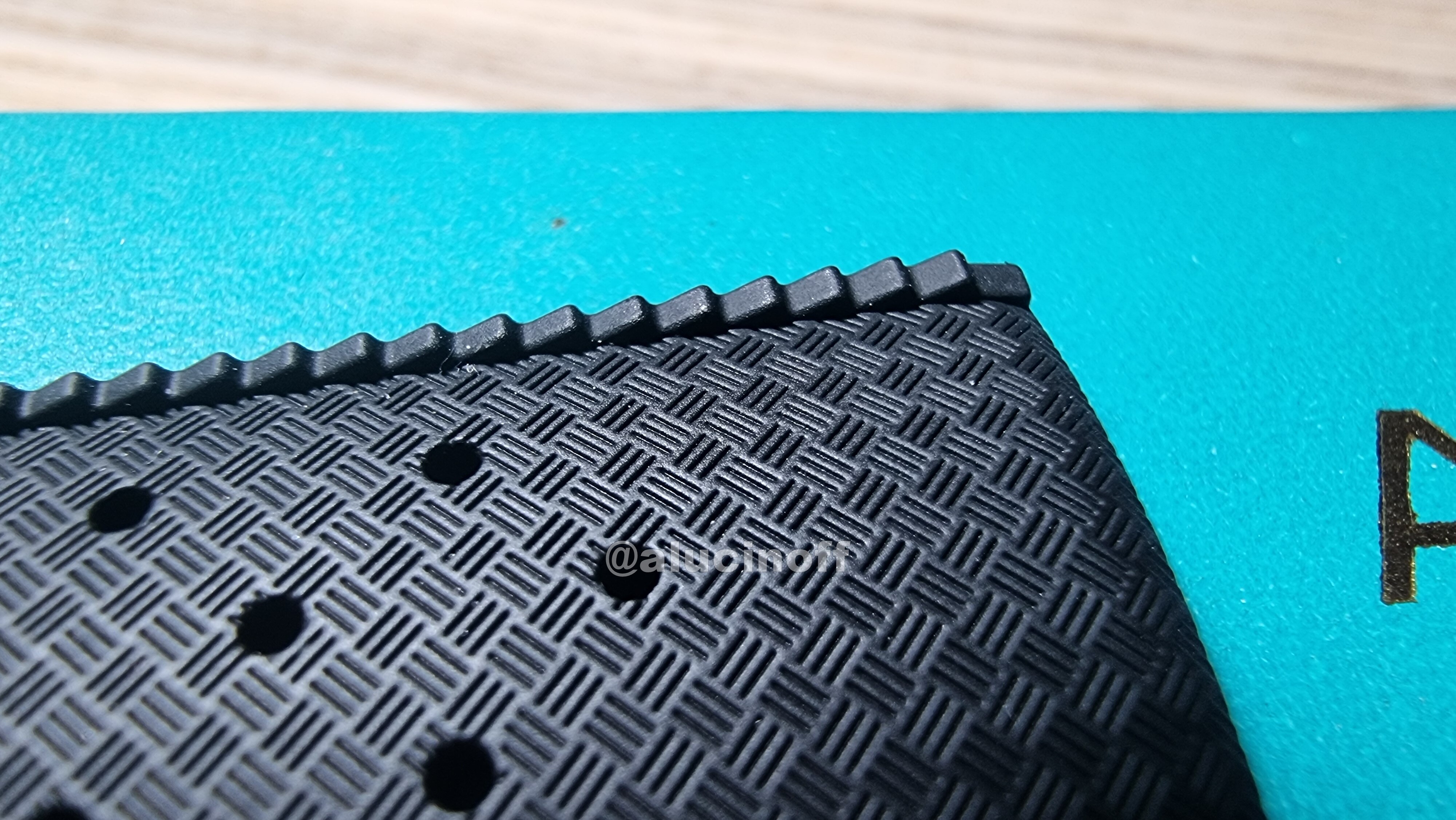 Y cómo es una correa Tropic “viejoven”? Pues la verdad, una pasada. No he probado las nuevas Tropic. Se supone que están fabricándolas con la fórmula original, así que habrá que probarlas, porque si son como éstas, valdrán la pena pese al precio. Esta es una goma muy flexible, comodísima, con un dibujo en relieve muy marcado, un brillo que no se ve en una de silicona o FKM… Pero claro, es una original y da miedo ponérsela ![]()