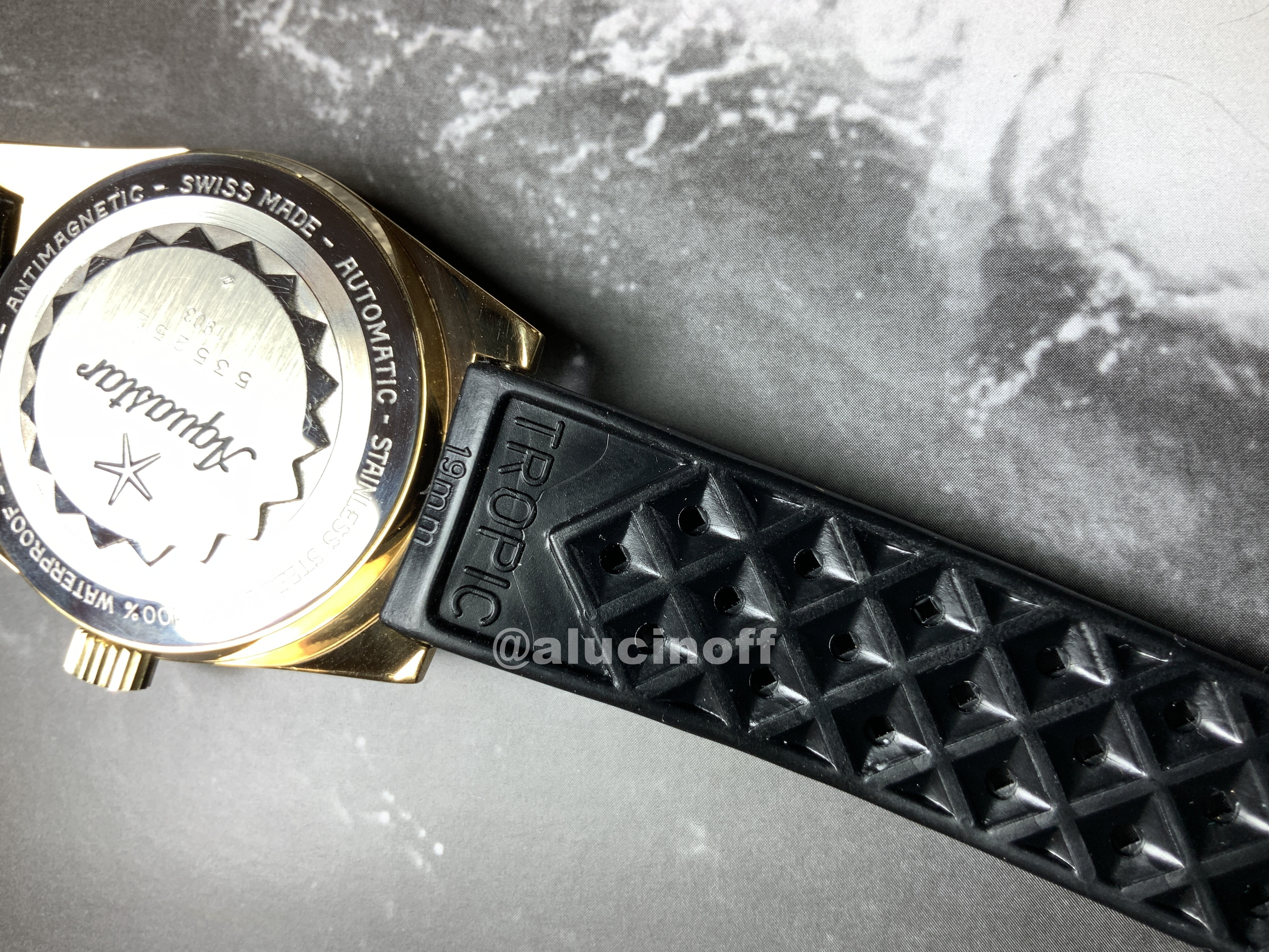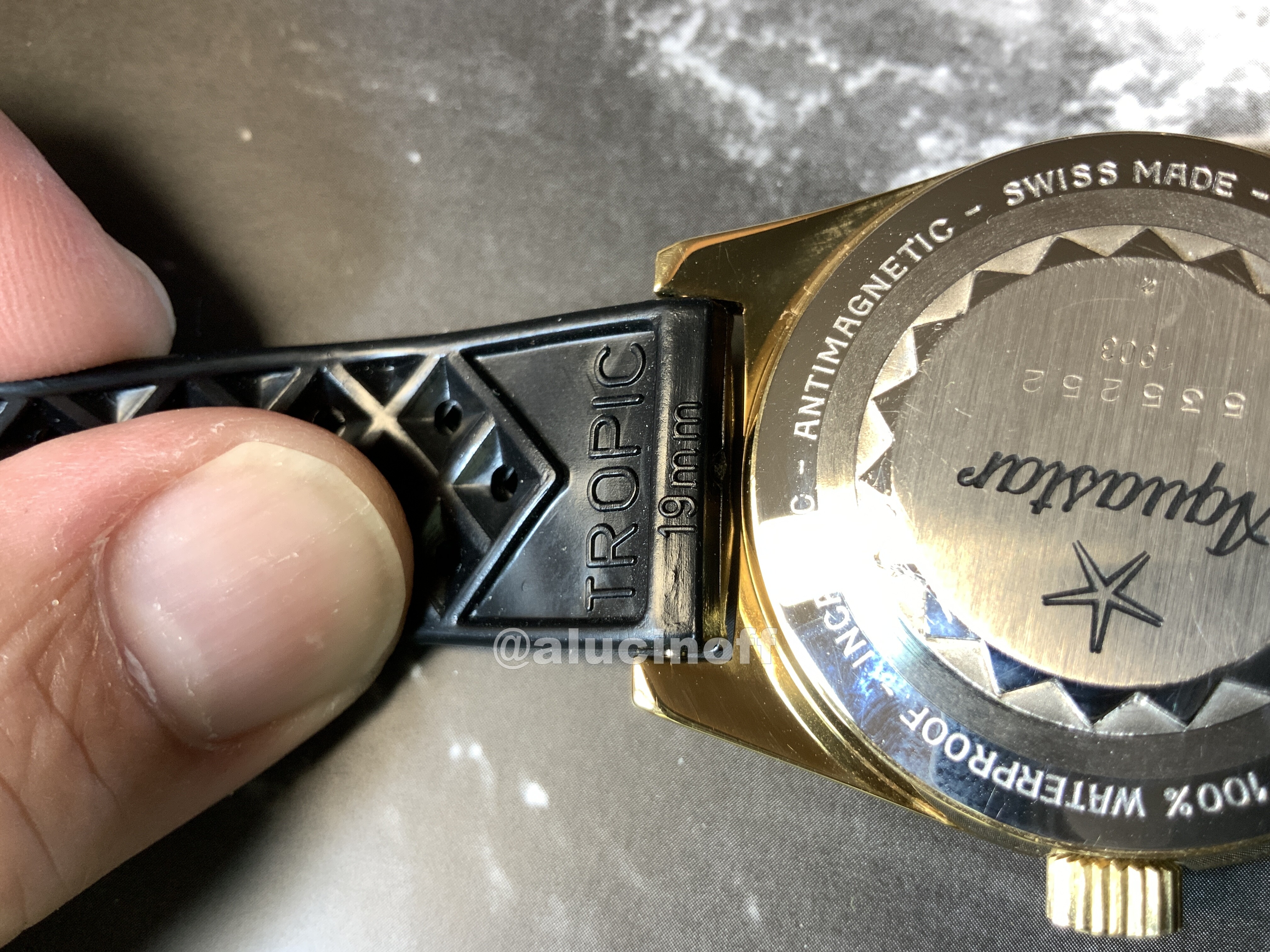 Aquastar vendía sus relojes con diversas opciones de correa, pero las más habituales eran Tropic. Luego se incorporaron las Isofrane, armis NSA… Y Tropic eran las que llevaban originalmente los modelos 63.