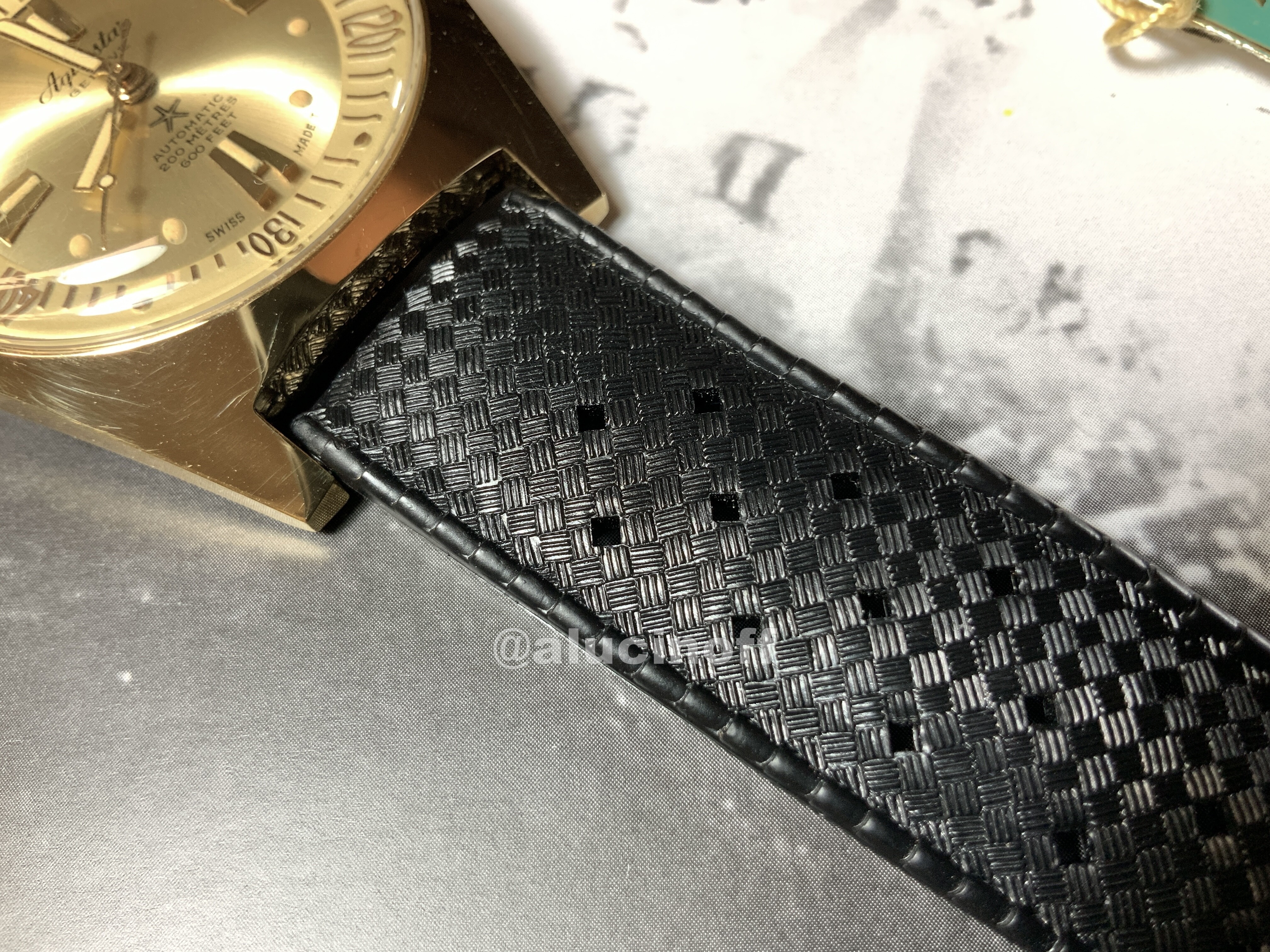 Y hablemos de la correa. Es una de las cosas que más llama la atención. Leemos continuamente acerca de las correas “Tropic”, sabemos que era la firma suiza que fabricaba las primeras correas para divers, e incluso que se han empezado a fabricar de nuevo, y a vender a precios nada populares.