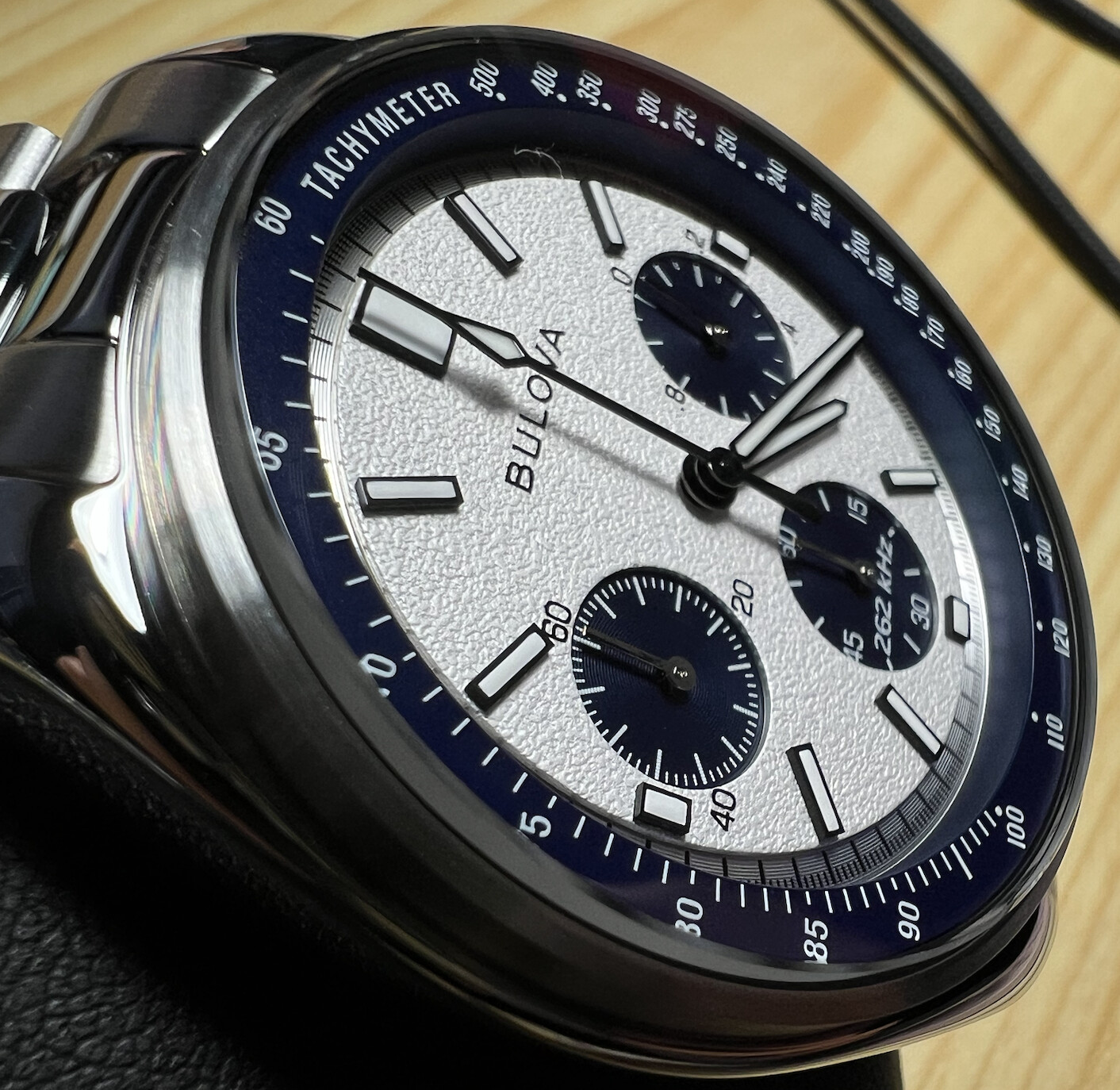 Estaba dubitativo entre la versión de caja mate 45mm y esta que vengo a presentar, pero los 2 mm y la combinación de colores con ese dial texturizado en un blanco plateado y esos toques azules me hizo decantarme por él, y más logrando un precio muy cercano a la versión de 45 que ya es sumamente difícil de alcanzar, como ya sabemos la versión de 43mm es mucho más cara pero los acabados en directo lo merecen, el que no aparezca fechador también sumaba, ya que me encanta el equilibrio en la esfera.