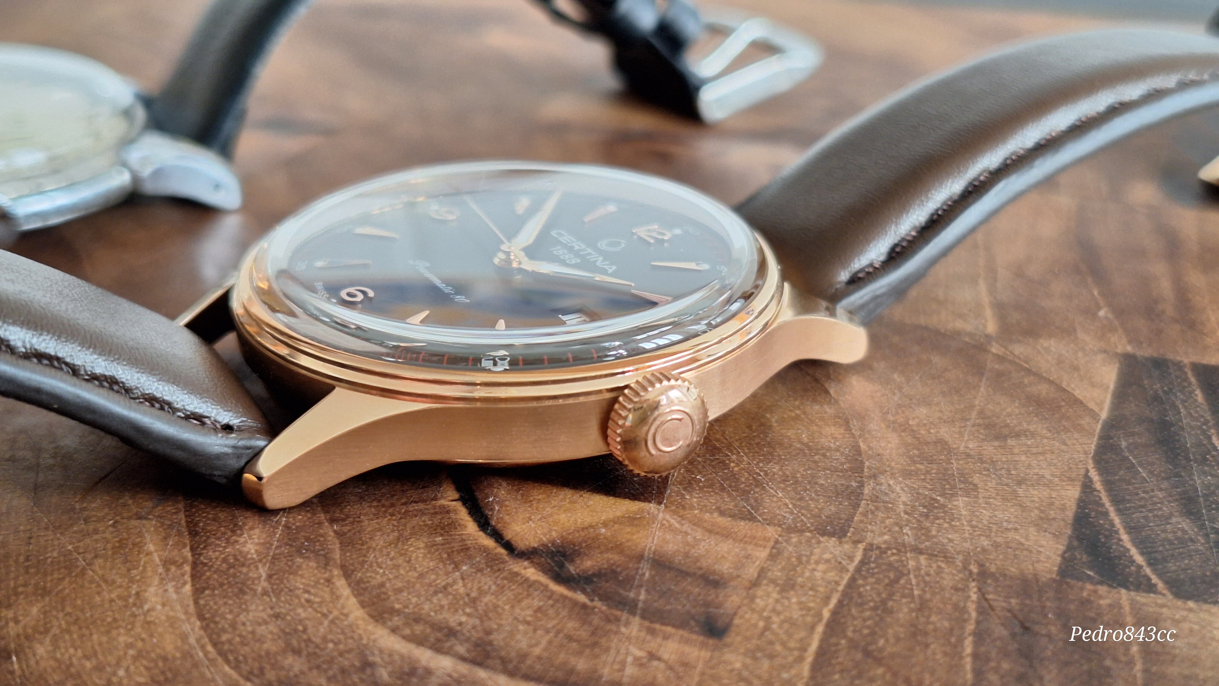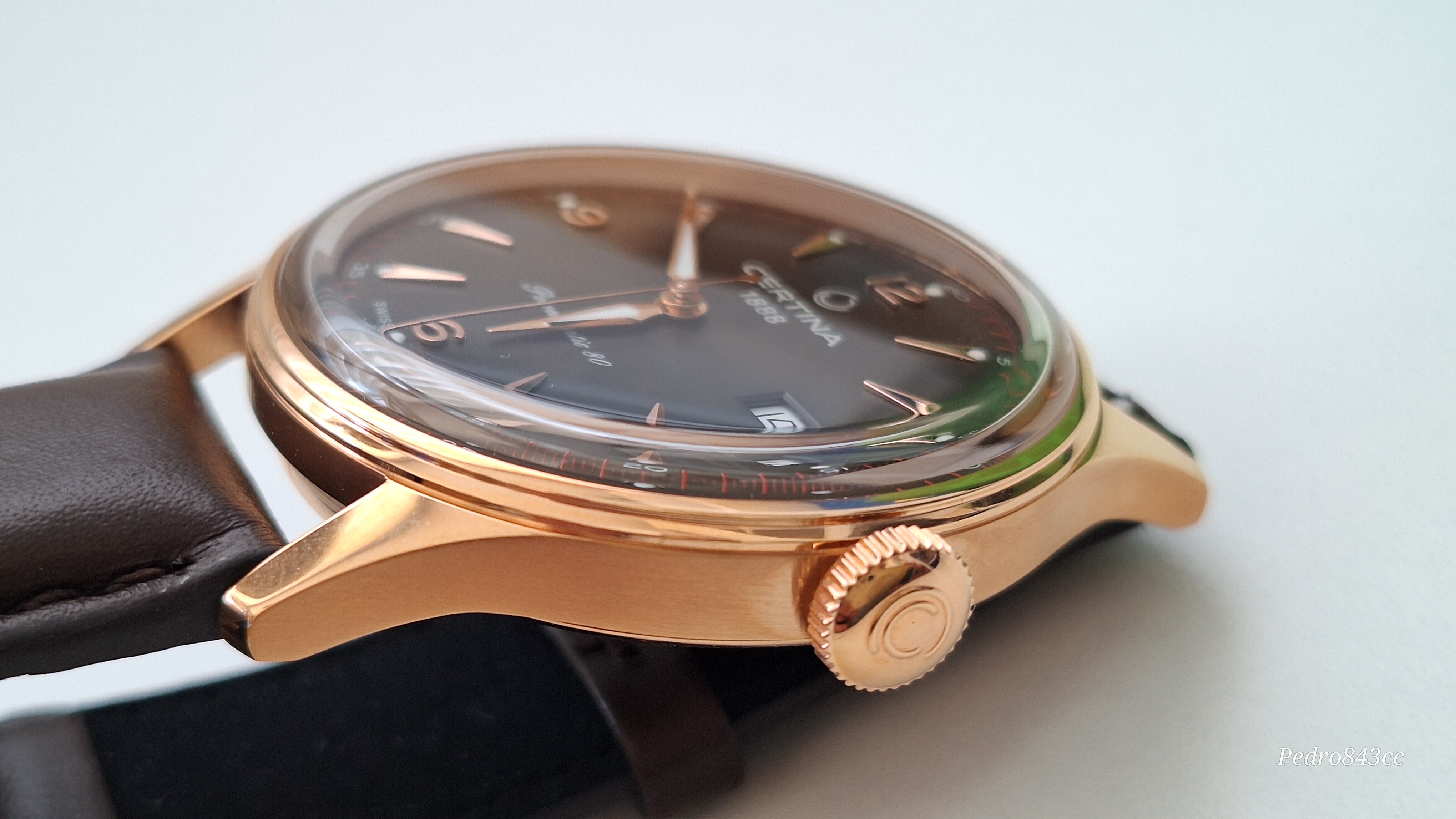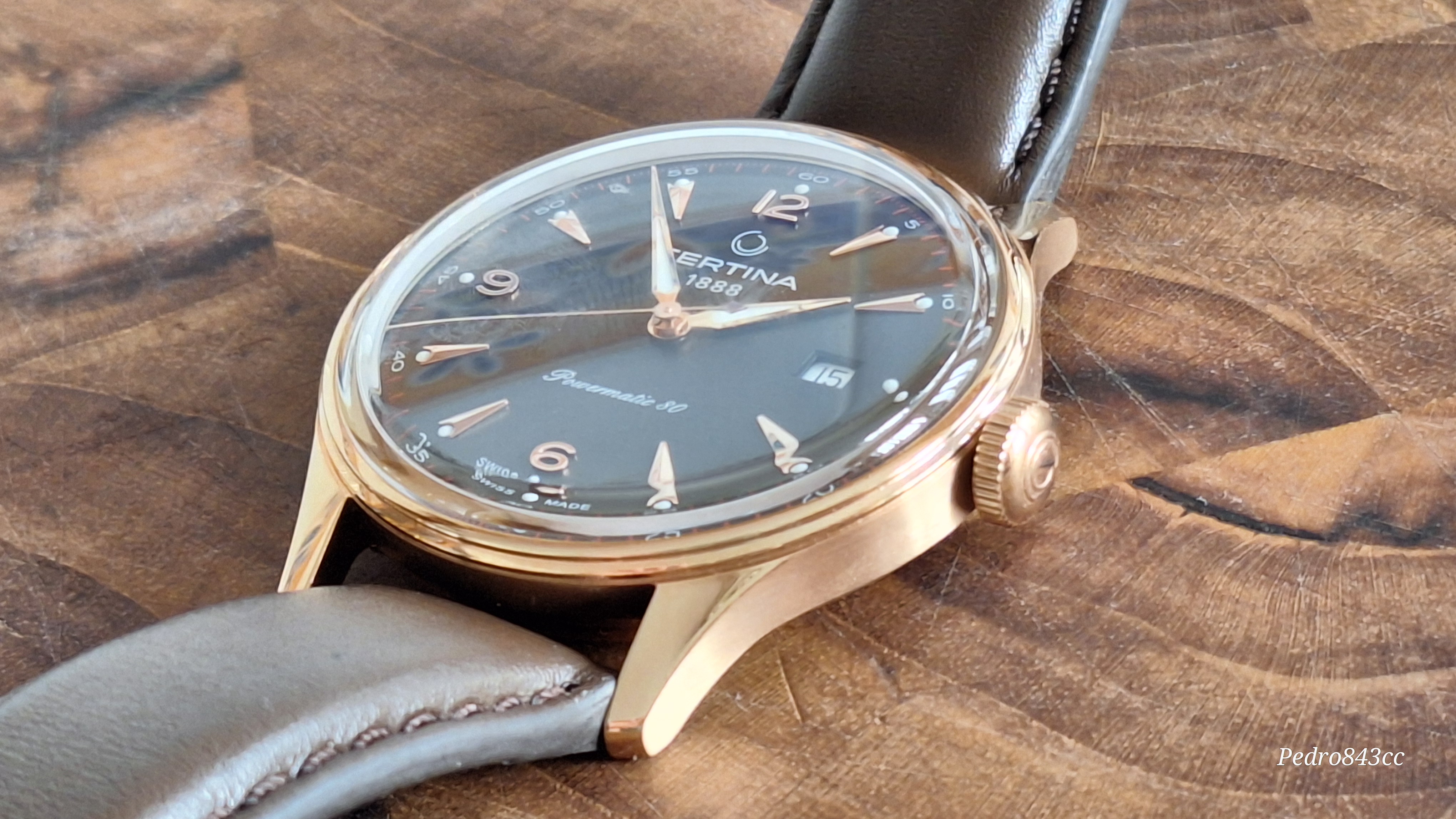 Bueno, como aperitivo puede valer, vamos a sacar al escenario a este recién llegado, el Certina Heritage Powermatic 80 en su versión en PVD oro rosa (o bronce, según se mire) y correa de piel (C038.407.36.087.00).