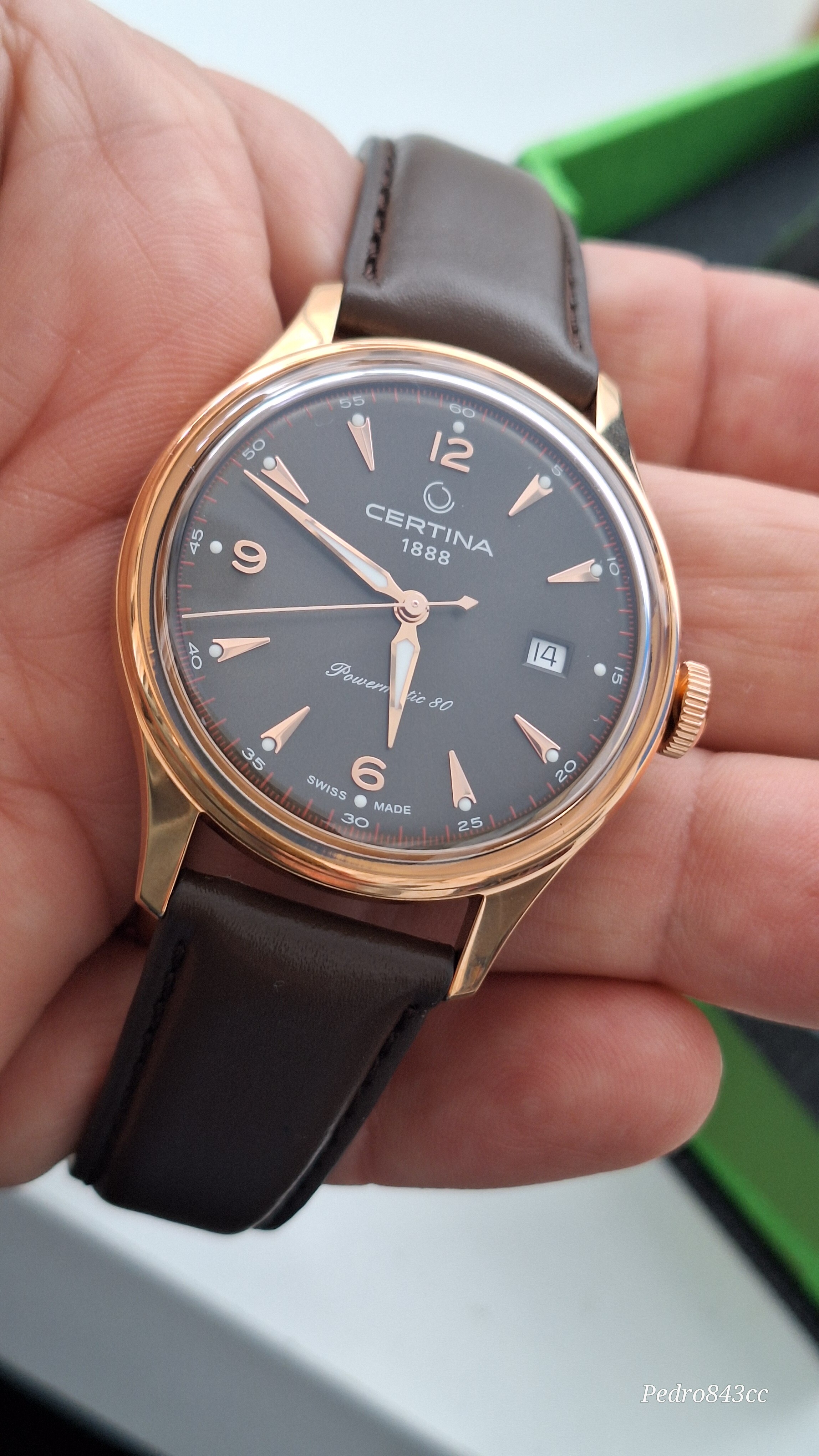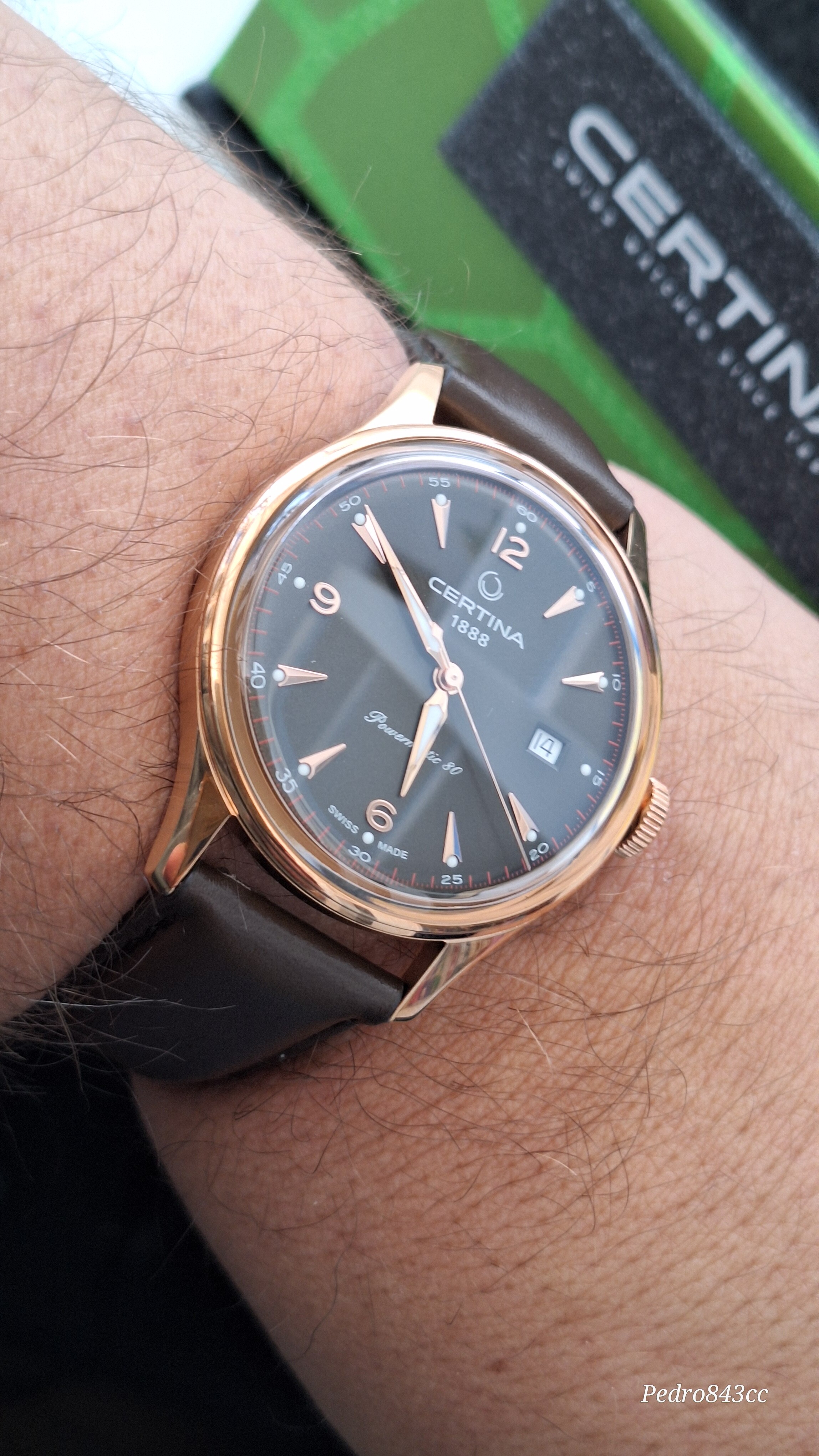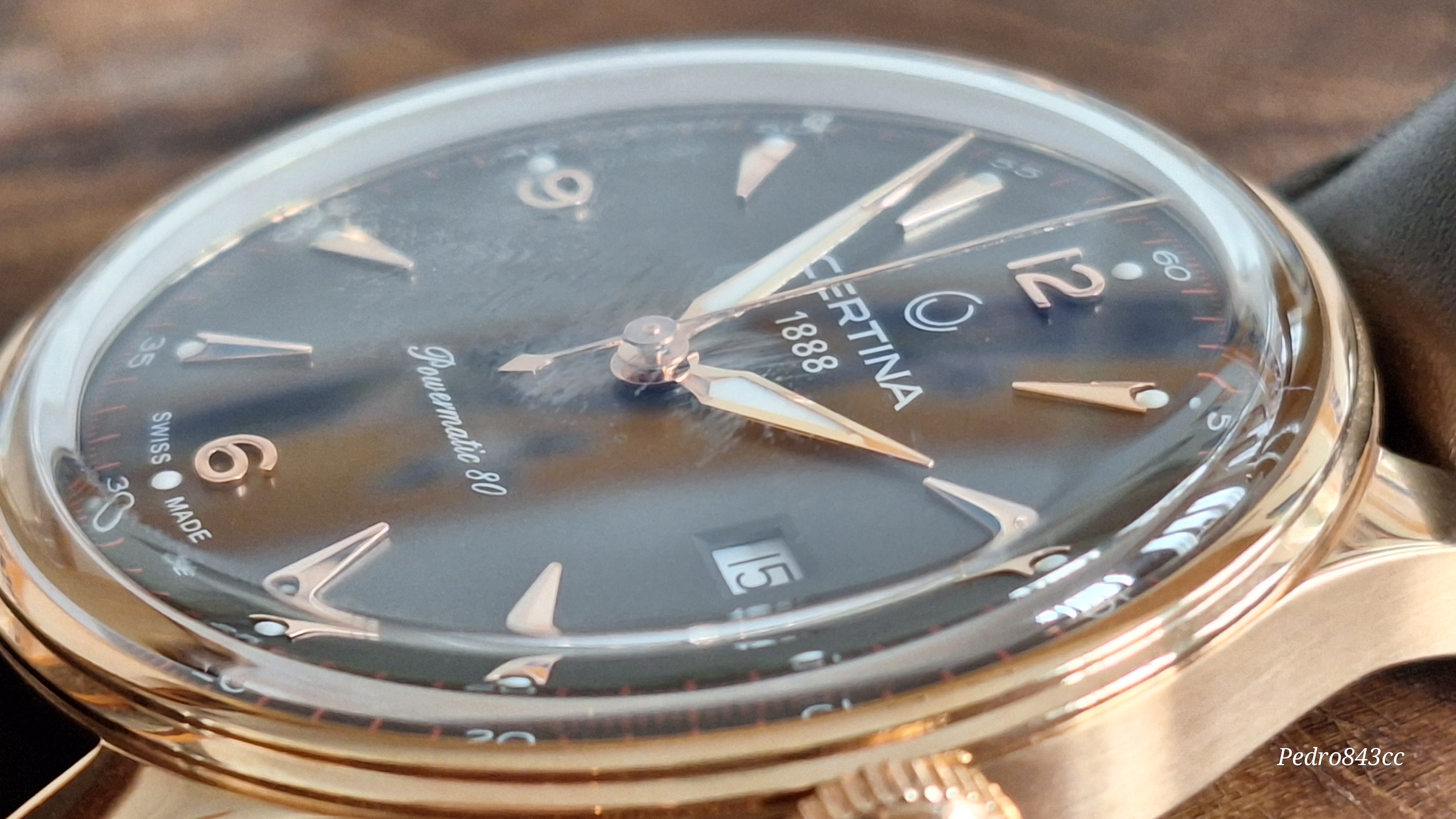 Bueno, como aperitivo puede valer, vamos a sacar al escenario a este recién llegado, el Certina Heritage Powermatic 80 en su versión en PVD oro rosa (o bronce, según se mire) y correa de piel (C038.407.36.087.00).