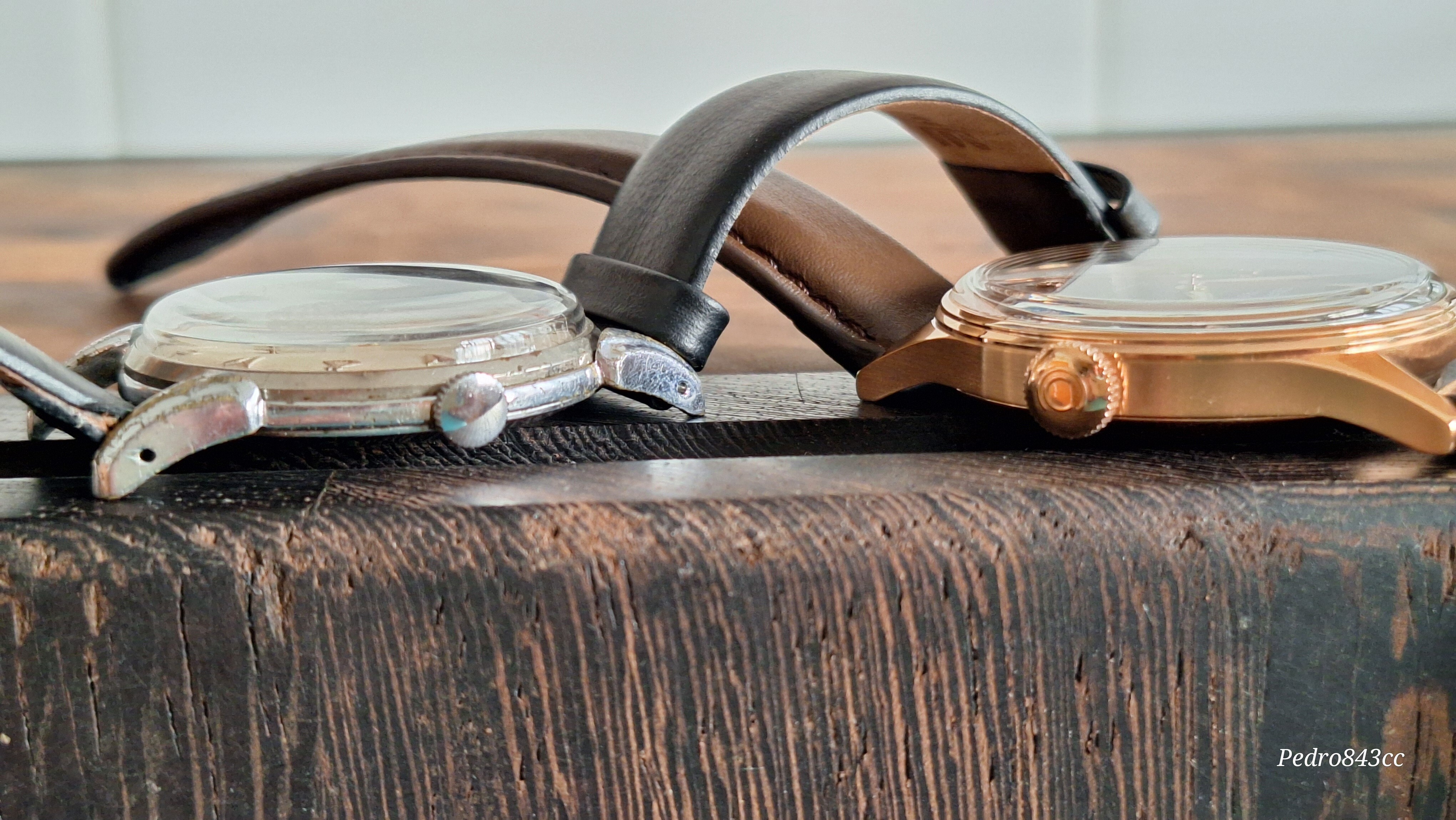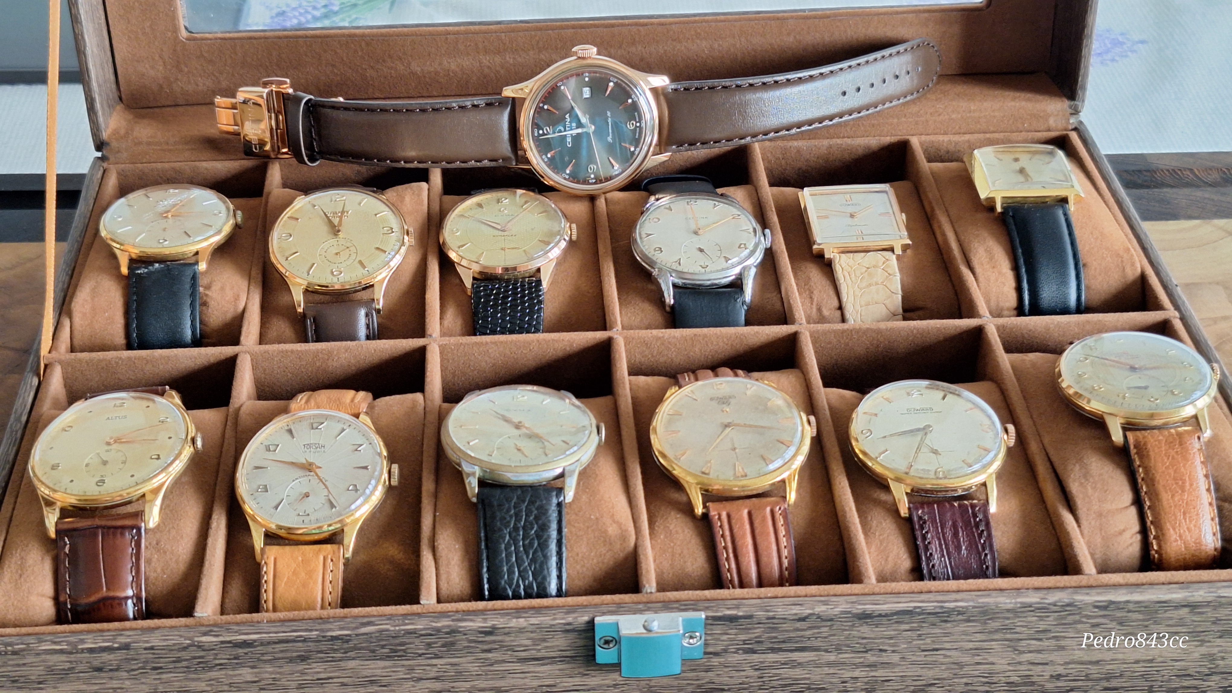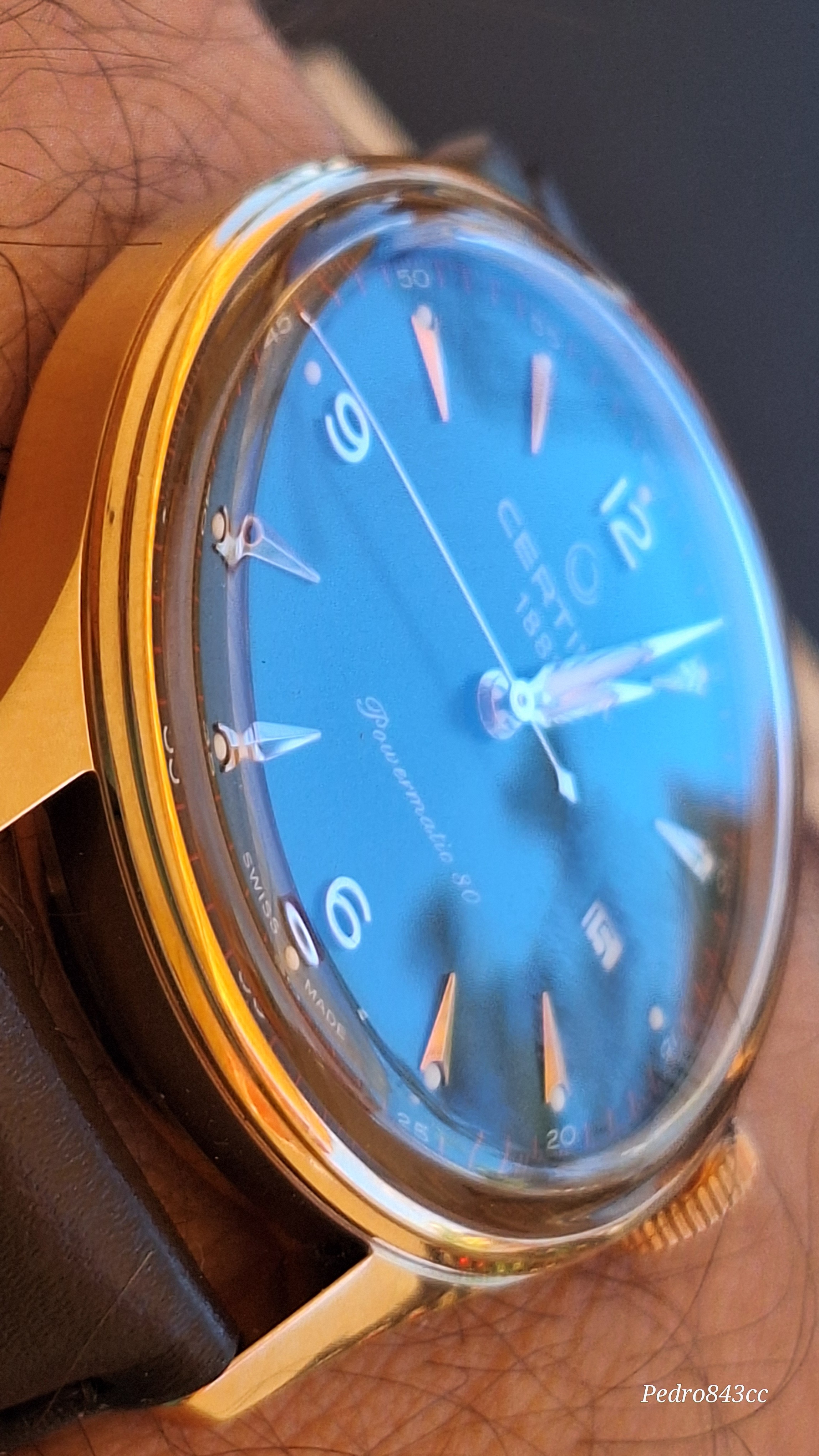 Aqui, junto a su “abuelo”, un bonito Certina de mi colección, con la particularidad del triangulo invertido en la esfera. Diferentes, pero con el mismo ADN.