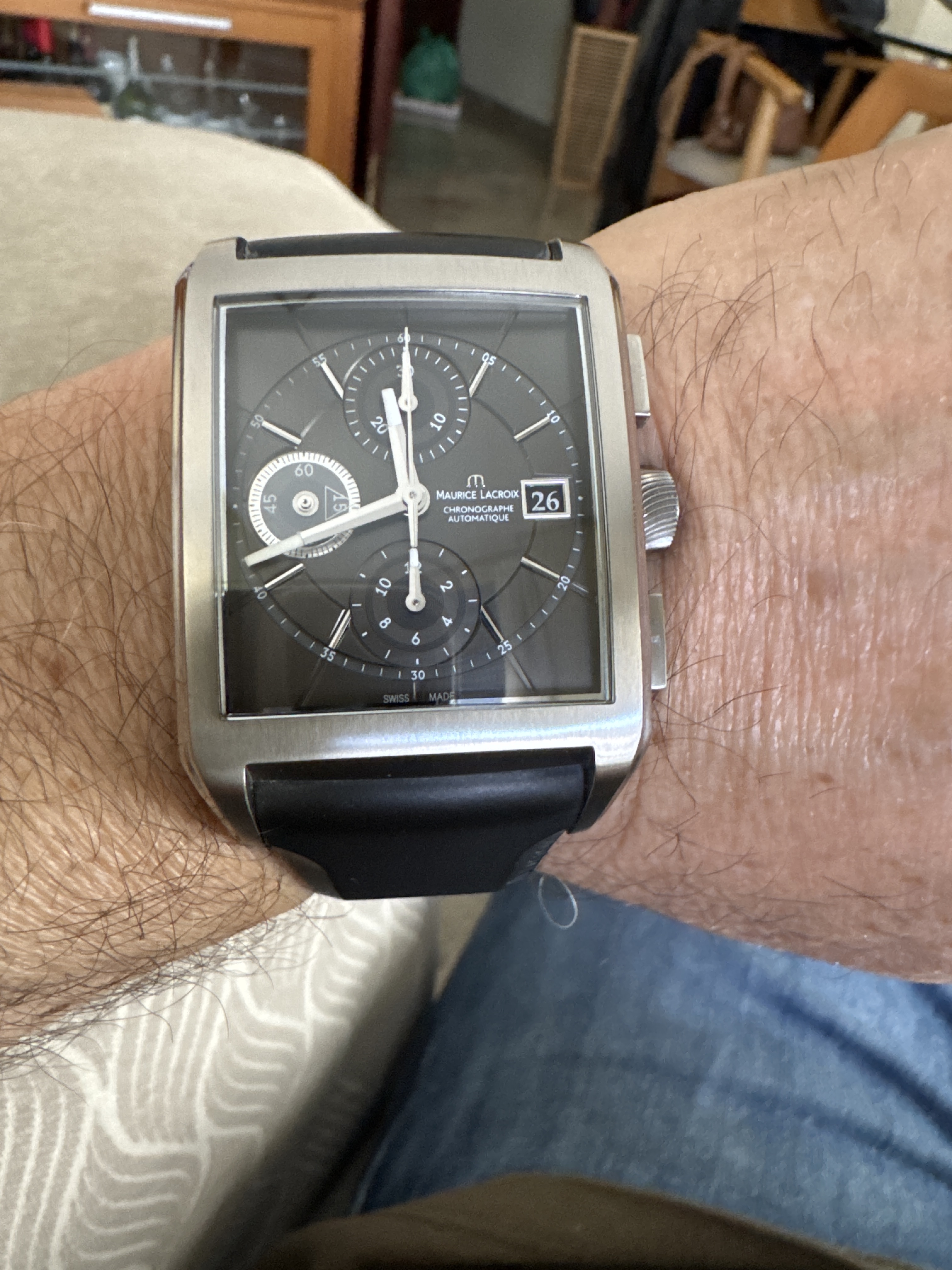 Sí que es extraña. Es el segundero y es un triángulo. Tengo otro ML de cuarzo cronógrafo en color panda. Los acabados son espectaculares, pero para cogerlos a buen precio, porque son relojes caros