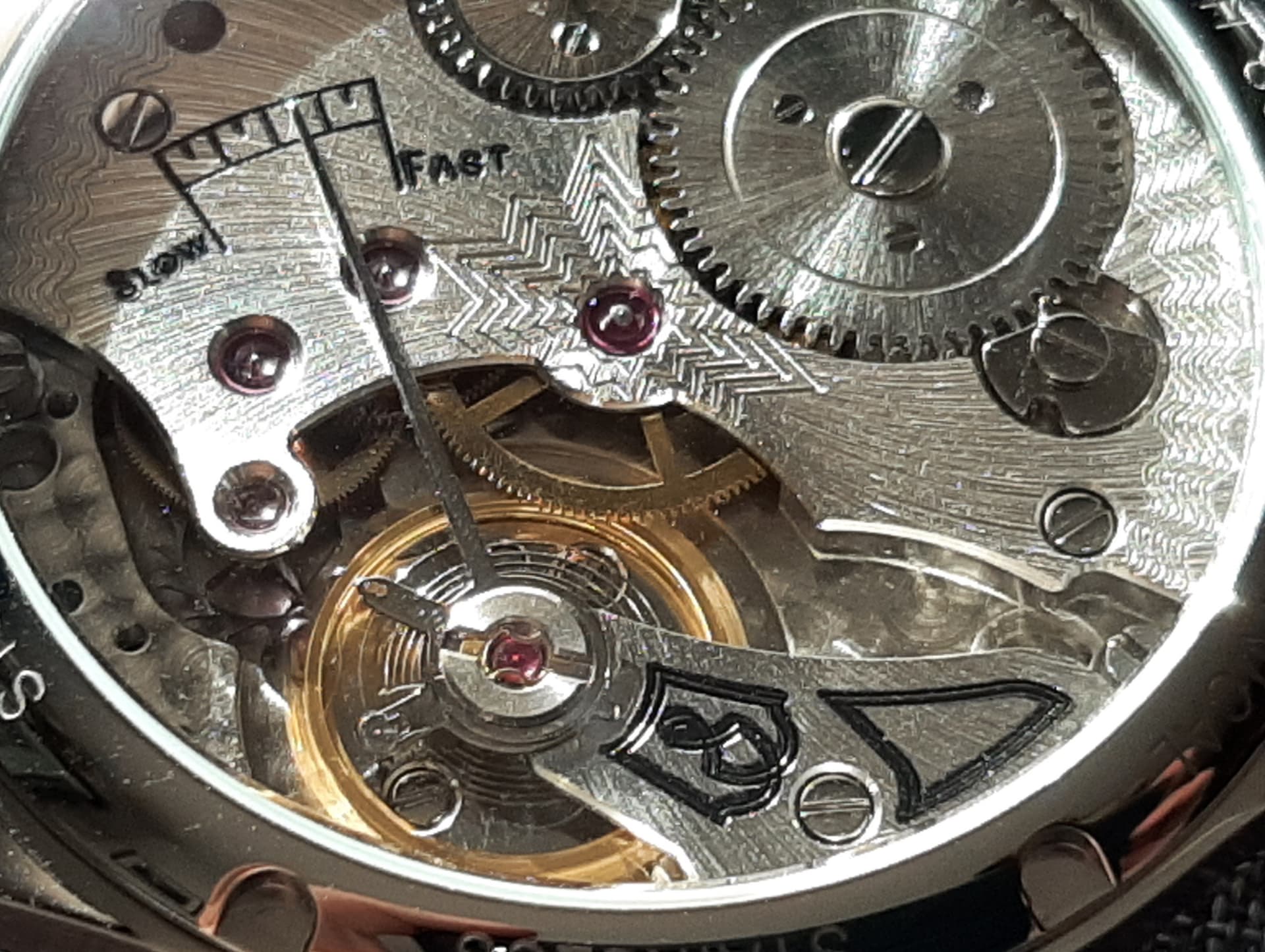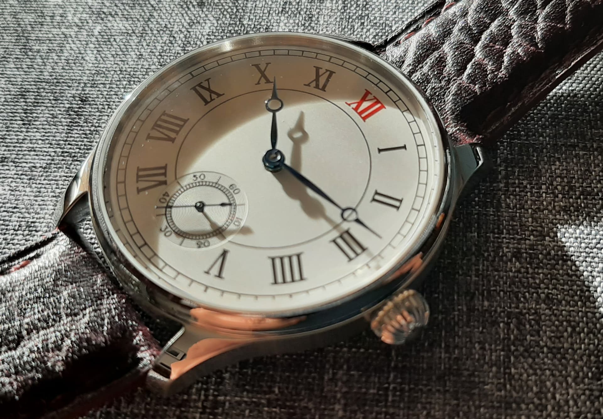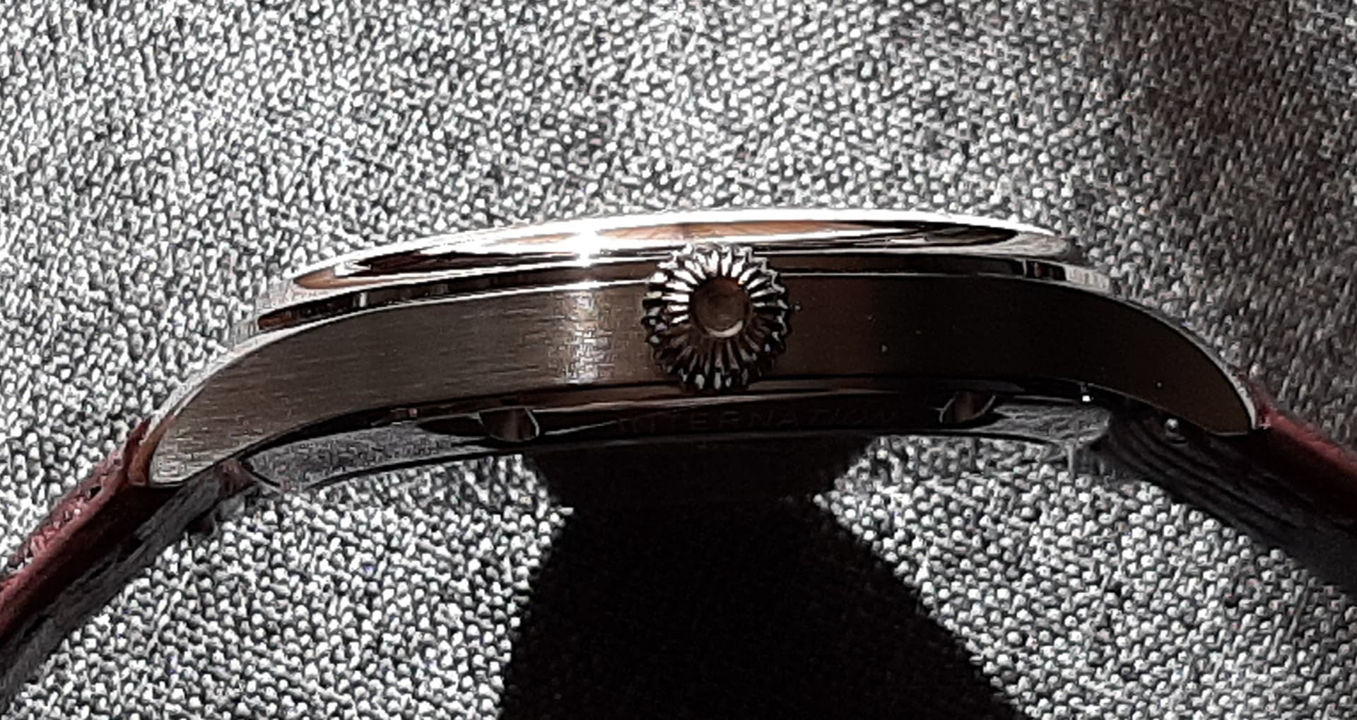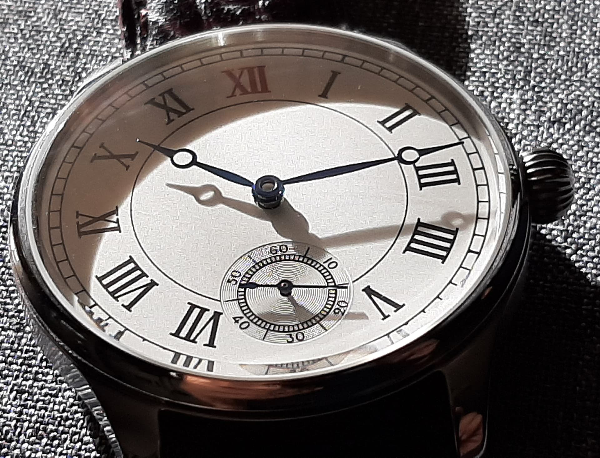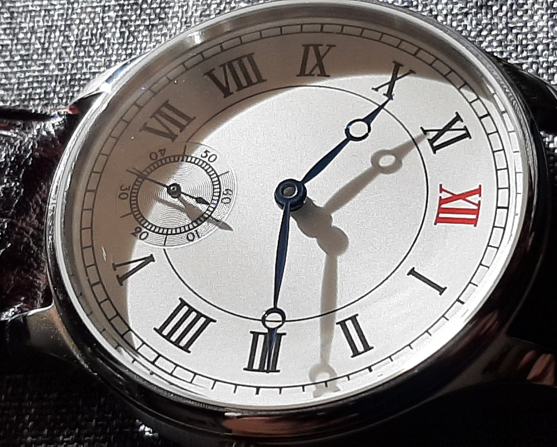 En resumen, una esfera super legible, unas saetas azuladas bien dignas (aunque no sean azuladas al fuego), una carrura sencilla y bien mecanizada, una corona discreta y cómoda, grosor el justo, un calibre bonito y fiable, zafiro al menos delante… sólo le faltaría tener números arábigos para ser perfecto, pero si queria el 12 rojo, tenia que ser XII.