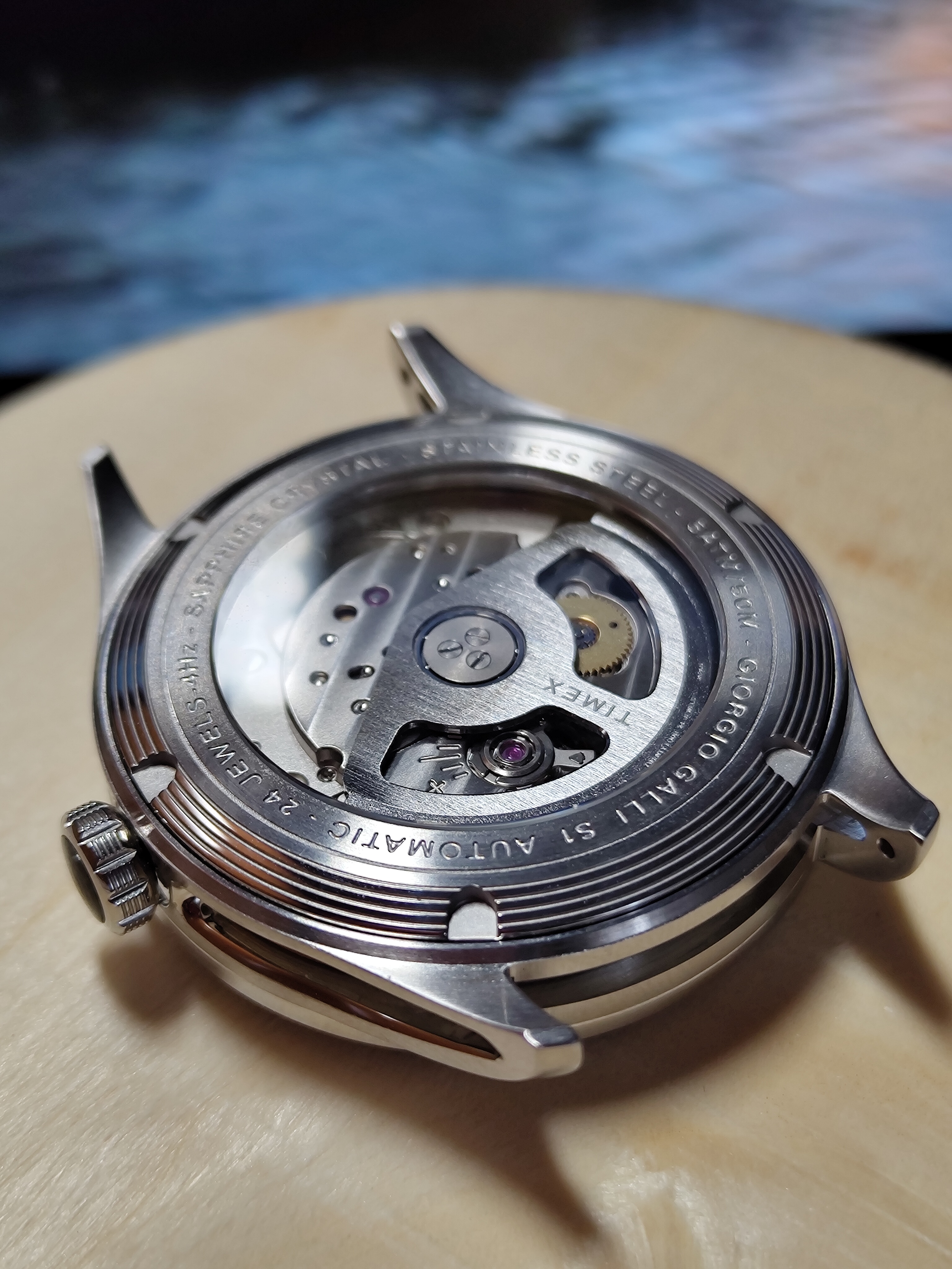 Hay uno de esos detalles que generalmente se descuidan, pero que a mí me suele indicar cuidado en un reloj, que es el tener un rotor propio. En éste caso, ese le queda increíble al Miyota 9000.
