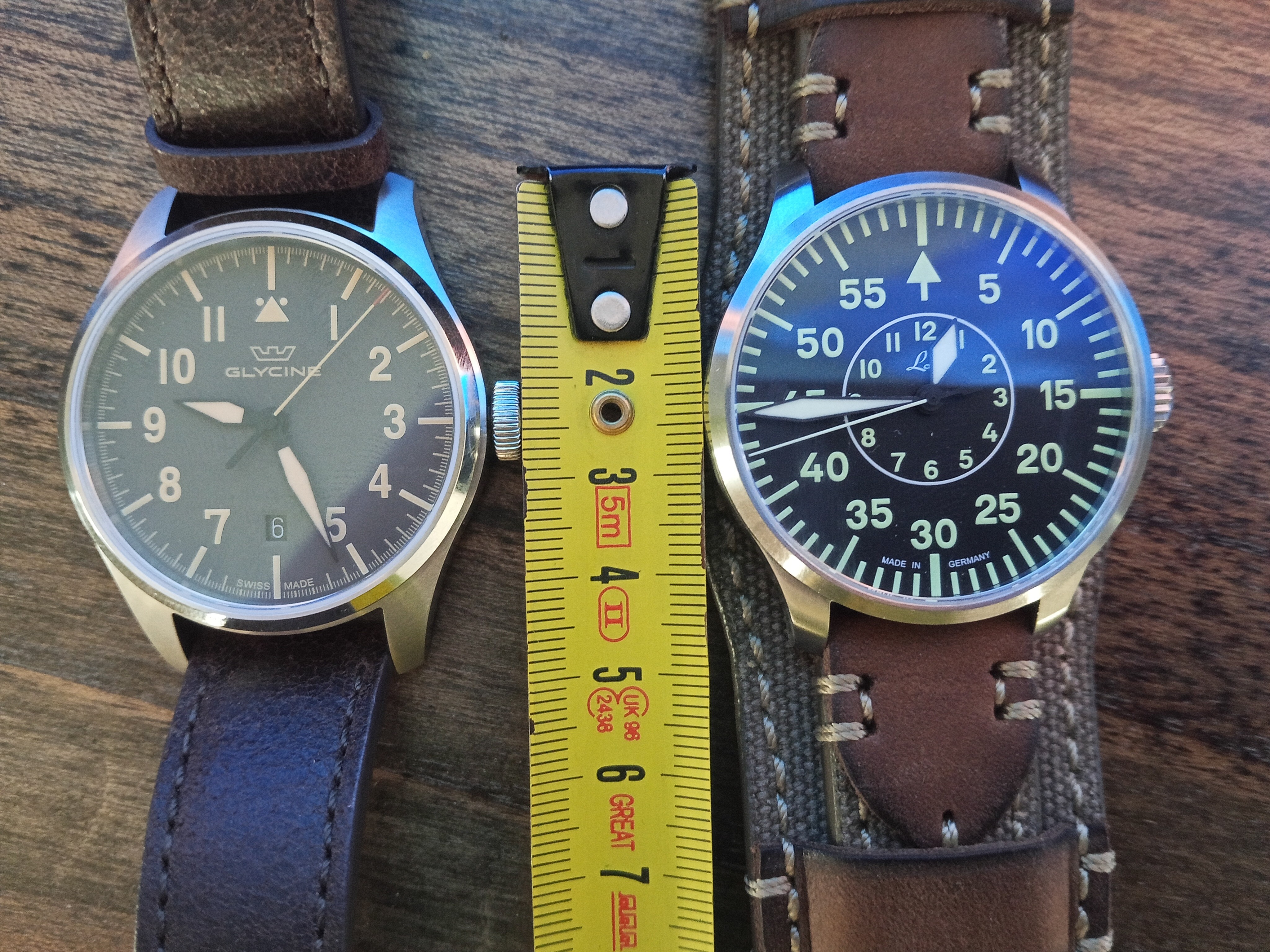 Buenas compañero pues justo estoy mirando los mismos modelos que tú, este glycine y el Laco, del mismo modo tengo el laco tipo B, jajajajja me podrías decir cuál es el lug to lug de ese glycine? Gracias y un saludo