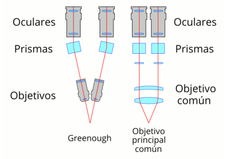 Para solucionarlo, esta vez, si, tenemos que ir a un microscopio binocular y estereoscópico. En este tipo de microscopios, disponemos de dos oculares y dos objetivos, por lo que en este caso sí vamos a conseguir la visión tridimensional.
