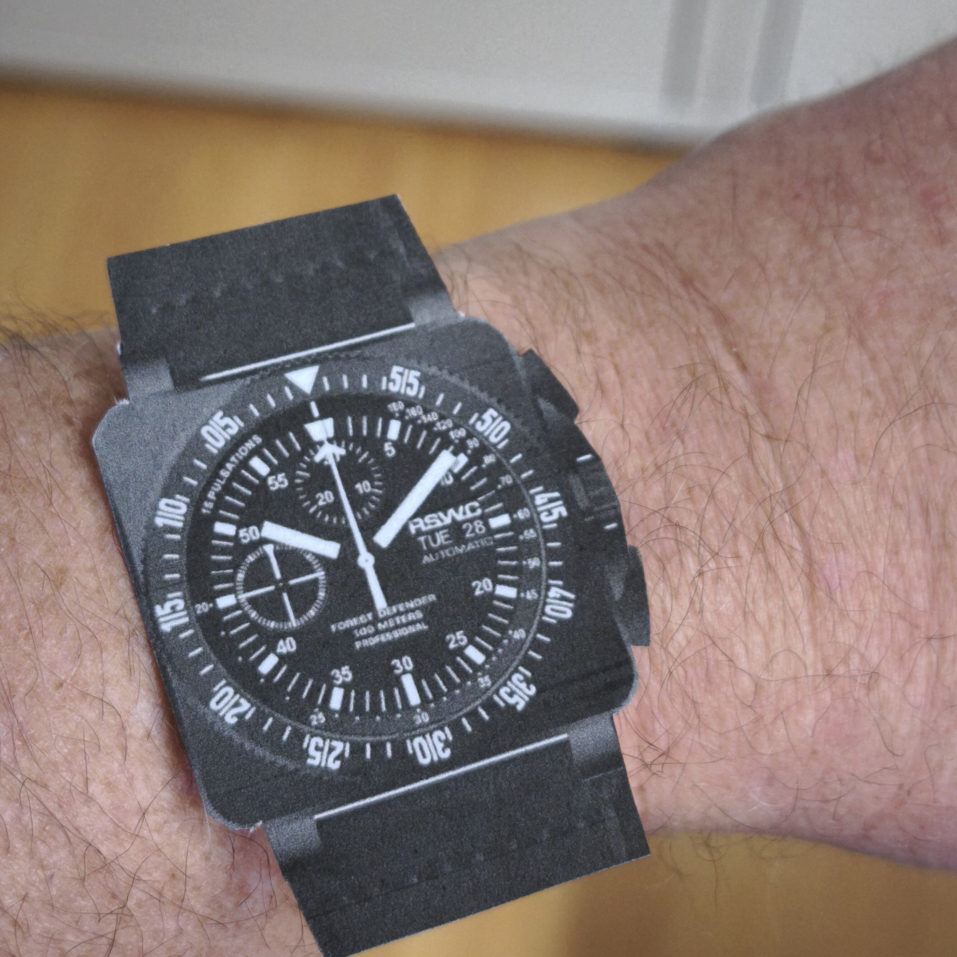 I wasn’t sure about the size of the watch. Finally I made a real size printout to see it on my 19 cm wrist. Please sign me up for a Forest Defender Professional.