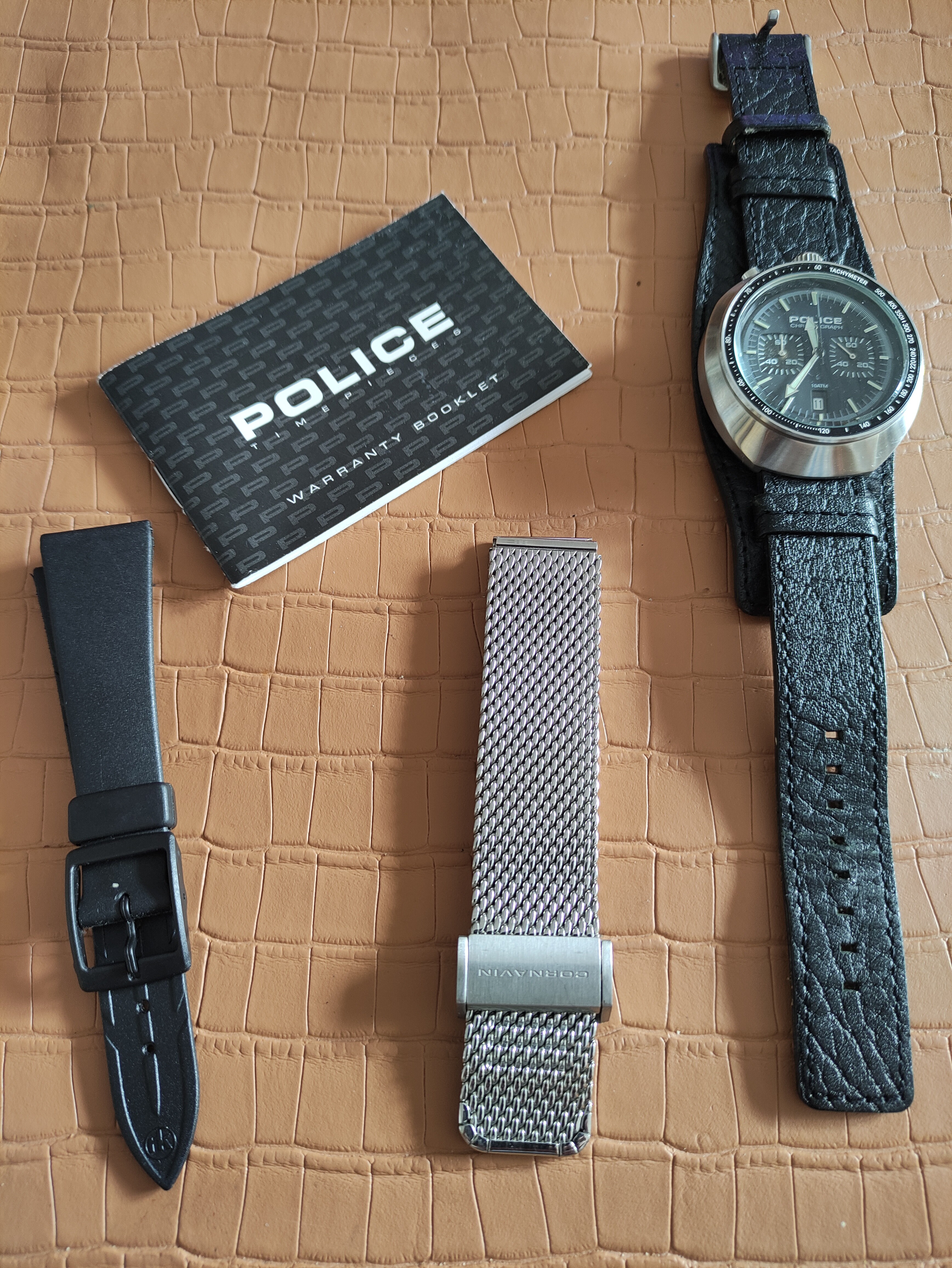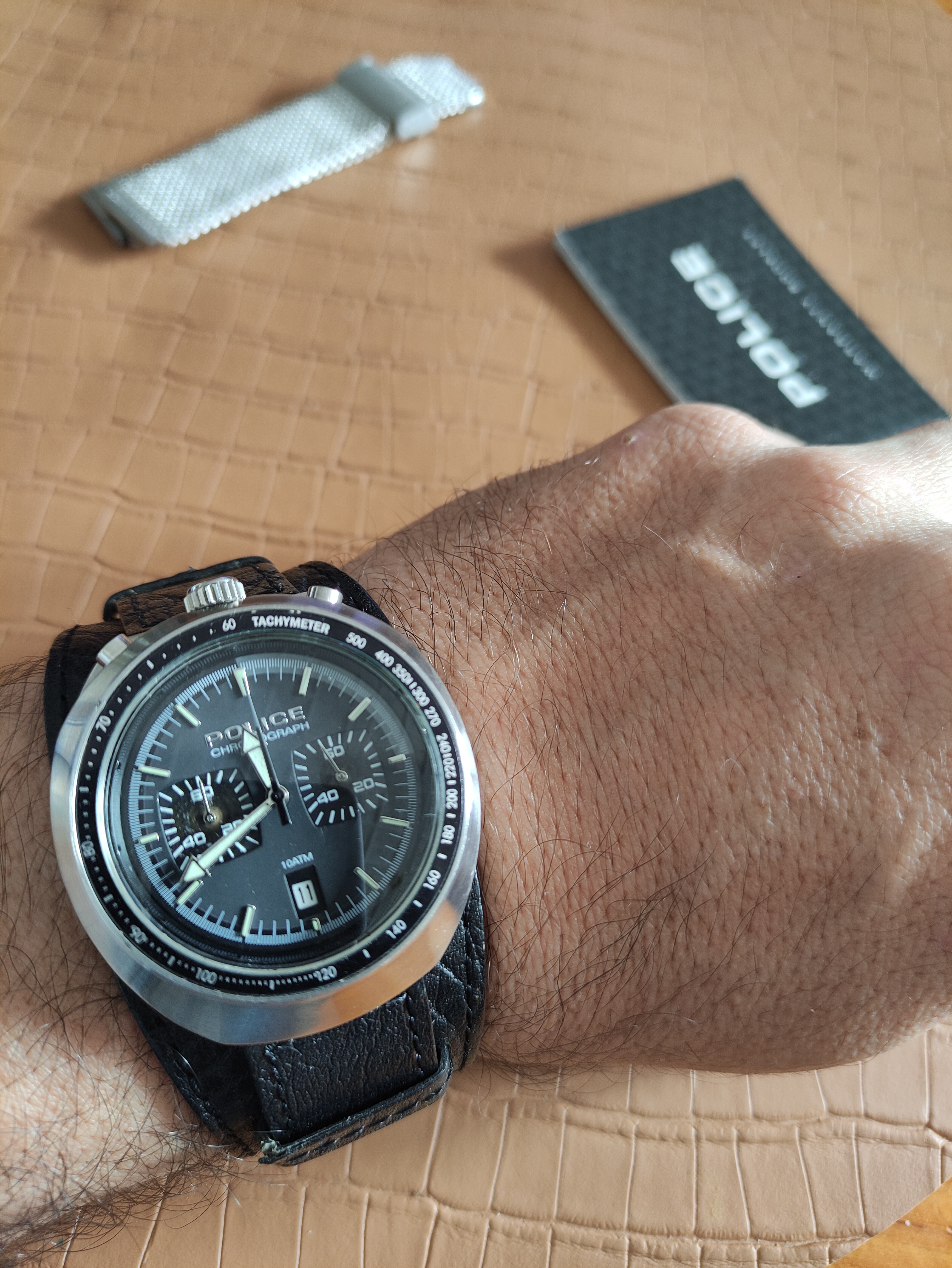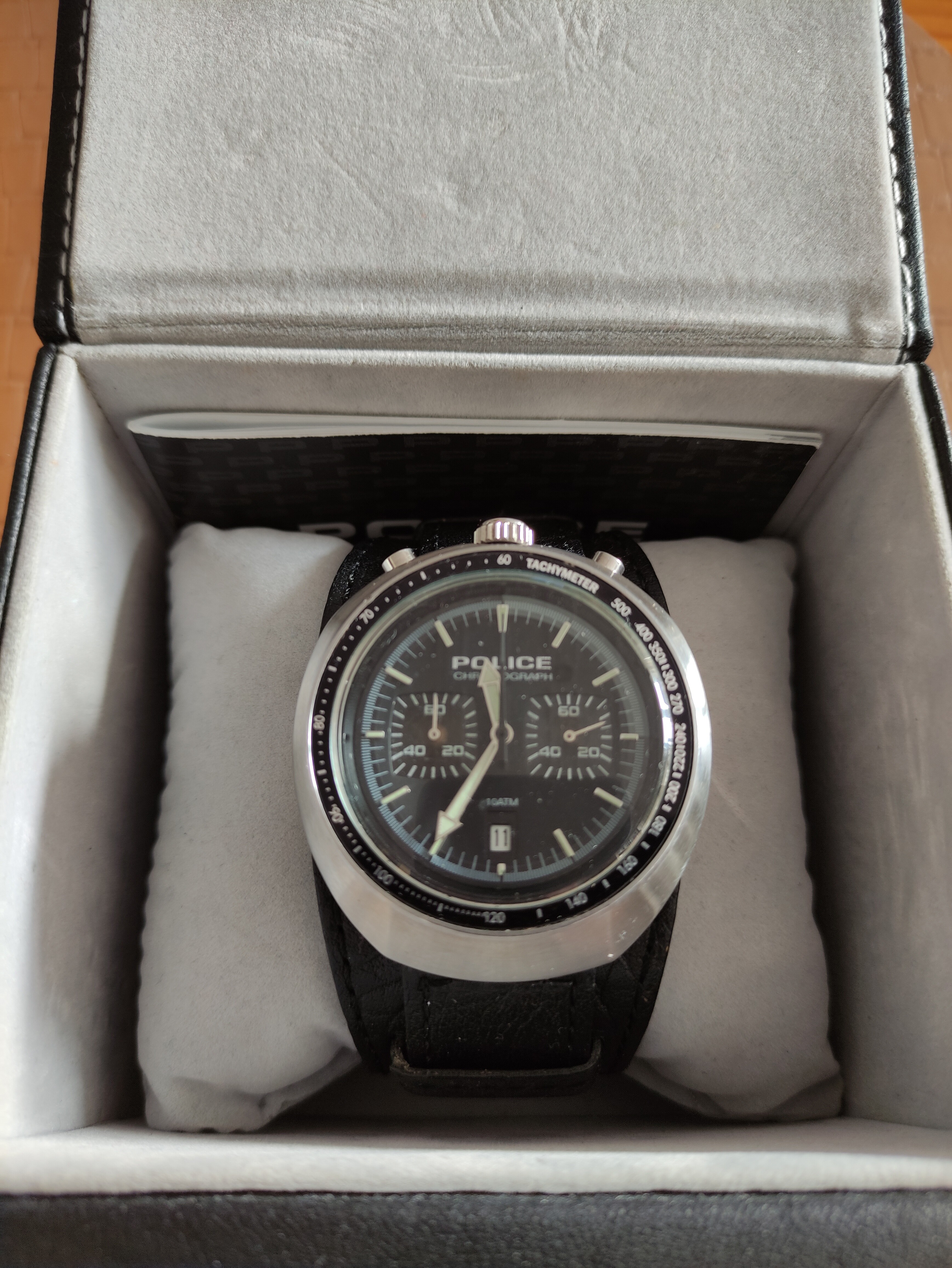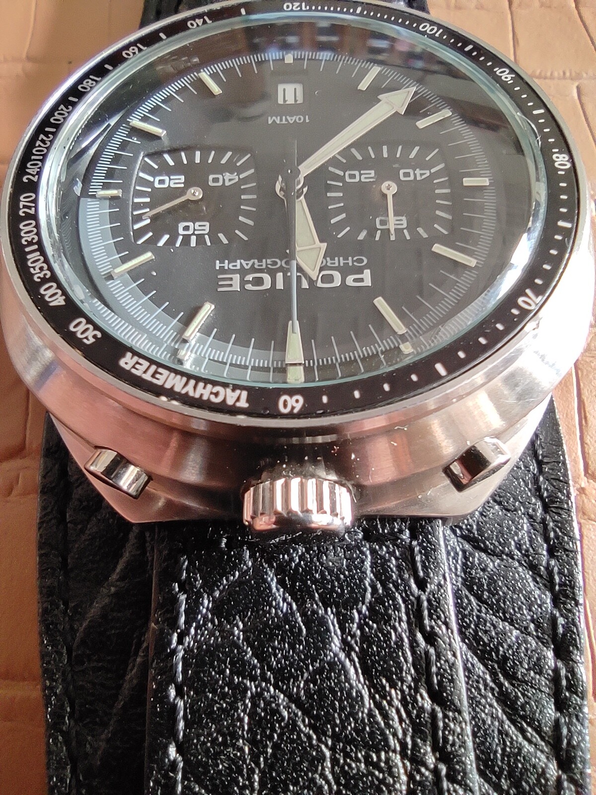 Se trata de un Police ( vaya nombrecito ) ,cronógrafo de cuarzo ,con un dial muy bonito y estética vintage ( lástima del logo de la marca )