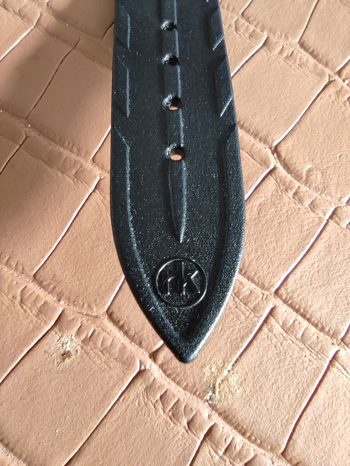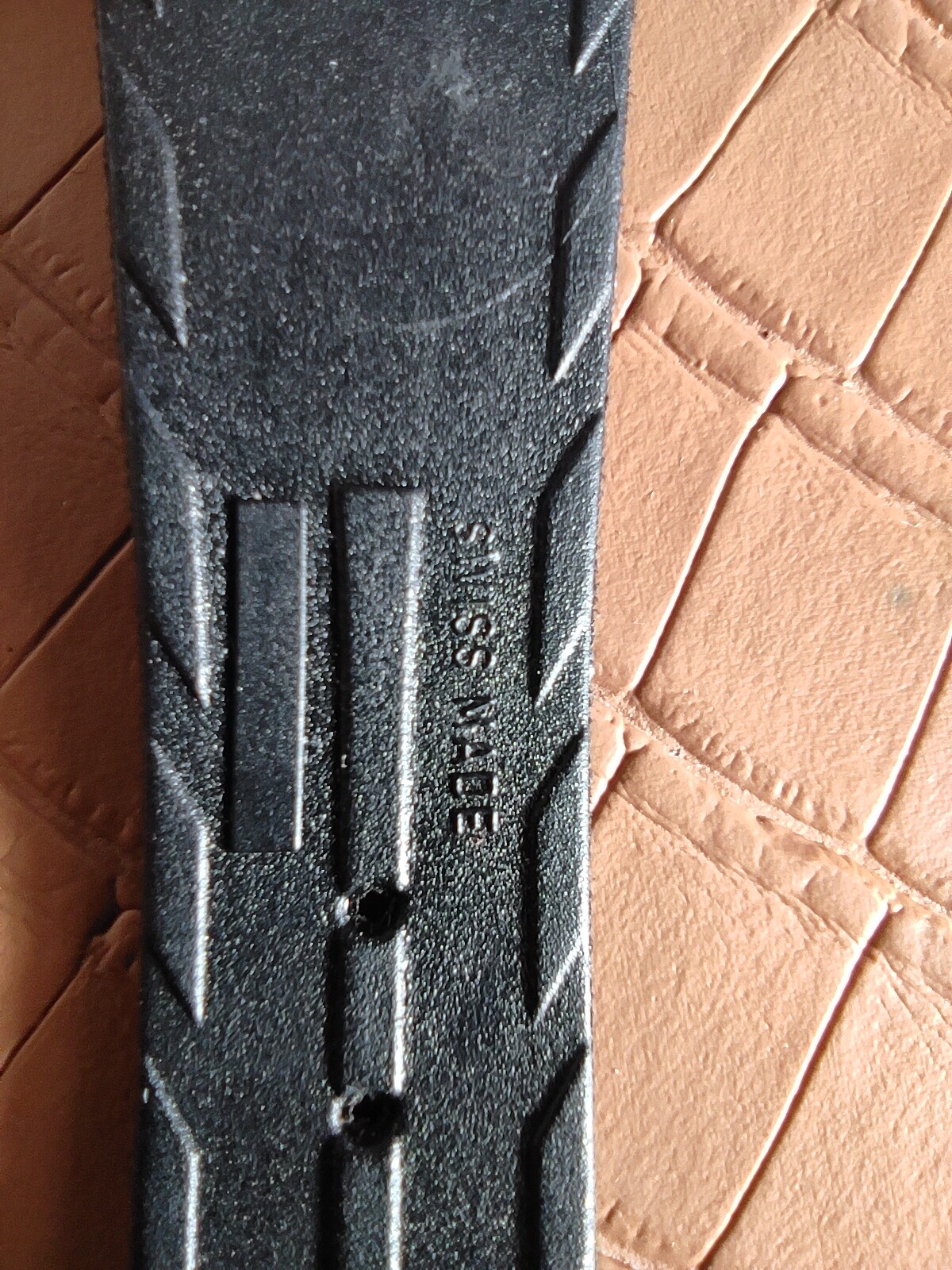 El reloj venía con la correa finita puesta pero con la parte de la bund ,he buscado en internet y la correa de caucho que es de 20 a 16 mm por lo que se ve es de una empresa de suiza y la he visto de segunda mano a unos 45 o 50 euros :