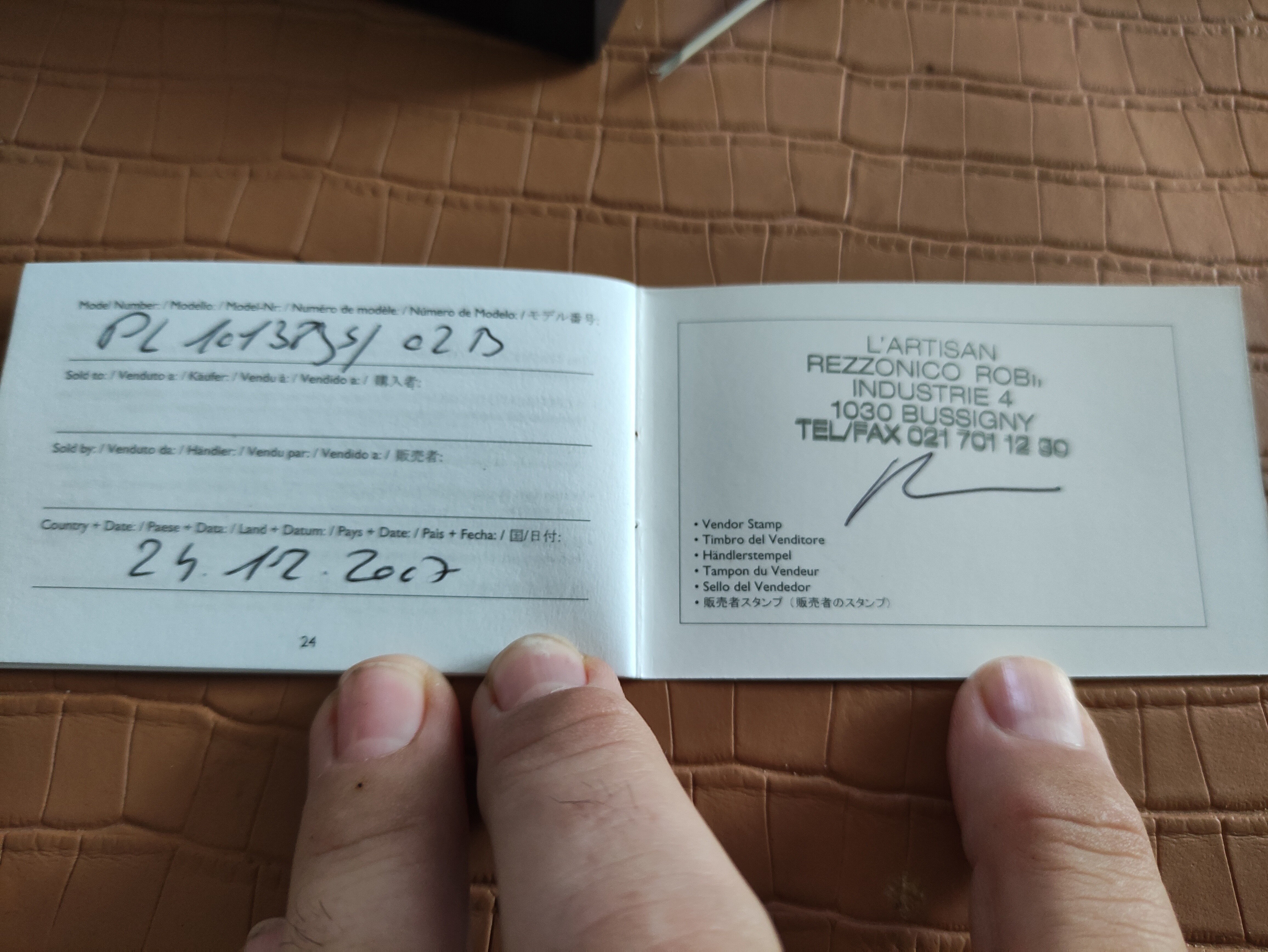 También llevaba toda su dotación ,caja ,almohadilla y papeles ,que según veo en los papeles se compró en 2007 en suiza ( me dio por buscar la joyería y parece que paso a mejor vida ).