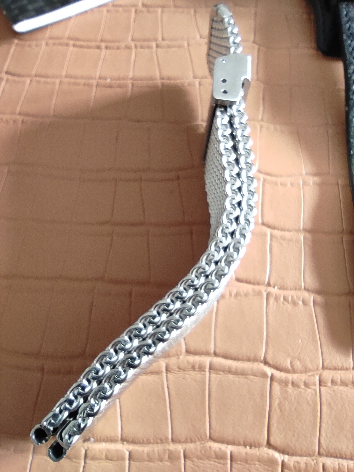La milanesa es gorsisima ,y por la marca ,creo que es de una marca de relojes suizos también ,pero no sé nada más ,tiene bastante calidad al tacto ,o al menos así lo siento al compararlas con las de AliExpress finitas :