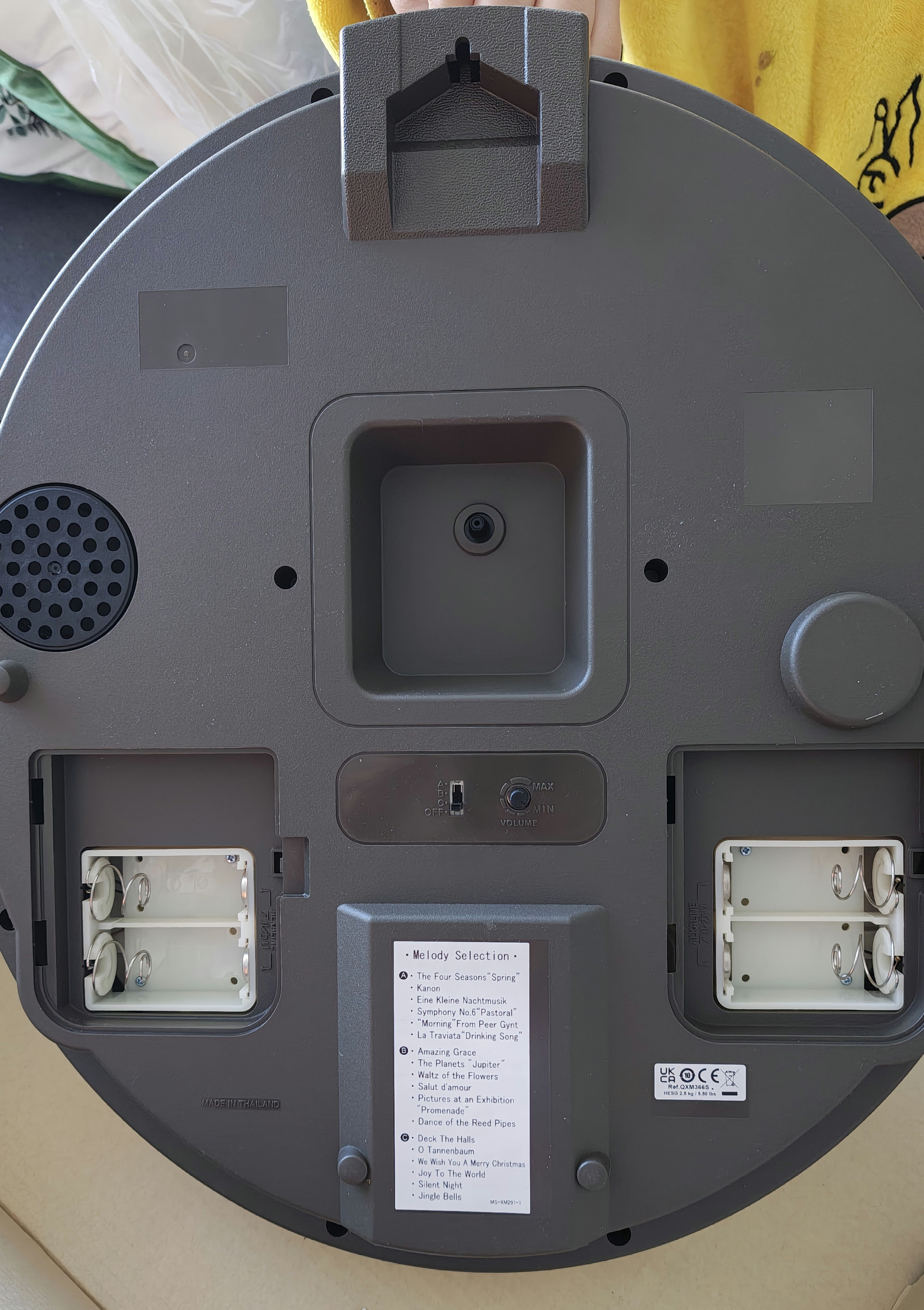 A cada hora suena una melodía y cuenta con un sensor de luz que evita que el reloj suene por la noche.