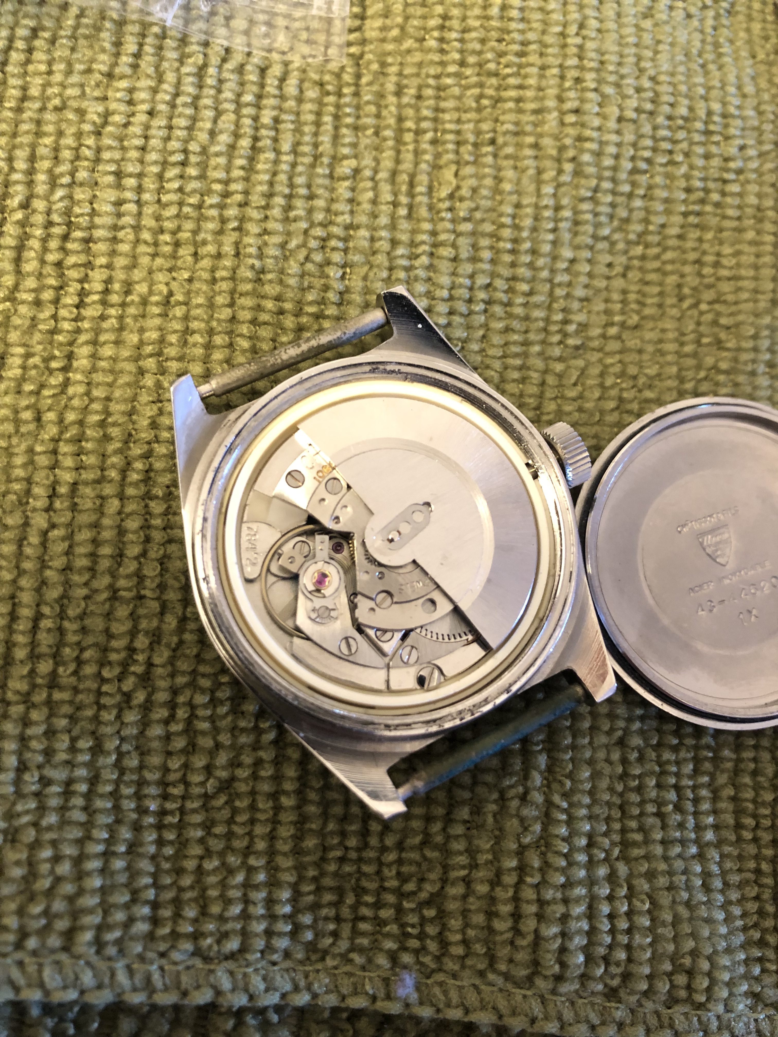 El cristal está impecable, la corona es original, marcha bastante bien y lo unico es que (cosa frecuente en estos calibres) el pase rápido de fecha no funciona, pero vaya, peccata minuta ante esta belleza.
