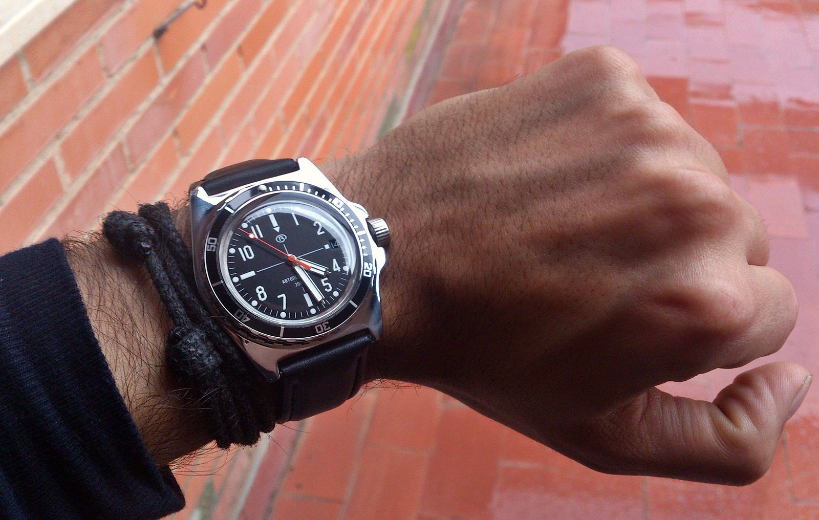 El reloj en lineas generales se le ve bastante bien…viene presentado en una caja alargada de cartón bastante escueta…el reloj da la sensación ( y está, vamos) mejor terminado que los clásicos amphibias de toda la vida…tanto el diseño del dial como el tipo de agujas paddle, y sumándole el bisel de acero y esa forma tan peculiar de caja, hacen del reloj un diver muy atractivo…me gusta mucho el detalle del datario a las tres, que viene en color negro y que se camufla y se integra perfectamente dentro del dial :grimace: