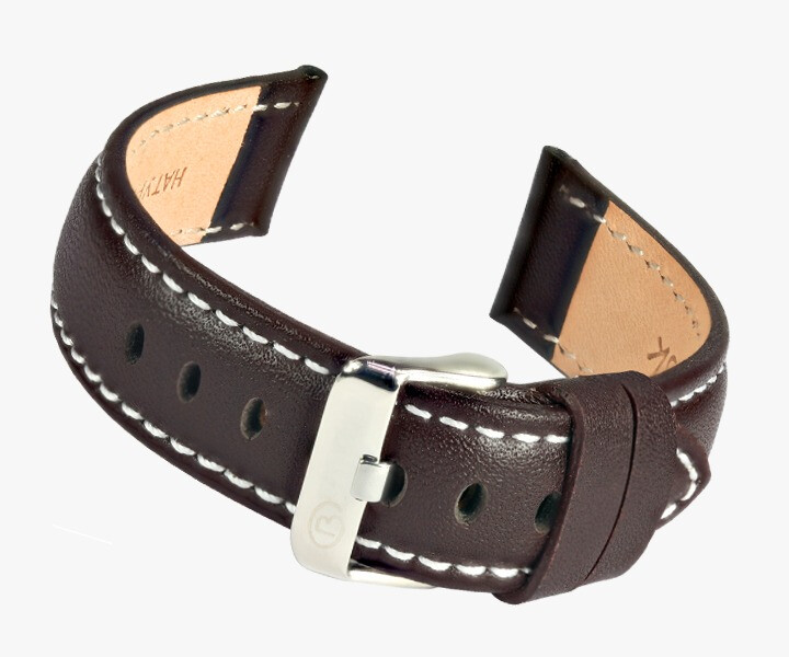 Intenta con una correa negra normal para darle aspecto vintage o con una milanesa a ver como va. La que lleva creo que no le pega.