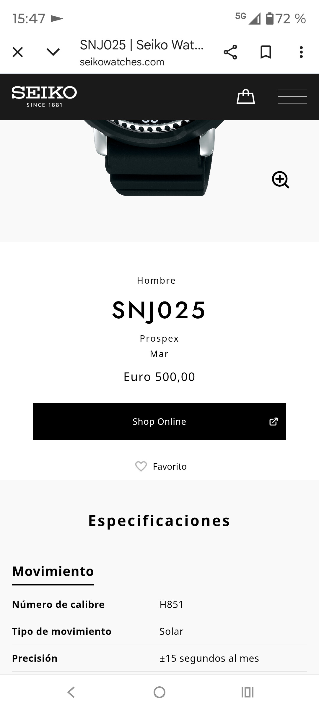 Tal cual, además que desde la relojería me han remitido el correo de respuesta desde el SAT, así que nada… me jode porque aunque es mismo reloj, me pare mucho más bonito en negro completo, pero bueno