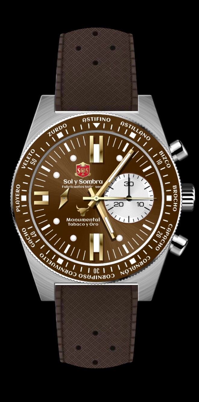 En el Tabaco y Oro hemos trabajado también arduamente. Reloj y correa han sido modificados para alejarnos de aquellos tonos anaranjados poco realistas y acercarnos al traje de luces color tabaco.