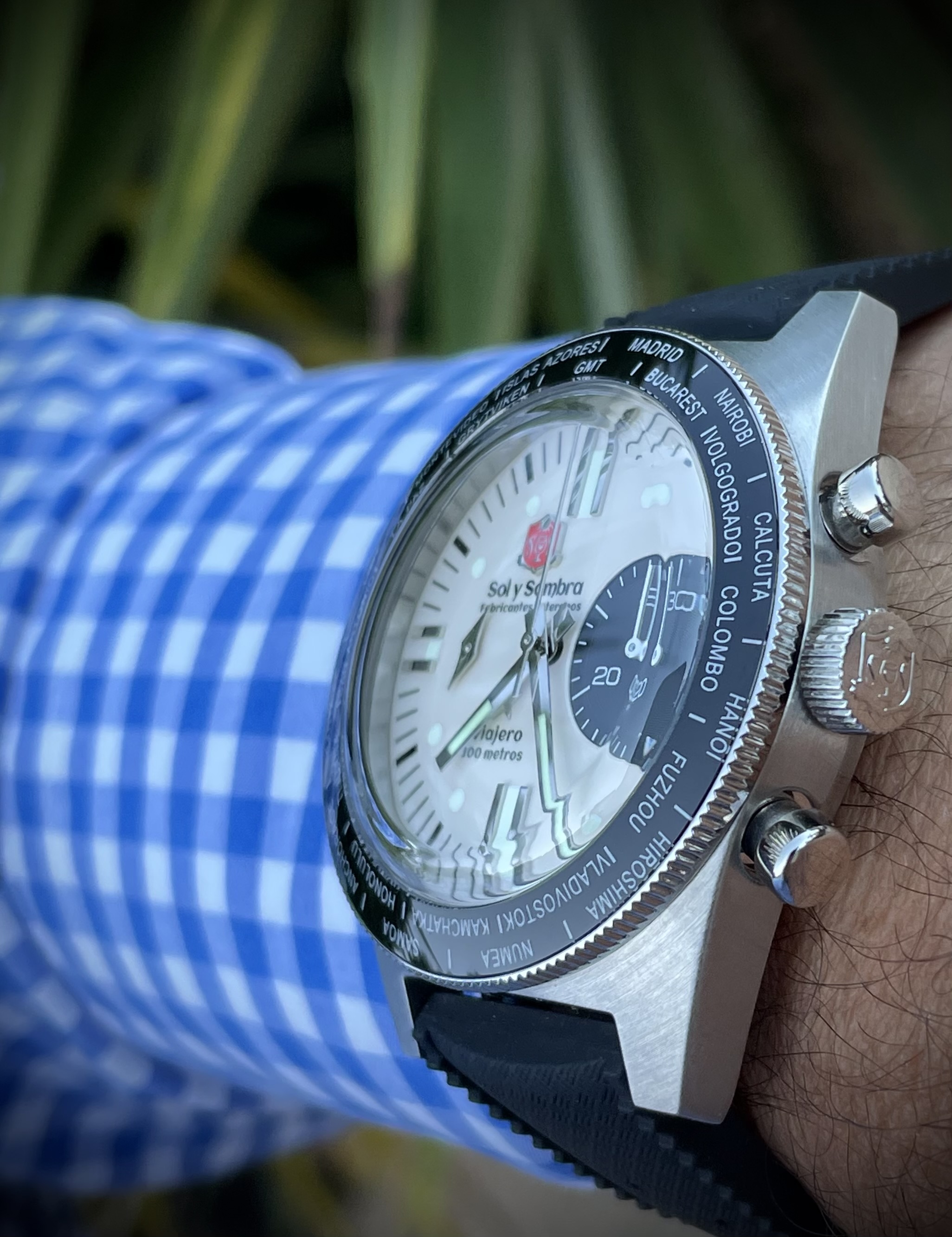 Saludos a todos. Os mostramos fotografías de los primeros samples del Sol y Sombra Inmortal Cronógrafo Reserva Especial, en este caso el modelo es el Moderno. Recordamos que son muestras en bruto, siempre susceptibles de posibles mejoras. No pretende ser una presentación, tan sólo una muestra de cómo está avanzado el trabajo. Sin entrar en valoraciones, os podemos decir, que es de tal belleza que las fotos no le hacen justicia.
