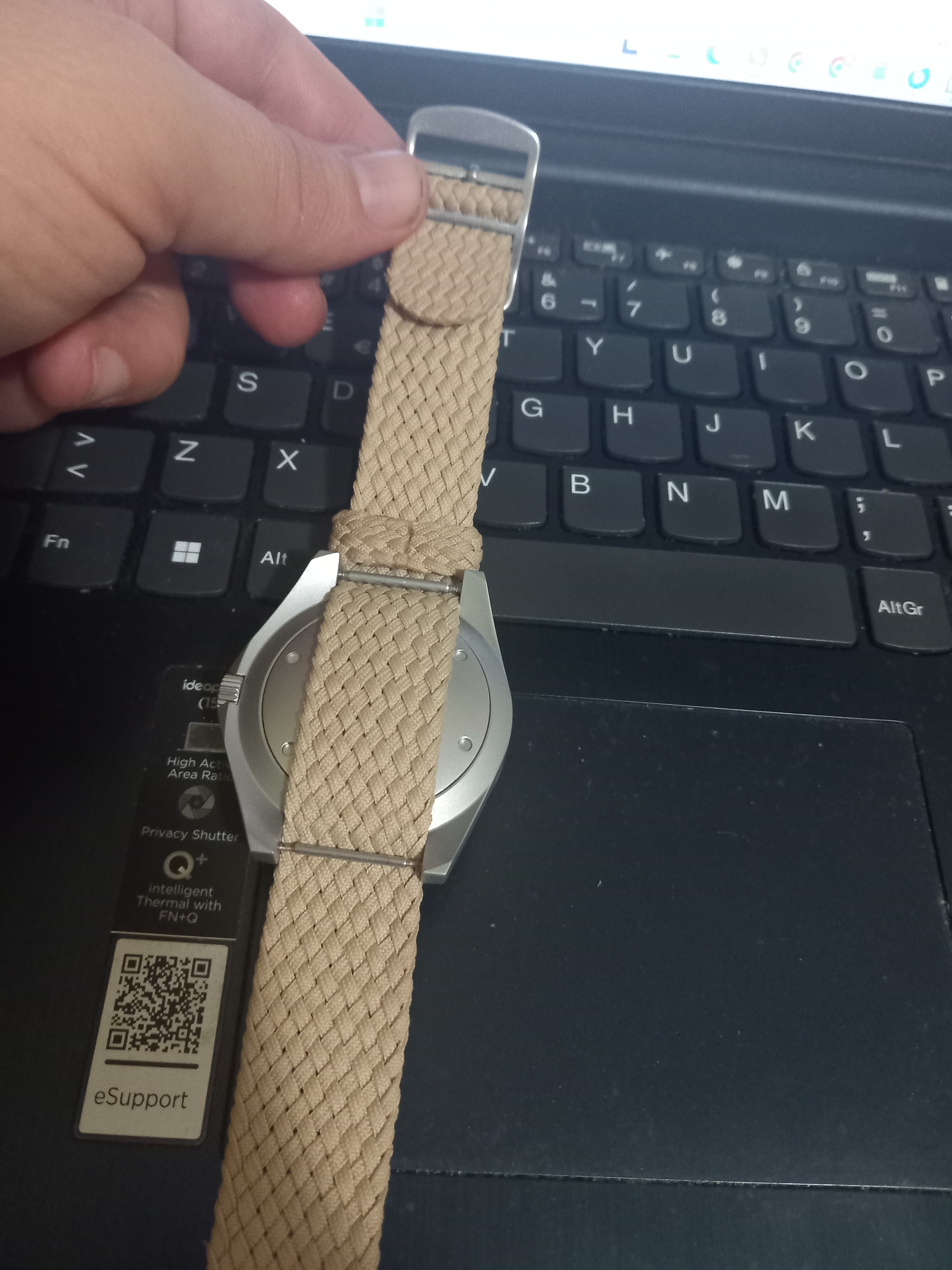 En cinturones me dio por probar una vez con uno trenzado elástico y no he vuelto a usar otra cosa porque son comodísimos. No se me habría pasado por la cabeza que hubiese este tipo de materiales en correas de relojes hasta que estos días los he visto con los UME.