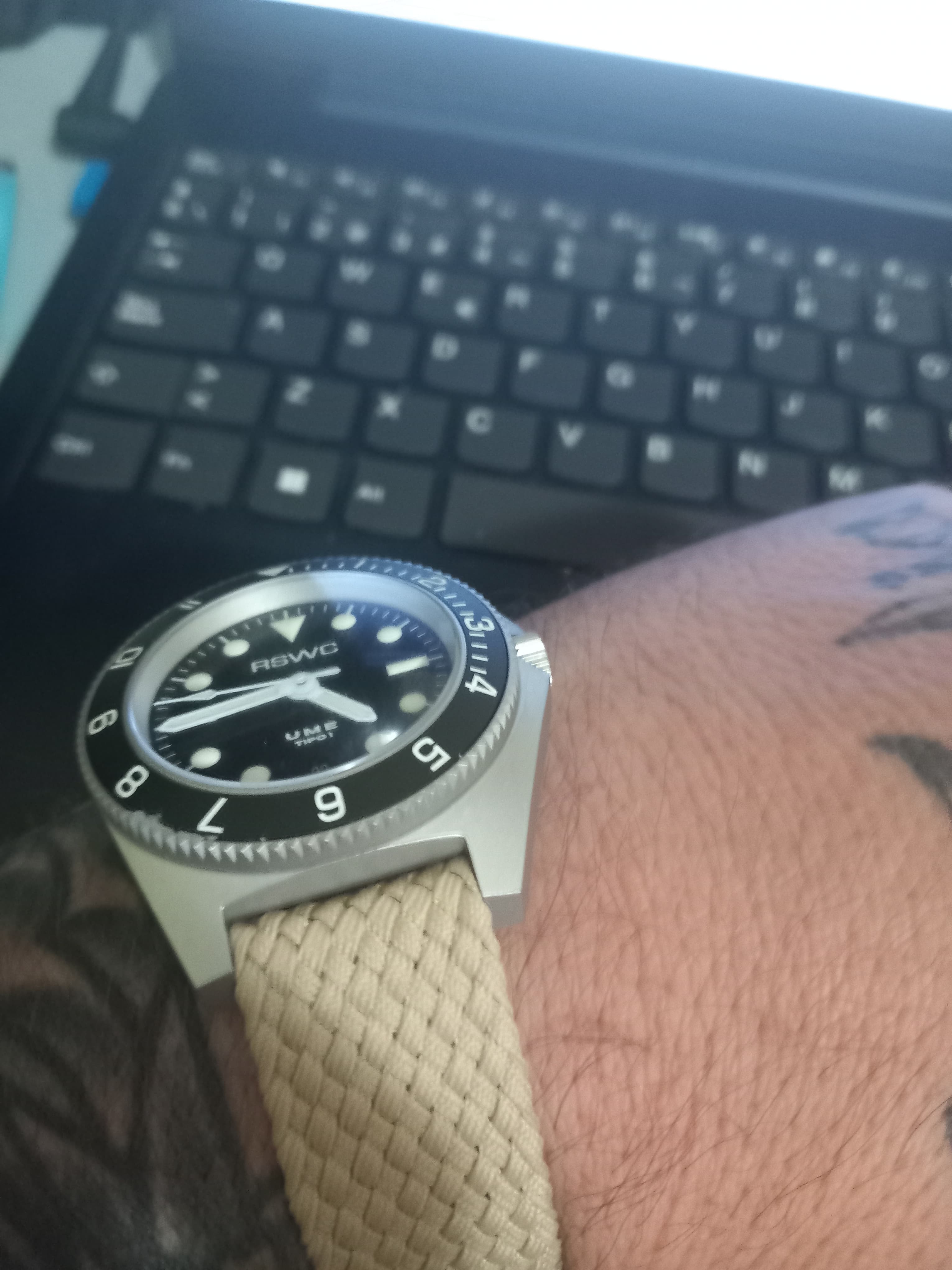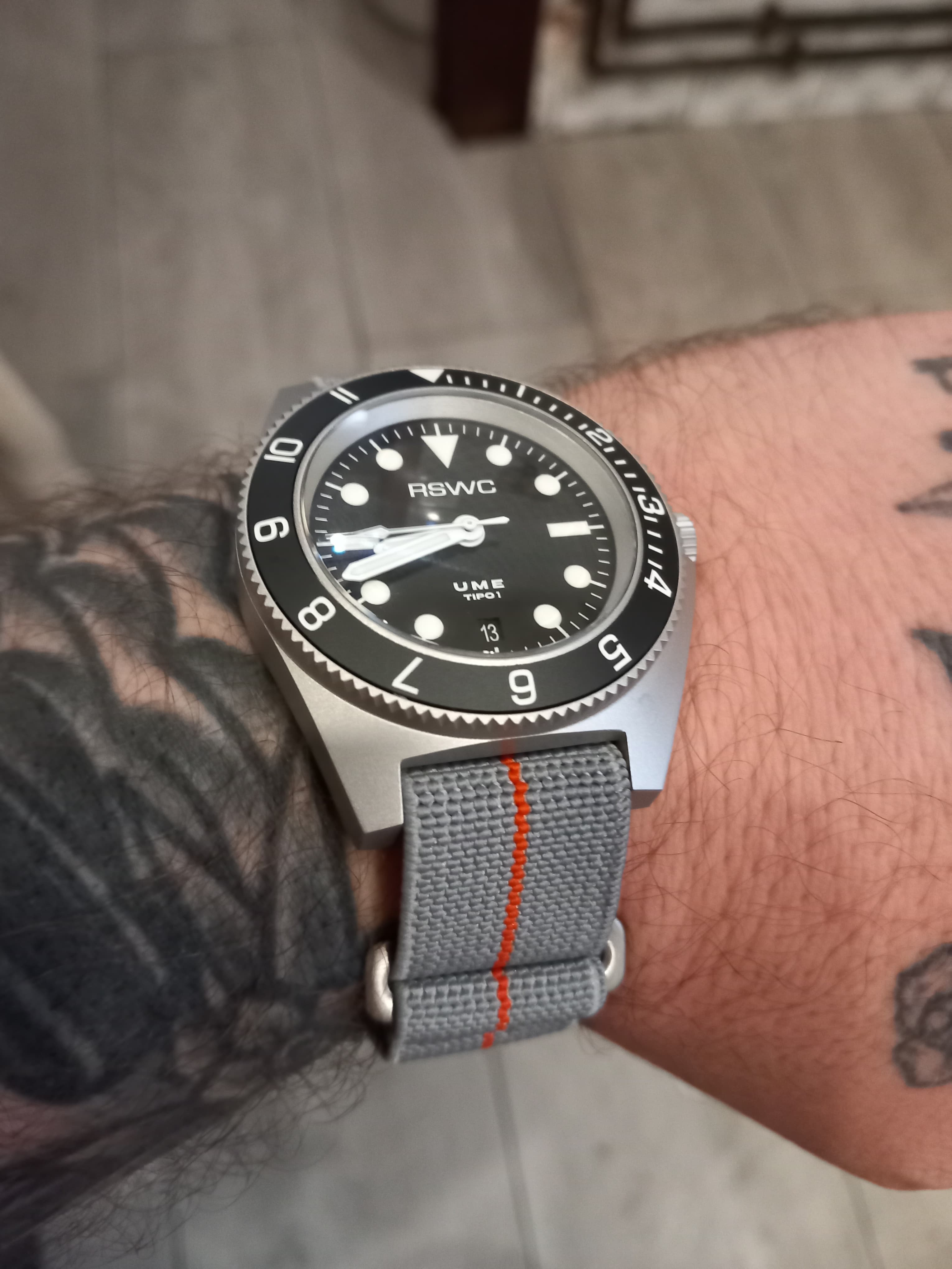 Respecto al uso en correas, a mí la muñeca me suda bastante, así que ni se me ocurre usar cuero. Llevaba muchos años sólo usando armis y las NATO no son lo mío (no tengo mucha muñeca y no me gusta nada cómo me queda), pero las textiles en dos piezas con los UME me ha gustado bastante.