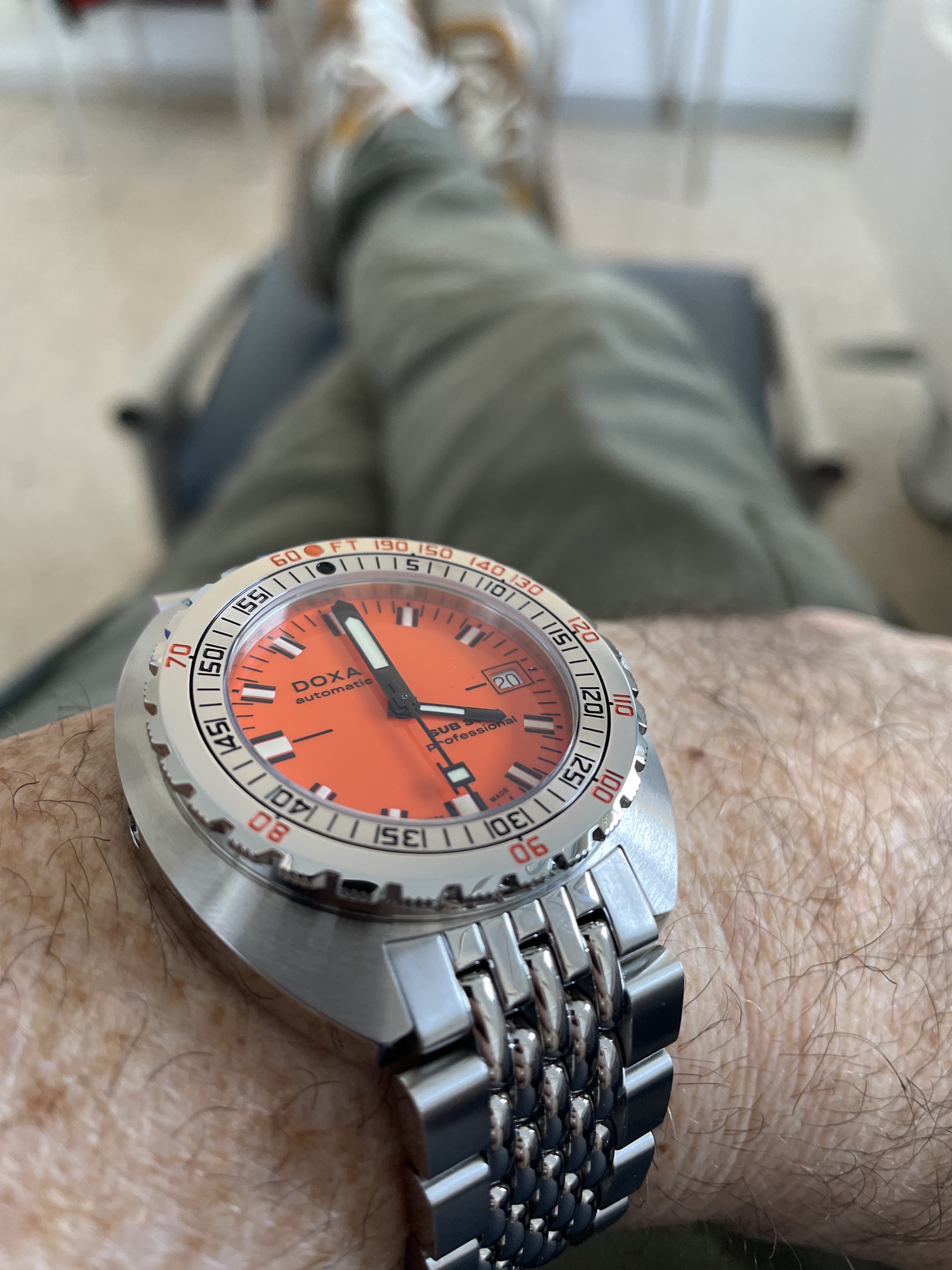 Como me gusta ese Doxa y en esos colores, a ver si un día tengo la oportunidad de probarme uno y ver cómo queda por qué me parece un cañonazo de buceador