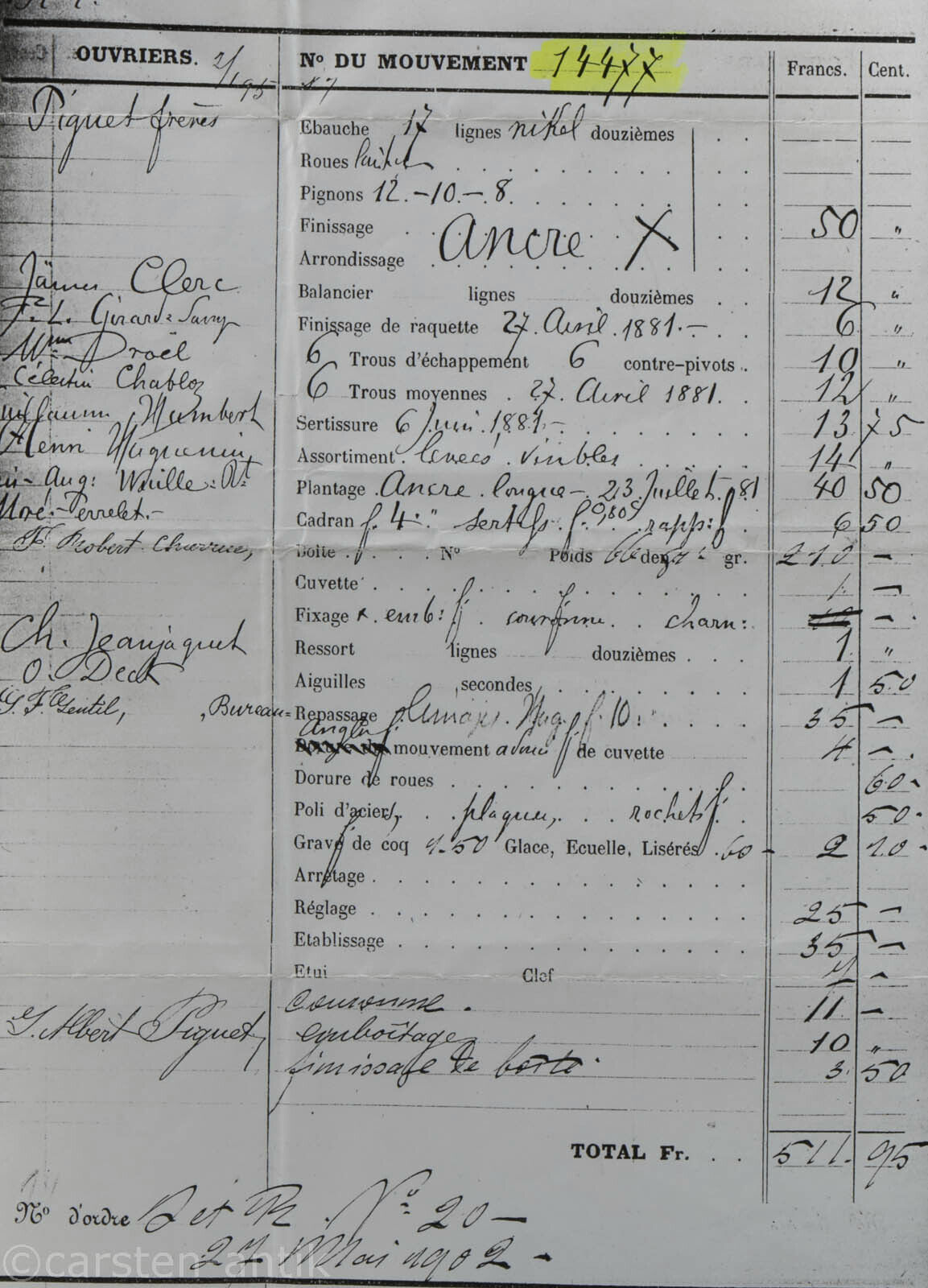 En estas primeras unidades Roskopf pagaba en concepto de patentes una cuarta parte del coste total del reloj a Adrian Philippe (PP) por equipar un muelle real de su autoría.