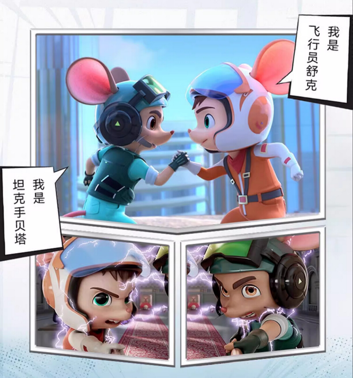 Los ratones, que responderían al nombre de Shuke y Beita son, respectivamente, un piloto de helicóptero y un tanquista del Ejército de Liberación Popular que van desfaciendo entuertos y sembrando el amor y la concordia por allá do pasan.