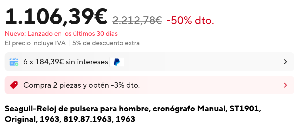 Anuncio en Ali. El reloj lo vende la tienda oficial de Seagull.