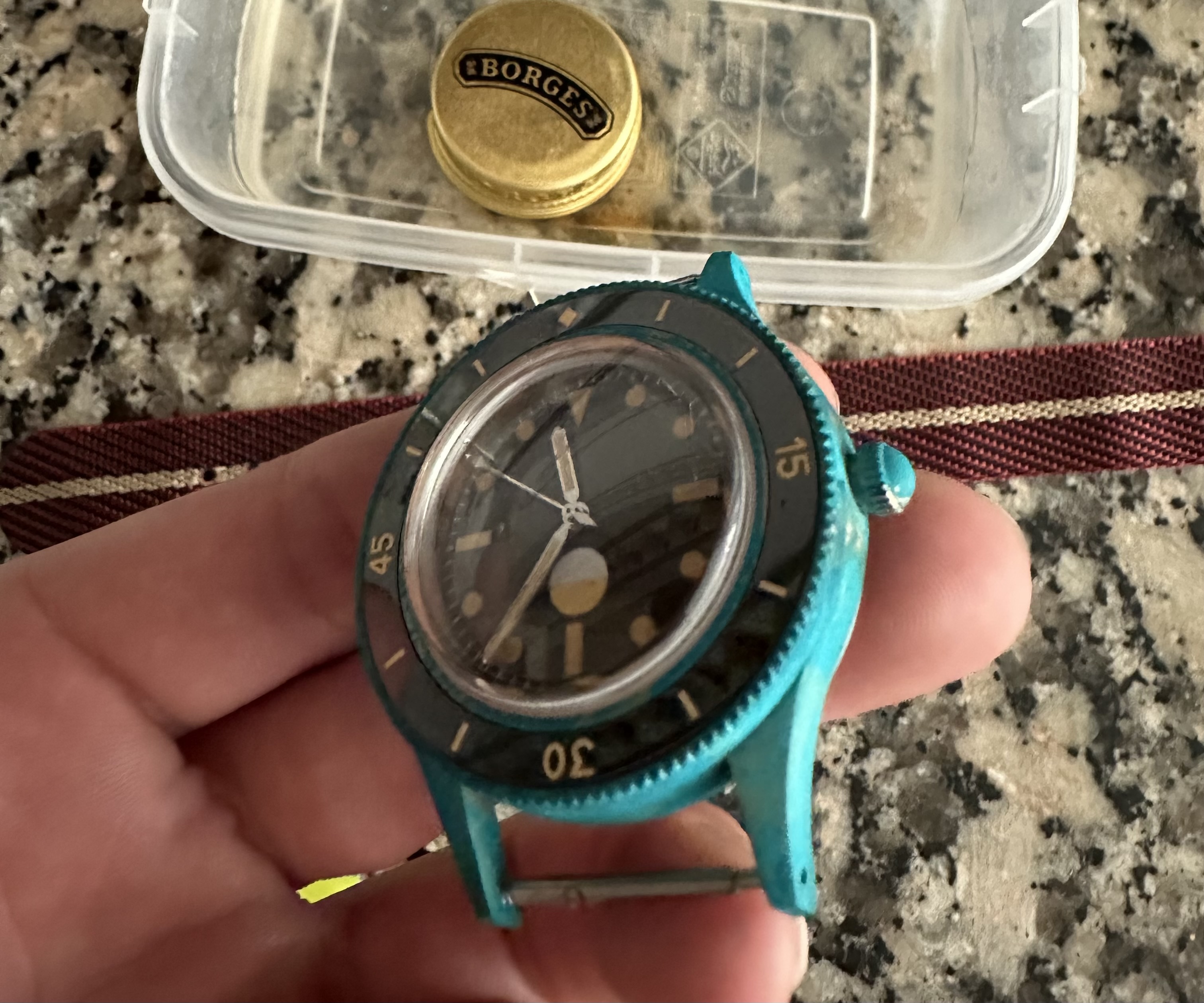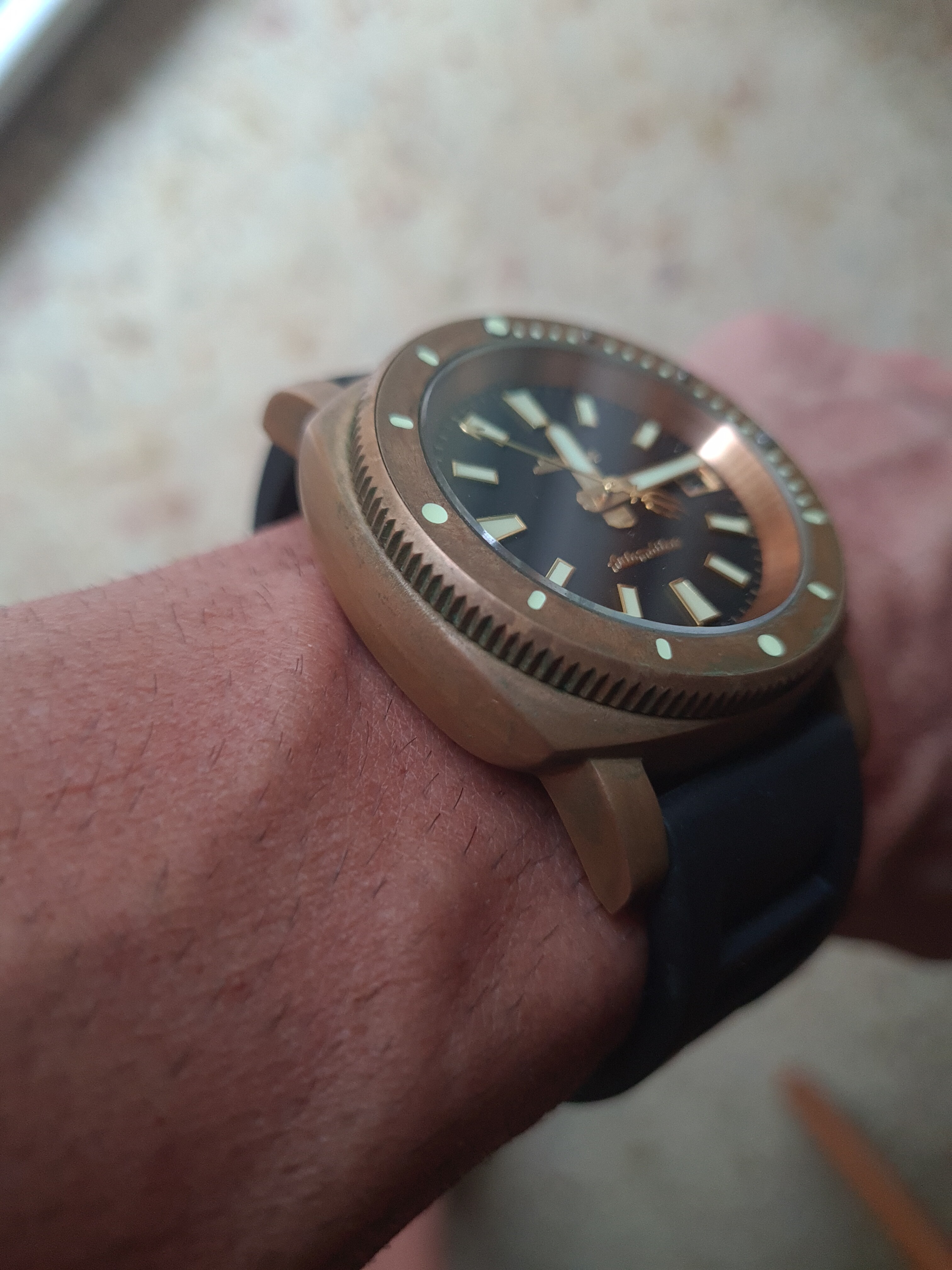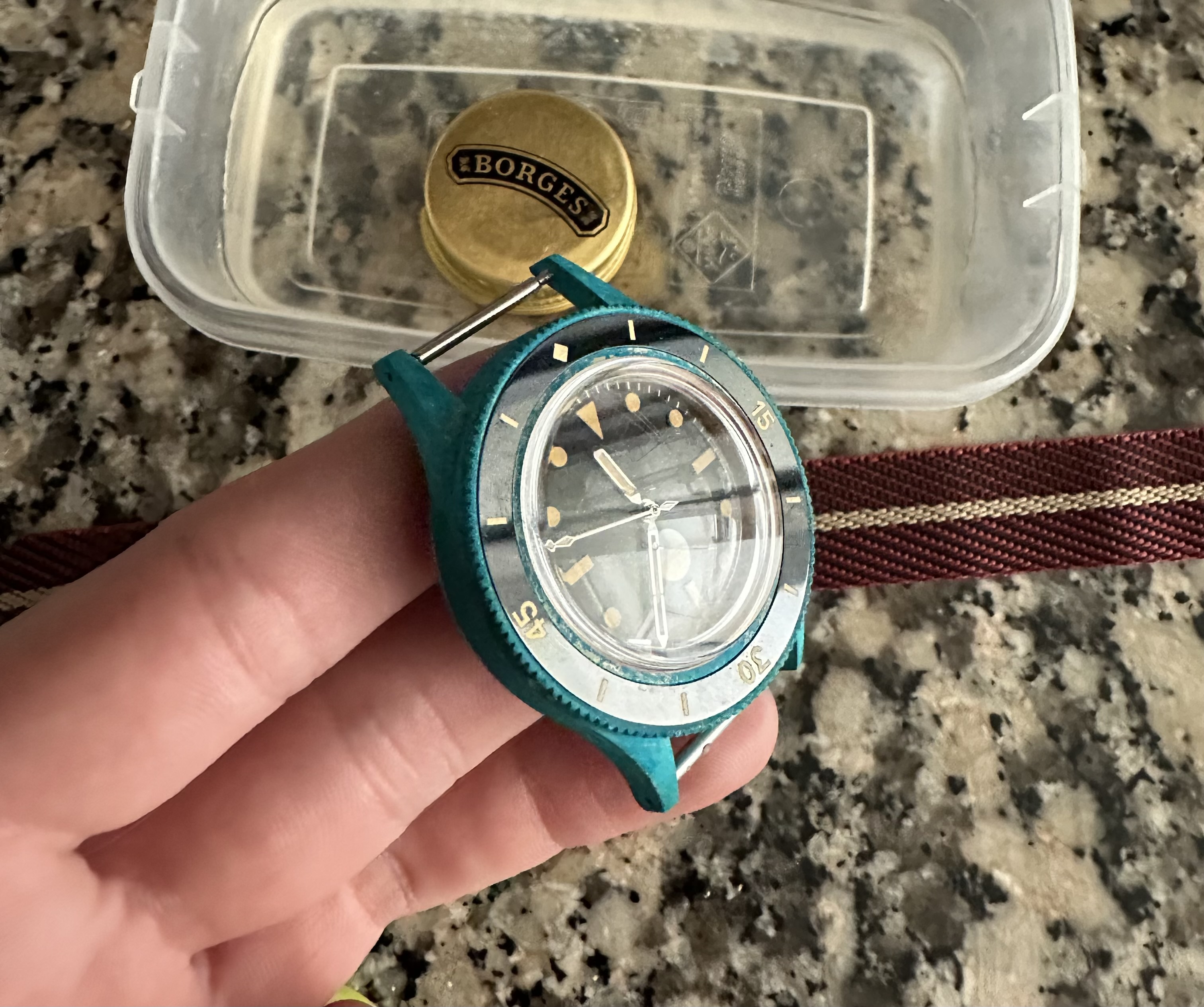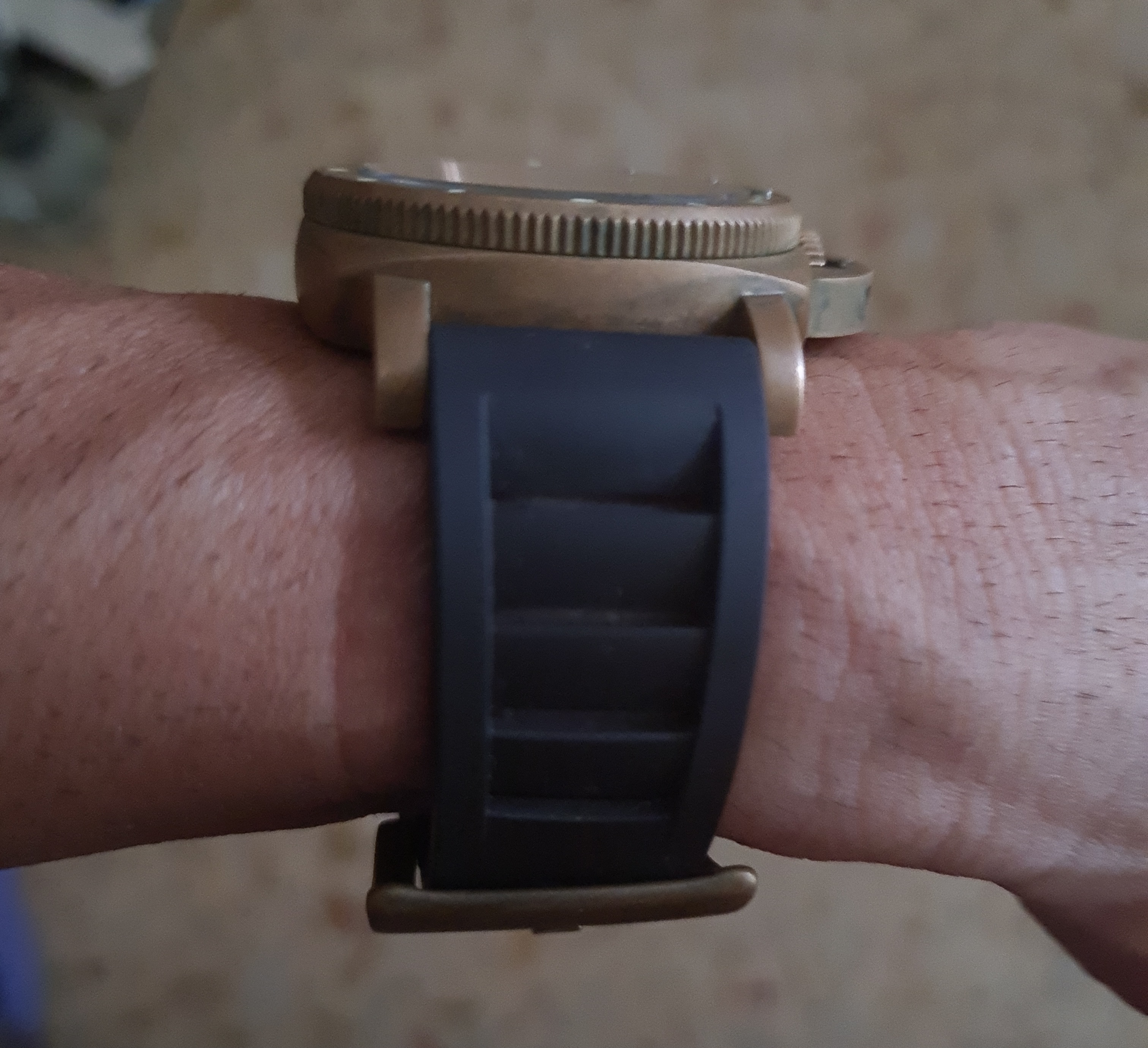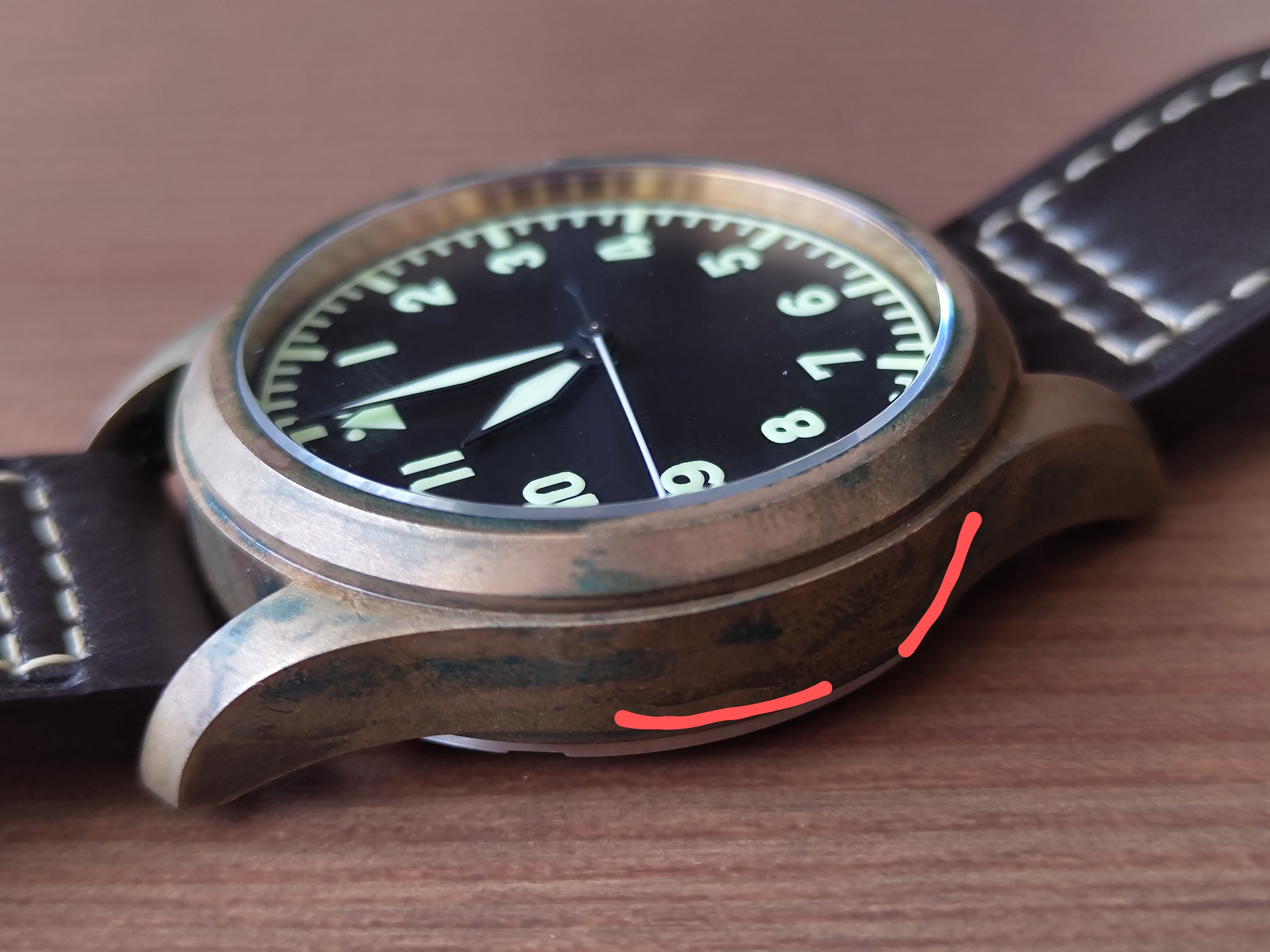 No se nota mucho, pero si limpio el reloj concienzudamente, en esa zona se me han quedado unas rayas de oxido producidas por sal que ya no se van ni pasando algodón mágico.